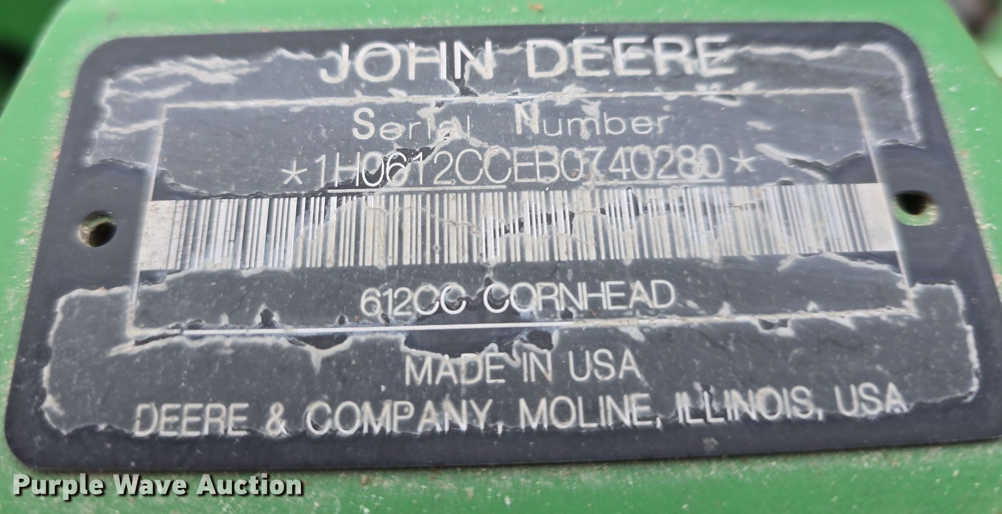 Purple Wave is selling a used Corn or Row Head in Missouri. This item is a 2011 John Deere 612C StalkMaster corn head with the following: Serial: 1H0612CCEB0740280