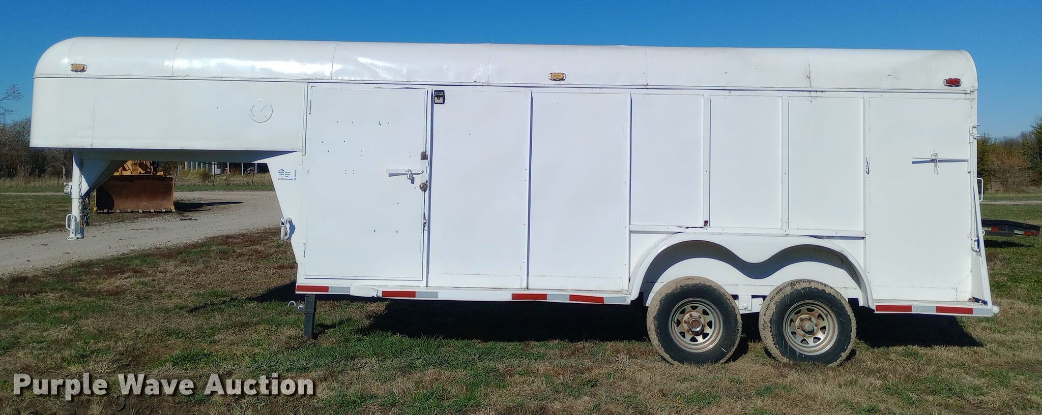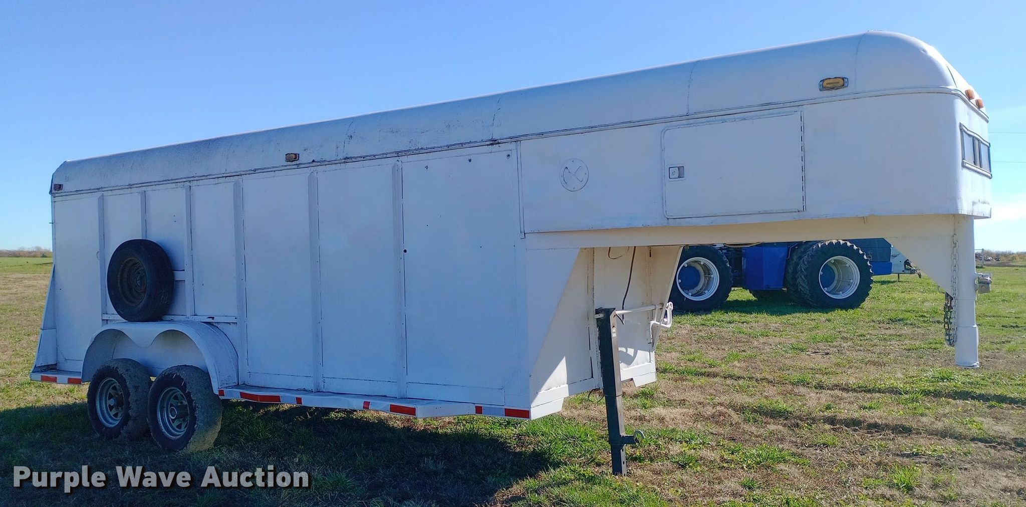 1995 Shop built livestock trailer. VIN: 8SL19. Dimensions Overall: 26' L x 92" W, Body: 18' L x 68" W. Features Ground load. Chassis Hitch: Gooseneck, Landing gear: Single, Suspension: Spring, Brakes: Electric, Axles: Tandem. Tires Steel wheels, Size: 225/75R15. Oklahoma title. Stands Farms, LLC. El Dorado, KS 67042