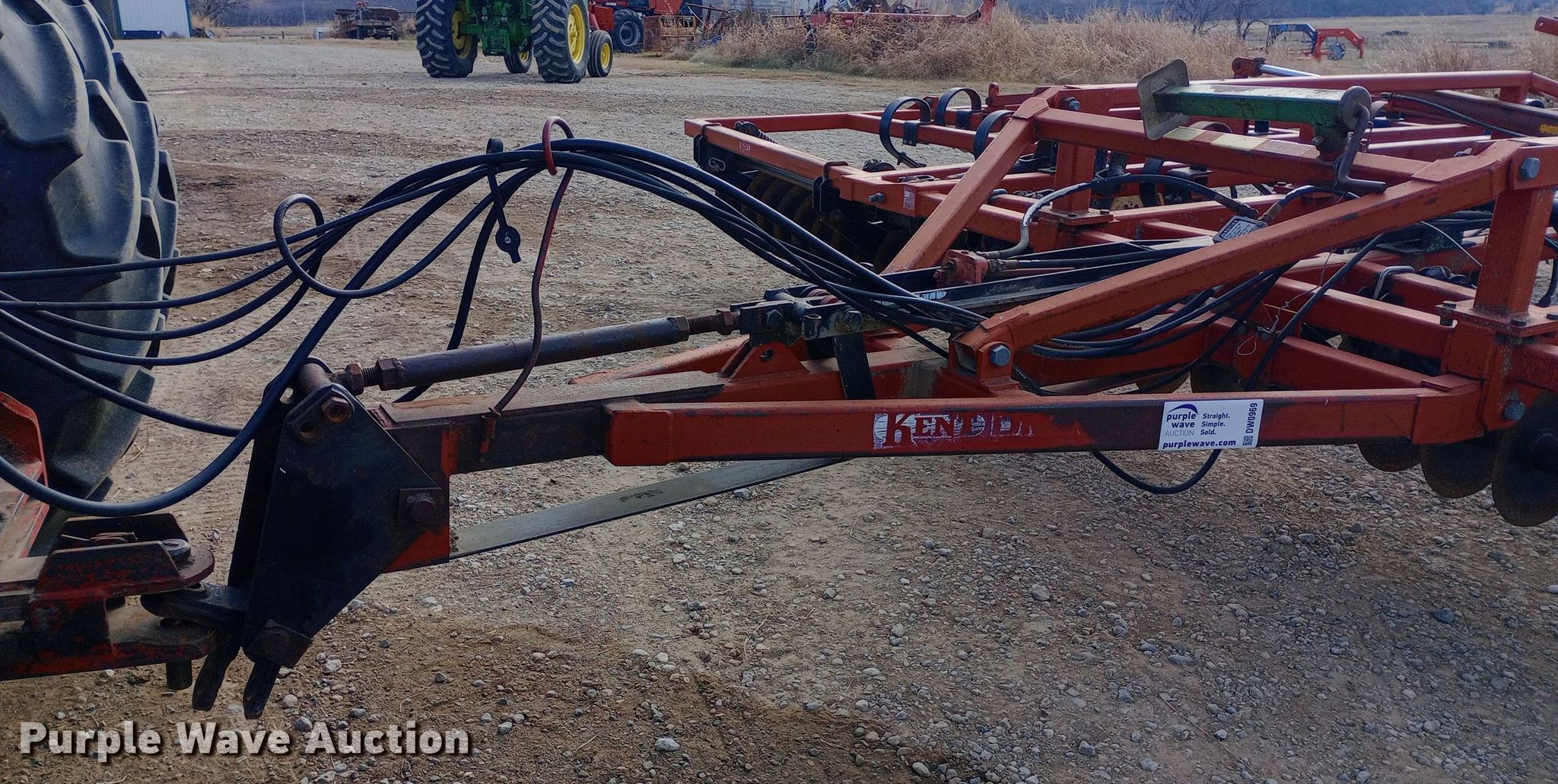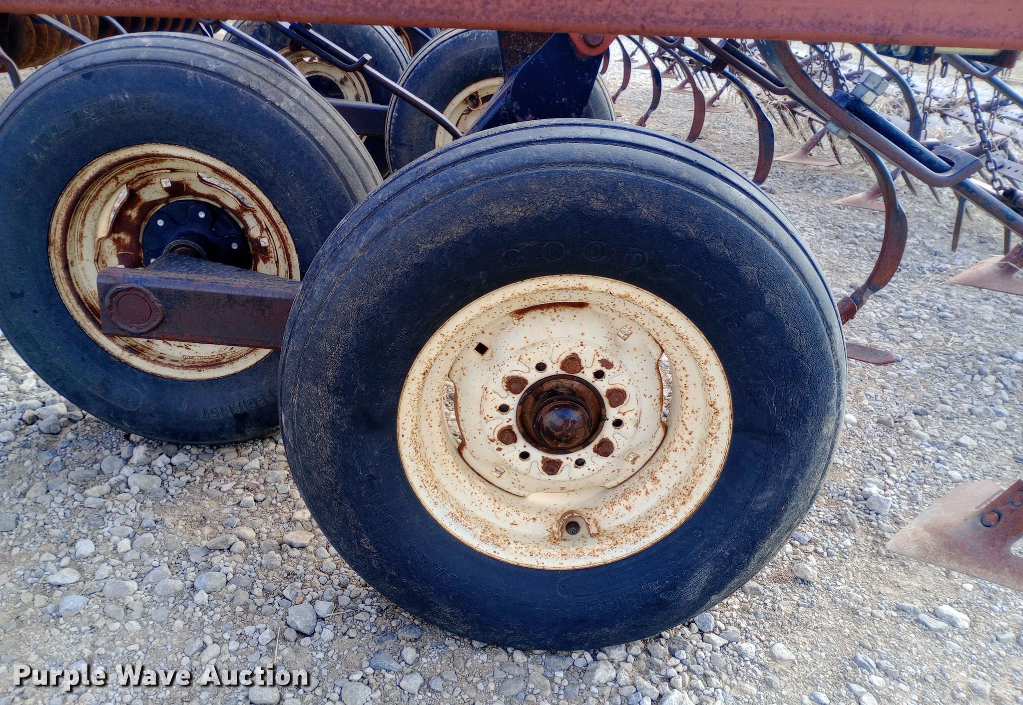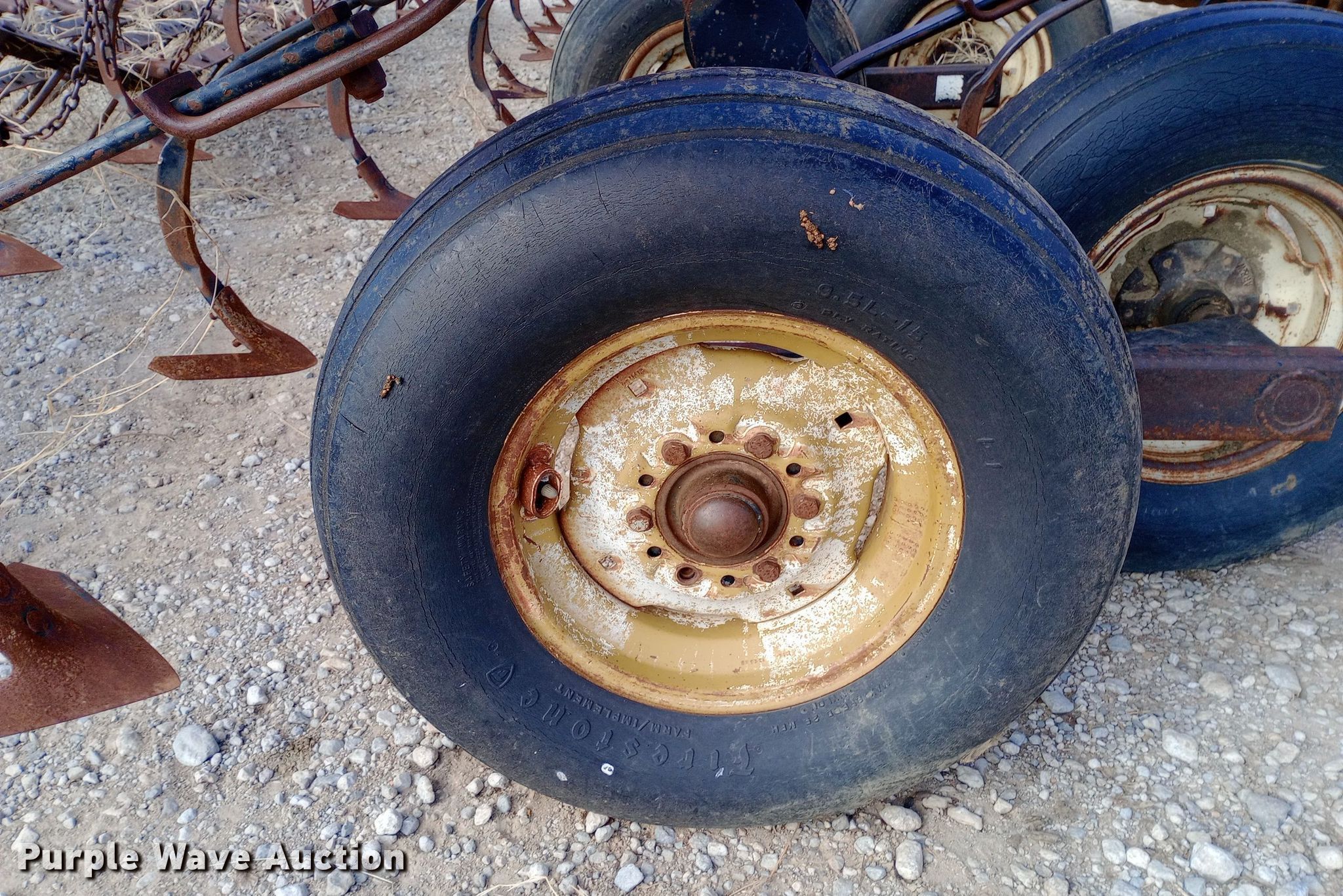 Kent field cultivator. Overall width: 24'. Features Blade diameter Front: 15", Operation Hydraulic lift, Hydraulic fold, Leveler: Hydraulic, Walking tandem axle, Attachments Spike tooth harrow Harrow bars: 5.. Tires Tire size: 9.5L-15. Notes Tractor not included. Hendricks Enterprises, Inc.. Howard, KS 67349