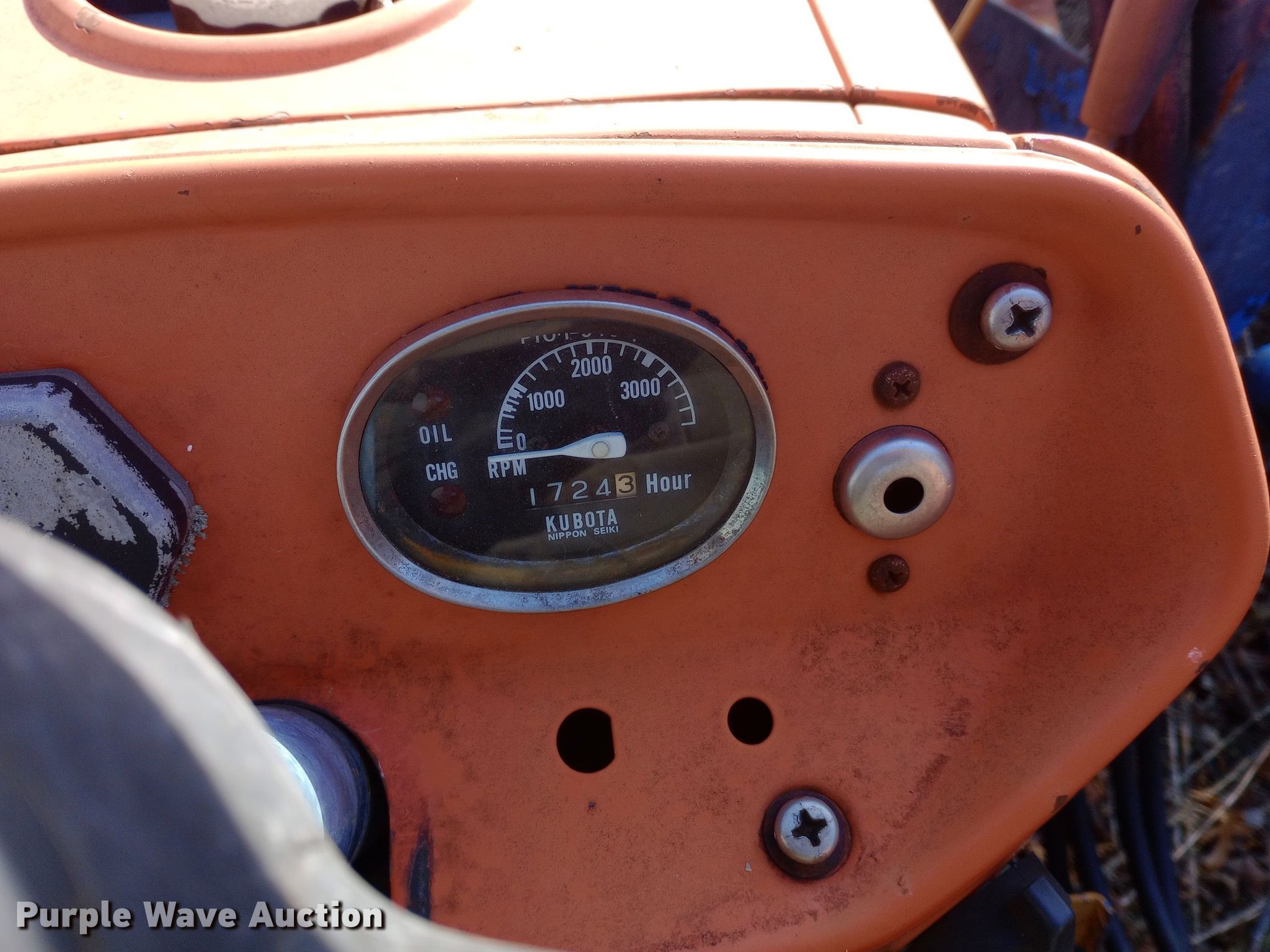 Kubota L245DT tractor. Hours: 1,724 on meter, Serial: L245DT-61421. Engine Kubota DH1101-A, Cylinders: 3, Fuel type: Diesel. Transmission Manual, 8F - 2R. Features PTO: 540, Three point, Loader Controls: Two-lever, Bucket Width: 48".. Tires Front: 7-16, Rear: 11.2-24. Notes Flat tire, Non-operational unit. Newkirk, OK 74647