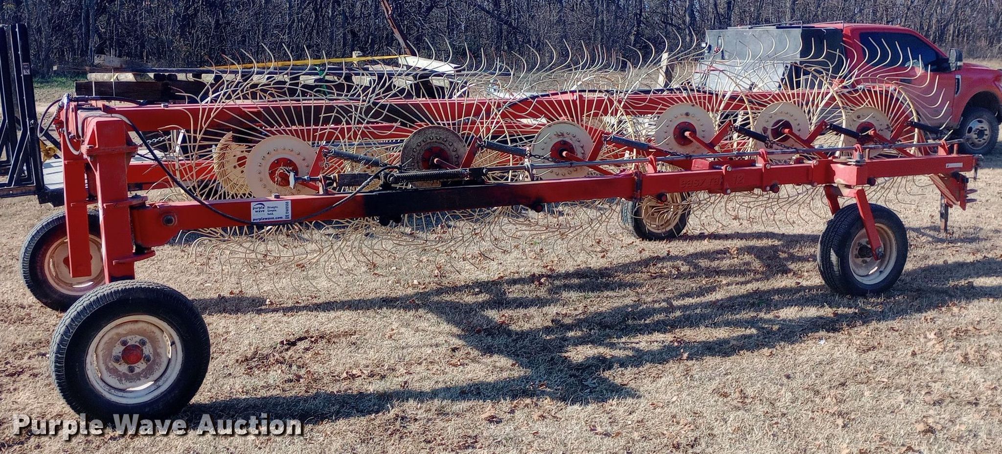Purple Wave is selling a used Hay Rake in Oklahoma. This item is a Farm King Easy Rake 12 hay rake with the following: Serial: 108023