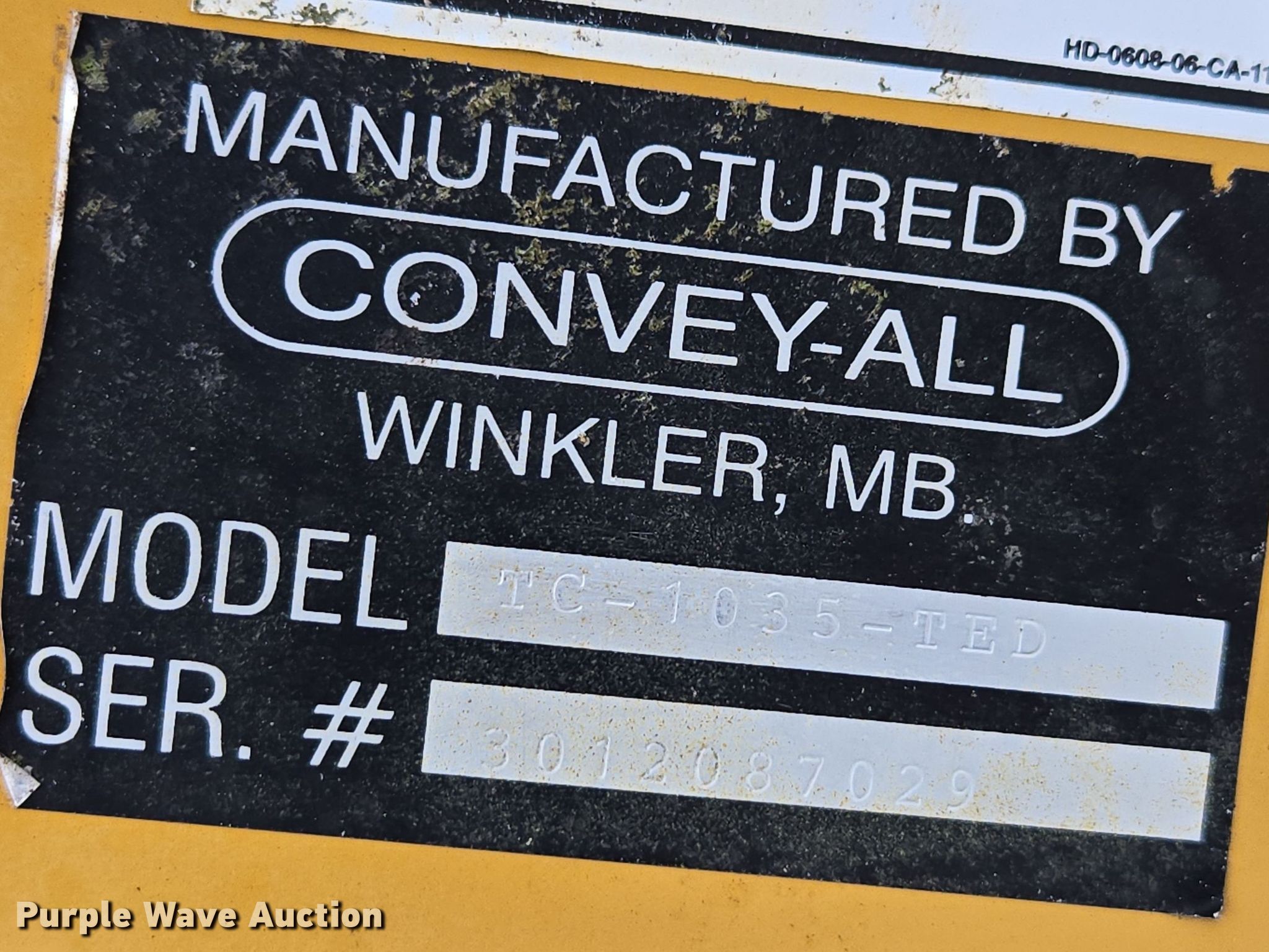 Purple Wave is selling a used Auger or Conveyor in Ohio. This item is a Convey-All 1035 auger with the following: Serial: 3012087029