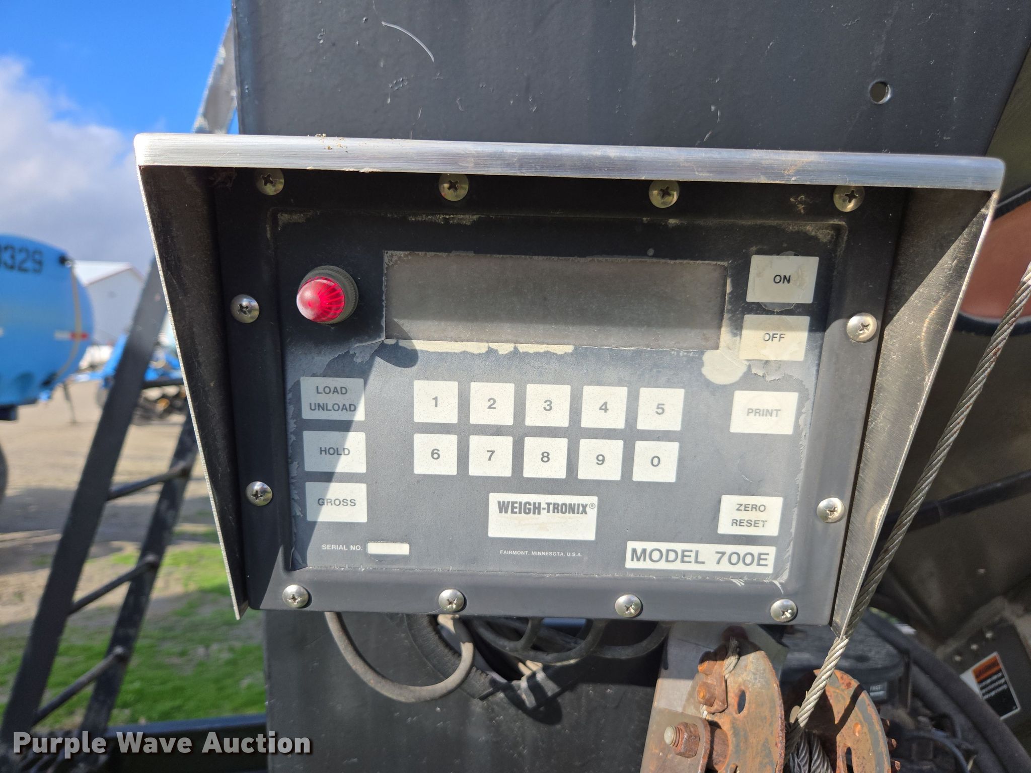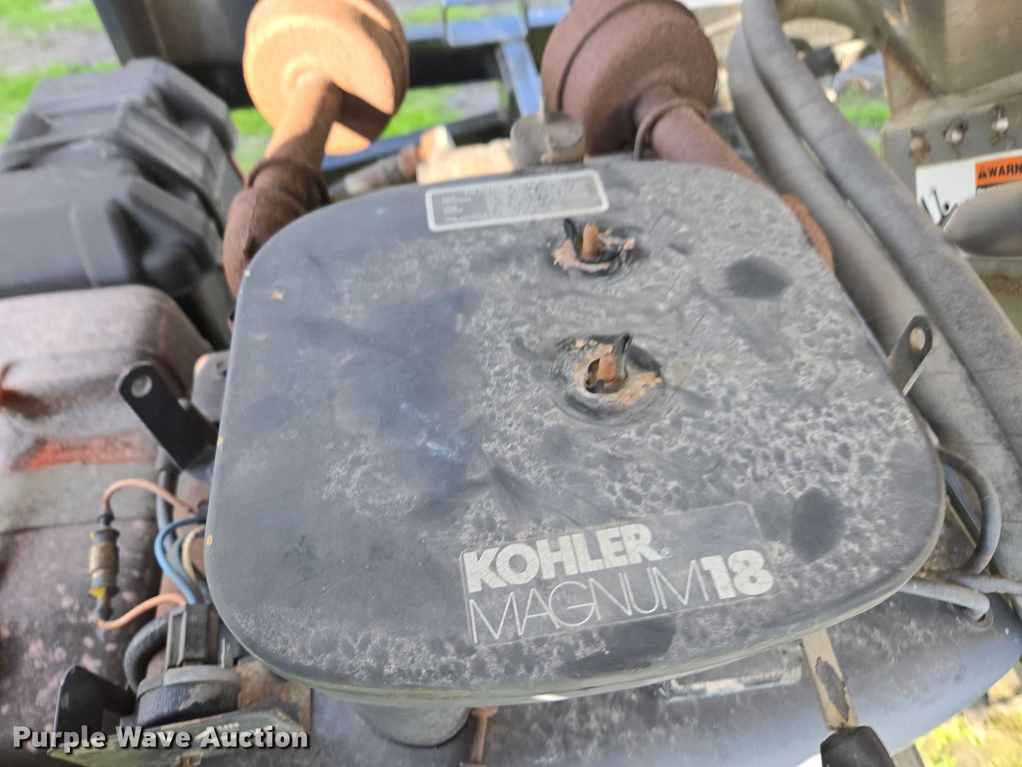 Harvest Land UT57 seed tender. Serial: 0014300701S. Engine Kohler Magnum 18, Fuel type: Gas. Features Auger diameter: 8", Shut-off gate: Manual, Scales Weigh Tronix 700E, Sight glass, Compartments: 1, Hitch: Ball, Suspension: Spring. Tires Size: 7.00-15. Notes Dead battery, Unknown operating condition. Transfer of ownership documentation will be a bill of sale. Keystone Cooperative. Covington, OH 45318