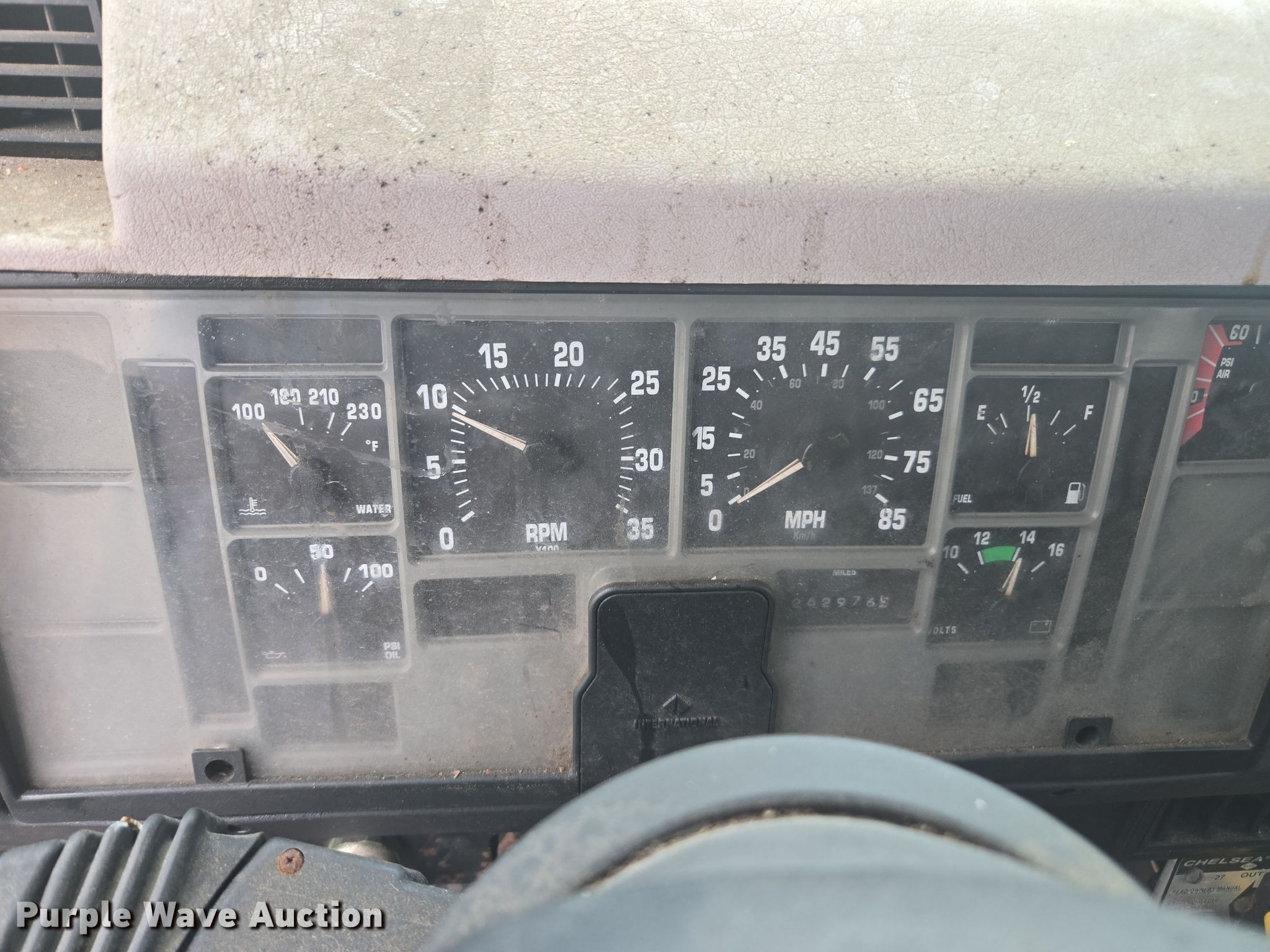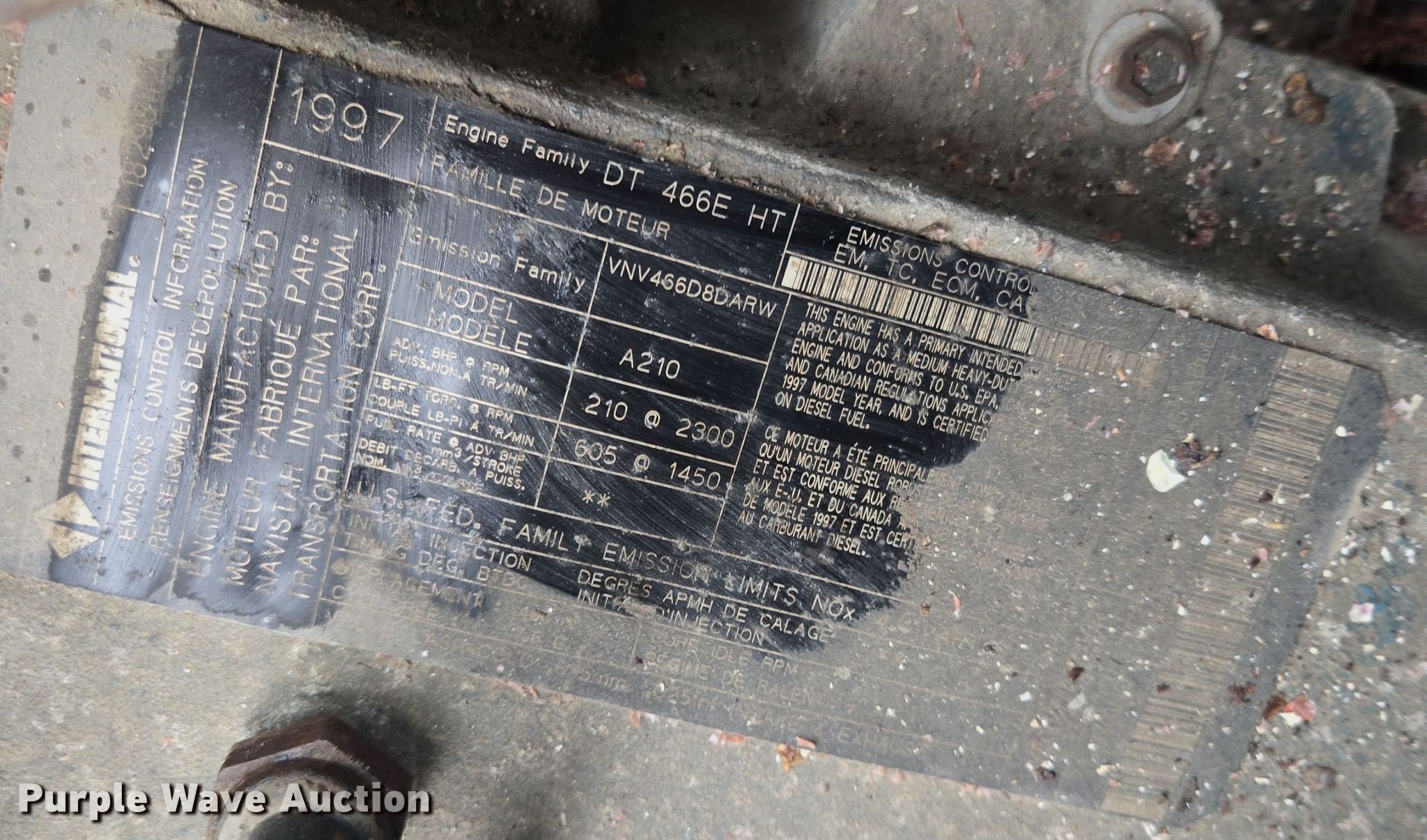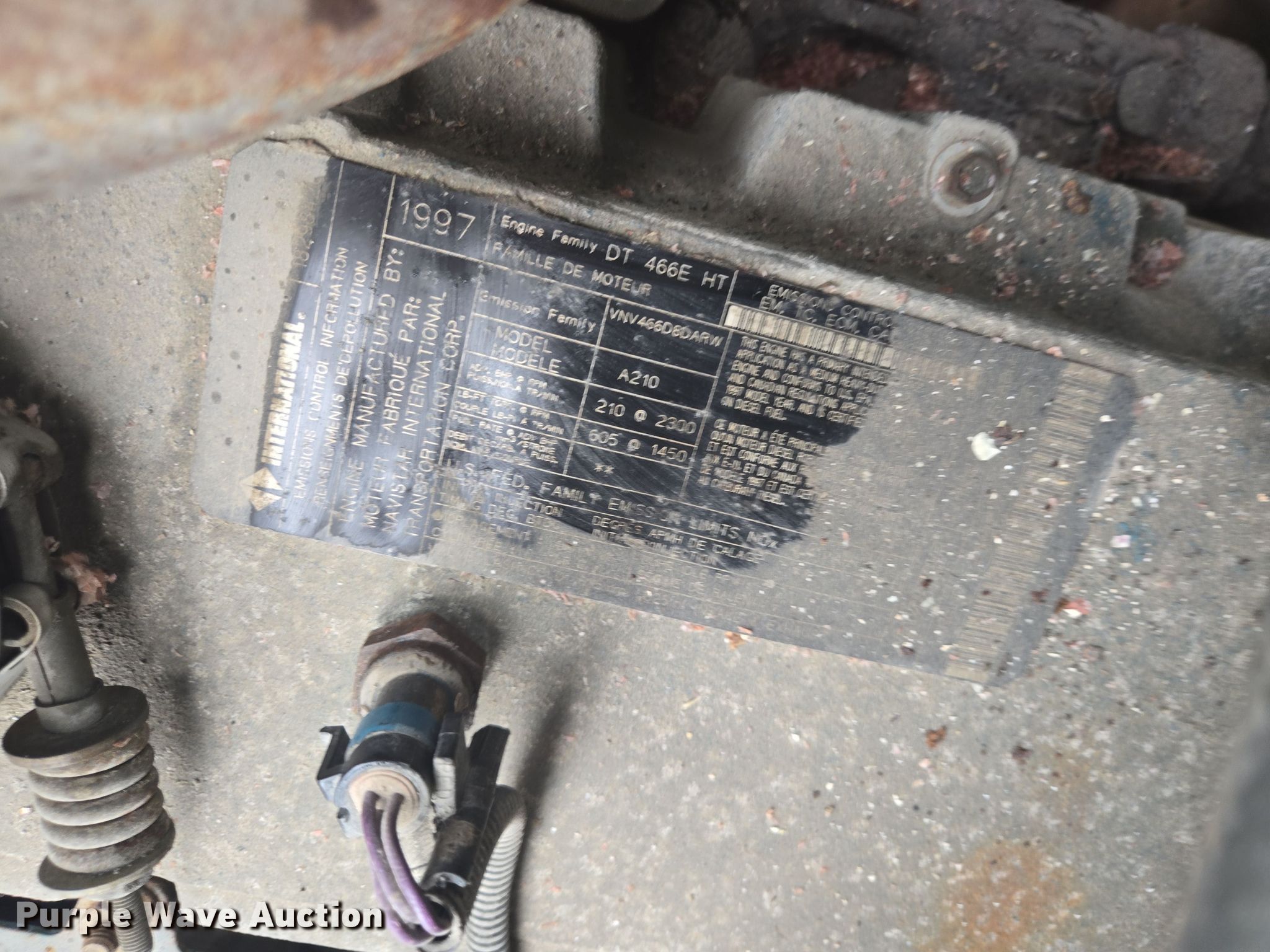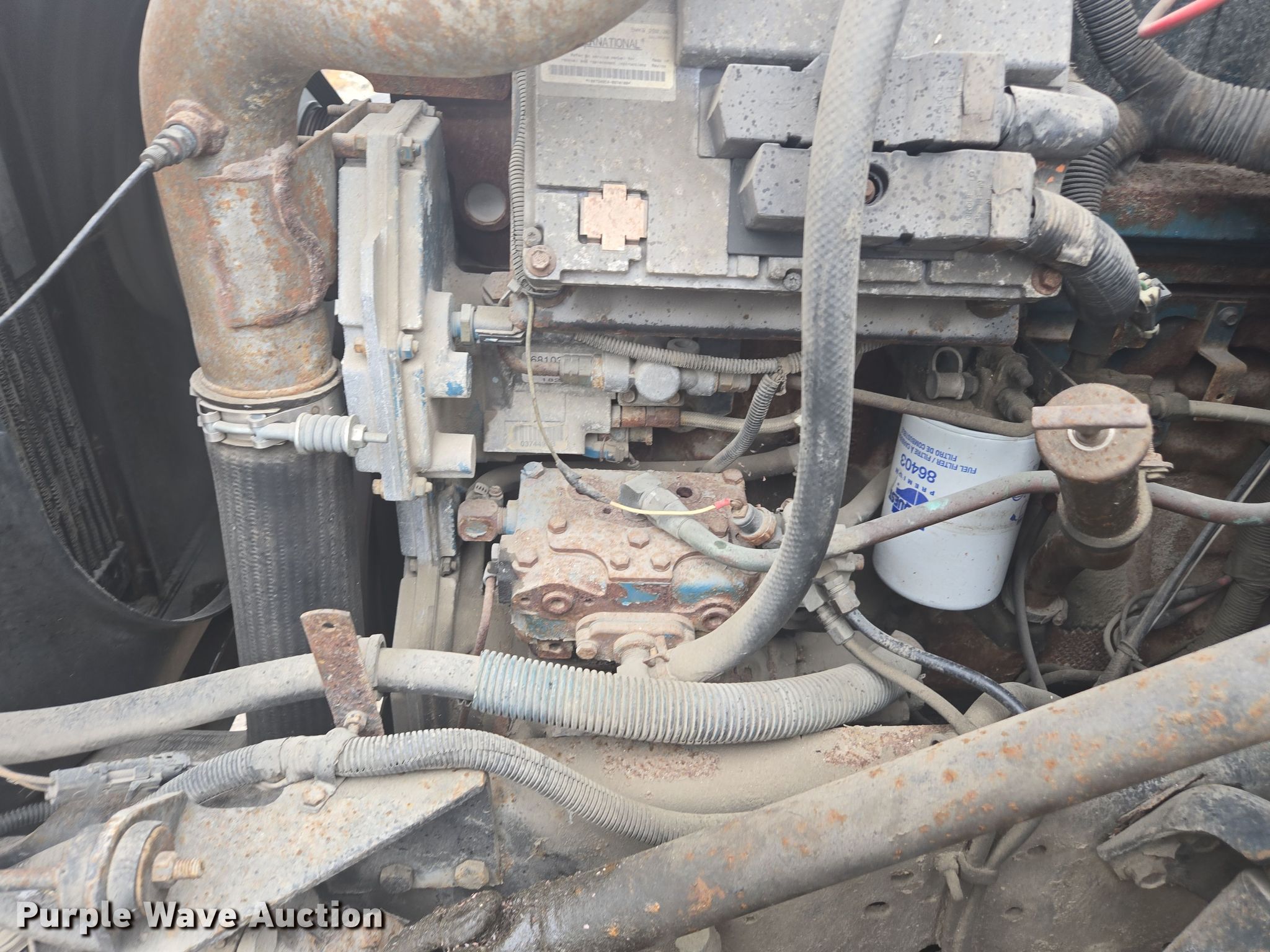1998 International 4900 fertilizer delivery truck. Miles: 262,977 on odometer, VIN: 1HTSDAAN5WH552555. Engine International DT466, Cylinders: 6, Fuel type: Diesel. Transmission International 6plus, Manual, Speed: 7. Chassis Axles: Single, Suspension: Spring, Brakes: Air, PTO. Interior AC, Heat, Heated mirrors, Cruise control. Features Delivery bed Chandler, 12' L, Capacity: 10 tons, Compartments: 2, Discharge auger Diameter: 9", Rear, Tarp, Ground controls. Tires Size: 295/75R22.5. Notes Frame rust. Indiana title. Title distribution may be delayed up to 30 days from verification of funds. Keystone Cooperative. Bremen, IN 46506