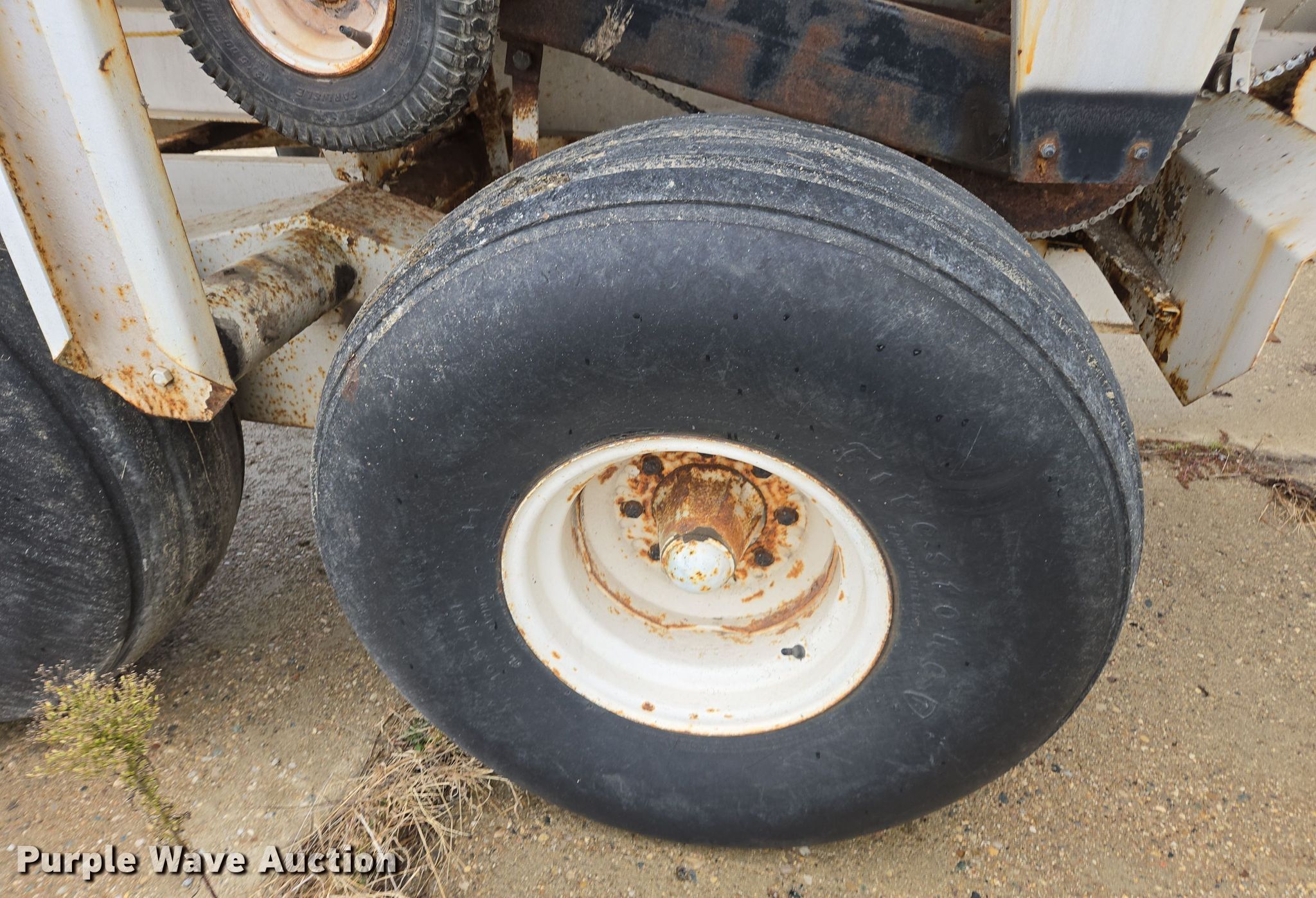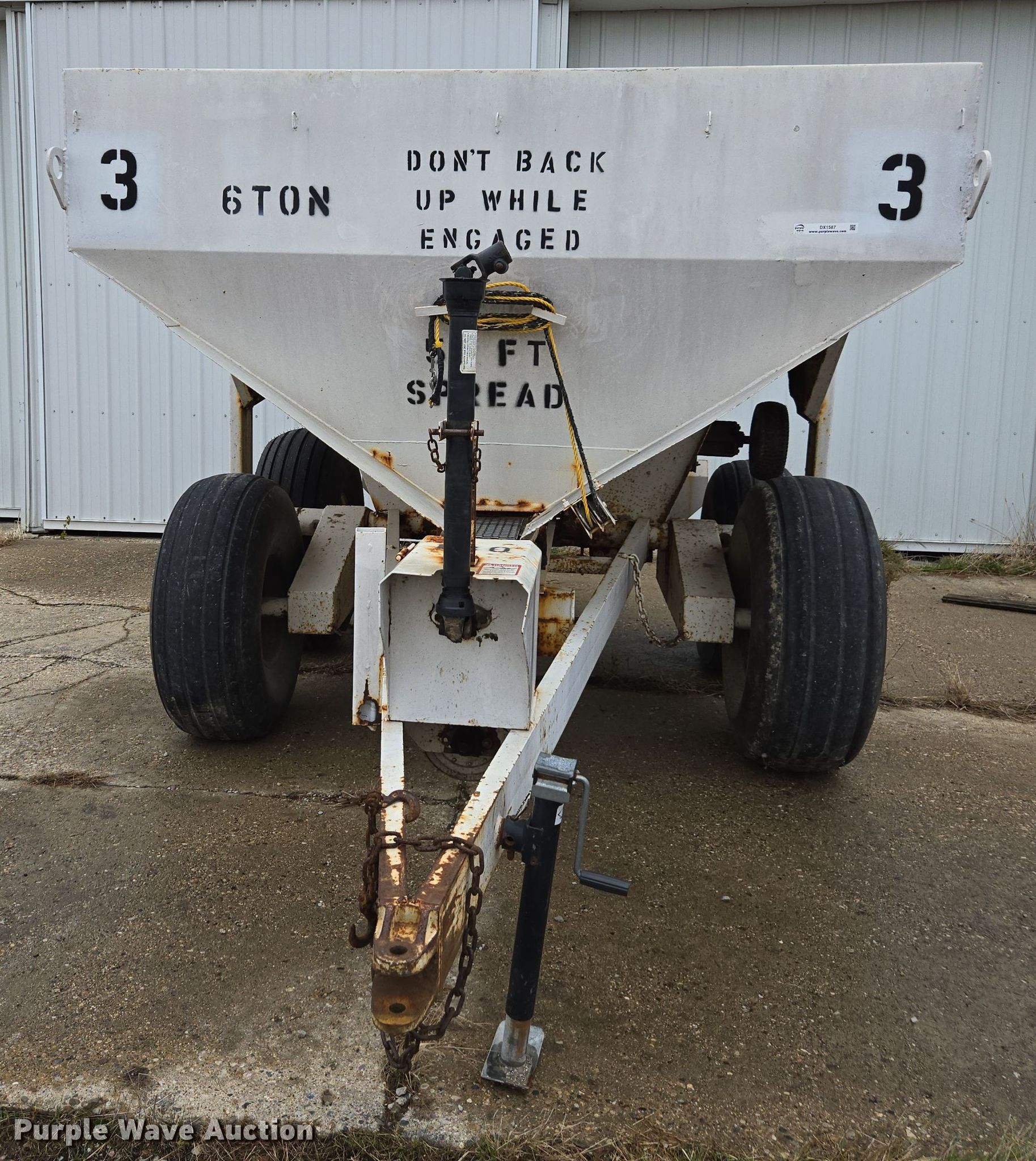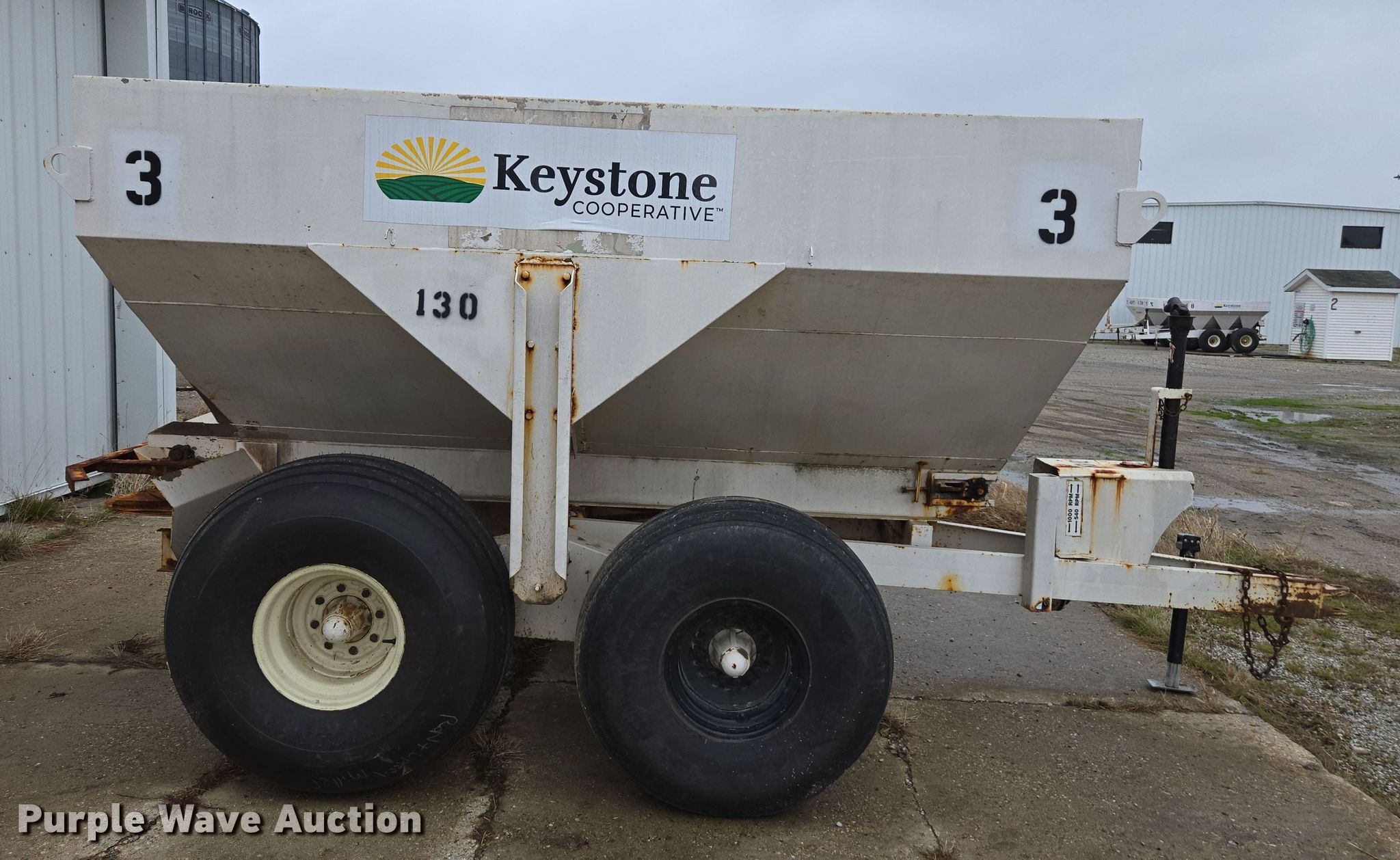 Western SMC2064S spreader. Serial: 1100S13540. Features PTO: 540, Dry fertilizer spreader Tons capacity: 6, Ground driven, Width: 6". Tires Size: 16.5-16.1. Keystone Cooperative. Bremen, IN 46506