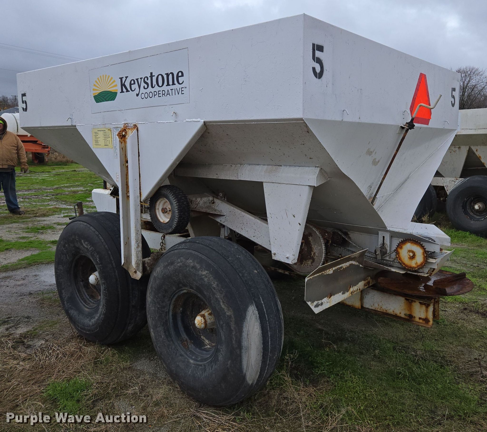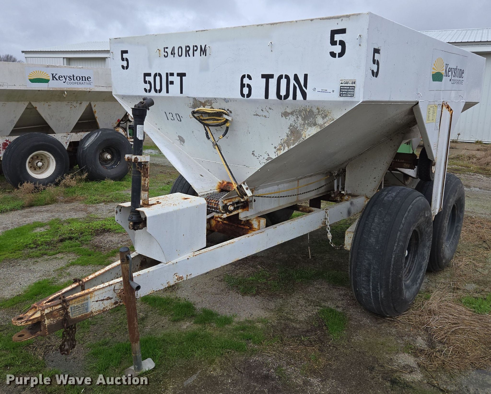 Western spreader. Serial:. Features PTO: 540, Dry fertilizer spreader Tons capacity: 6, Ground driven, Width: 6". Tires Size: 16.5-16.1. Keystone Cooperative. Bremen, IN 46506