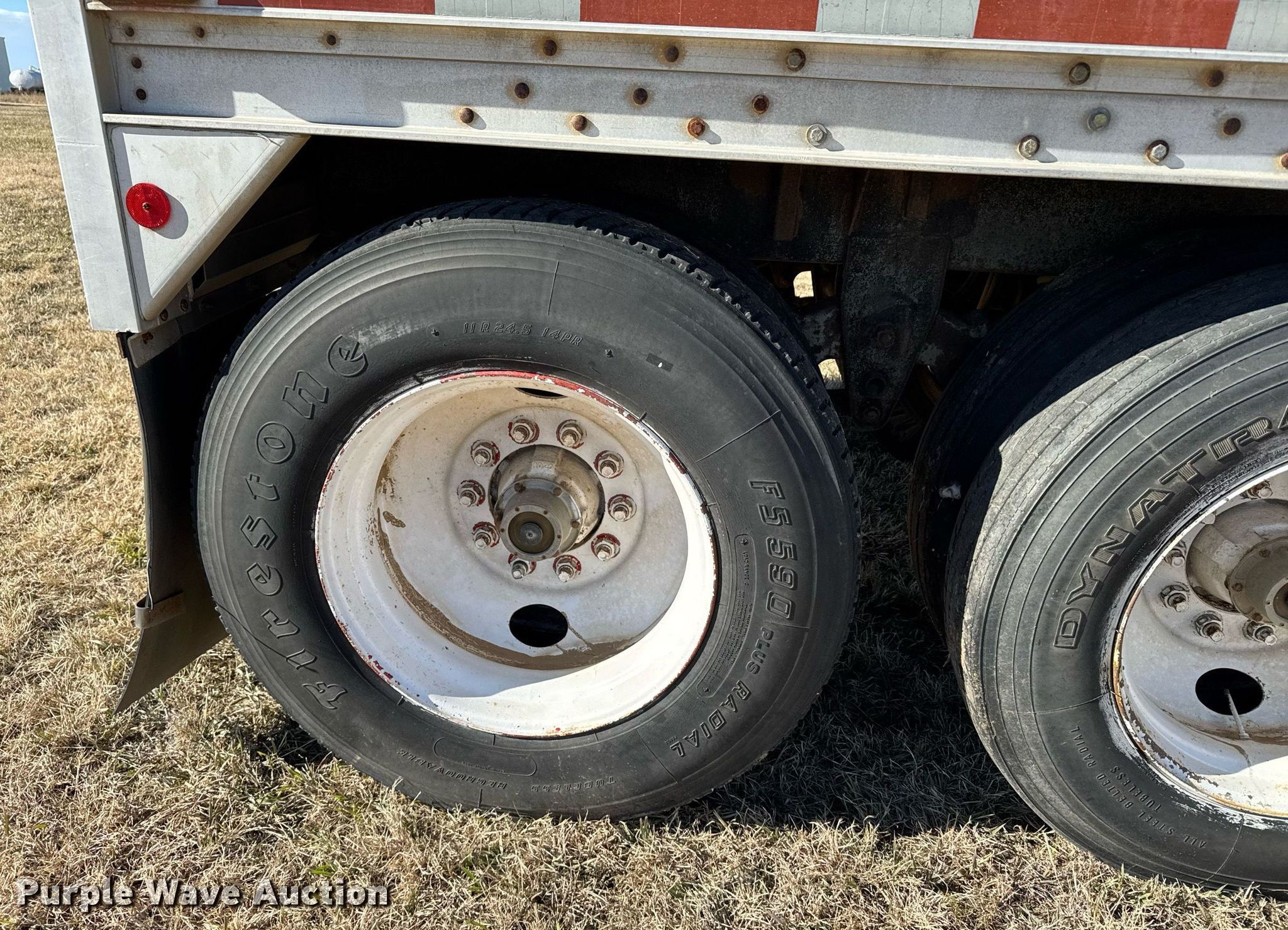 1992 Wilson DWH-200 grain trailer. VIN: 1W1MAF1D5NA215996. Dimensions Overall: 43' L x 96" W, Side height: 58". Features Body type: Aluminum, Hoppers: Double Trap gates: Manual, Roll tarp. Chassis Landing gear: Dual, Suspension: Spring, Brakes: Air, Axles: Tandem, GVWR: 65,000 lbs, GAWR: 19,040 lbs. Tires Steel wheels, Size: 11R24.5. Notes Flat tires. Kansas title. Title distribution may be delayed up to 14 days from verification of funds. RAC Farms LLC. Lincoln, KS 67455
