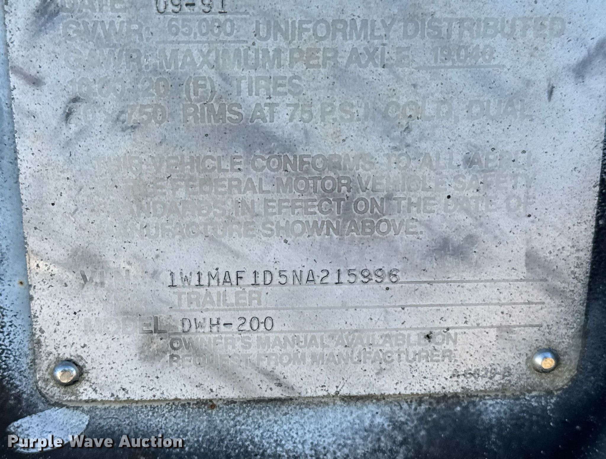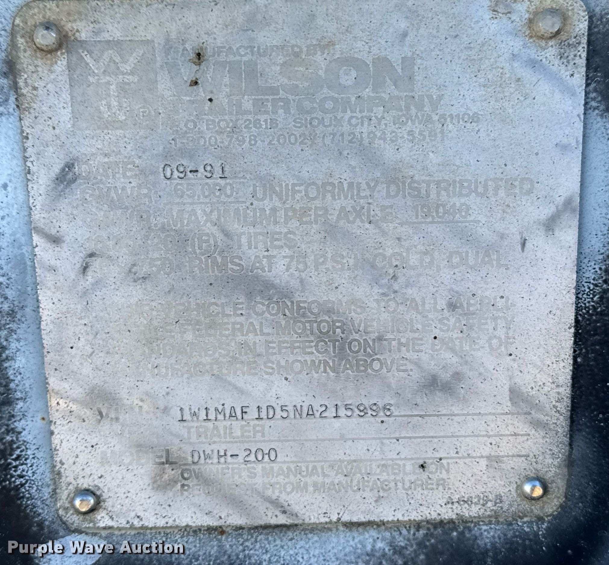 Purple Wave is selling a used Grain or Commodity Trailer in Kansas. This item is a 1992 Wilson DWH-200 grain trailer with the following: VIN: 1W1MAF1D5NA215996