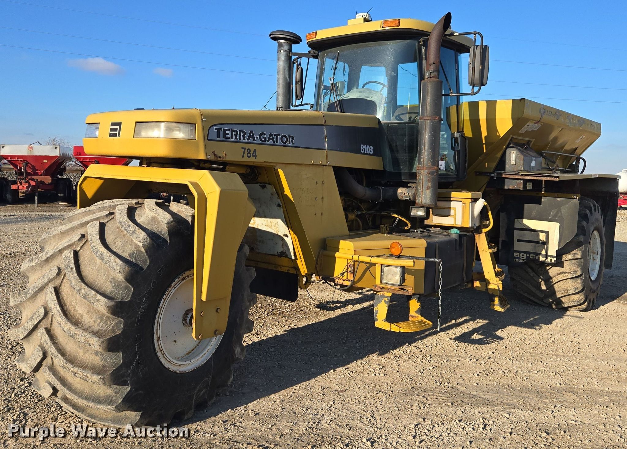 Purple Wave is selling a used Applicator Self Propelled in Ohio. This item is a 1999 TerraGator 8103 spreader with the following: Miles: 85,365 on odometer, Engine hours: 8,405 on meter, Serial: 115791