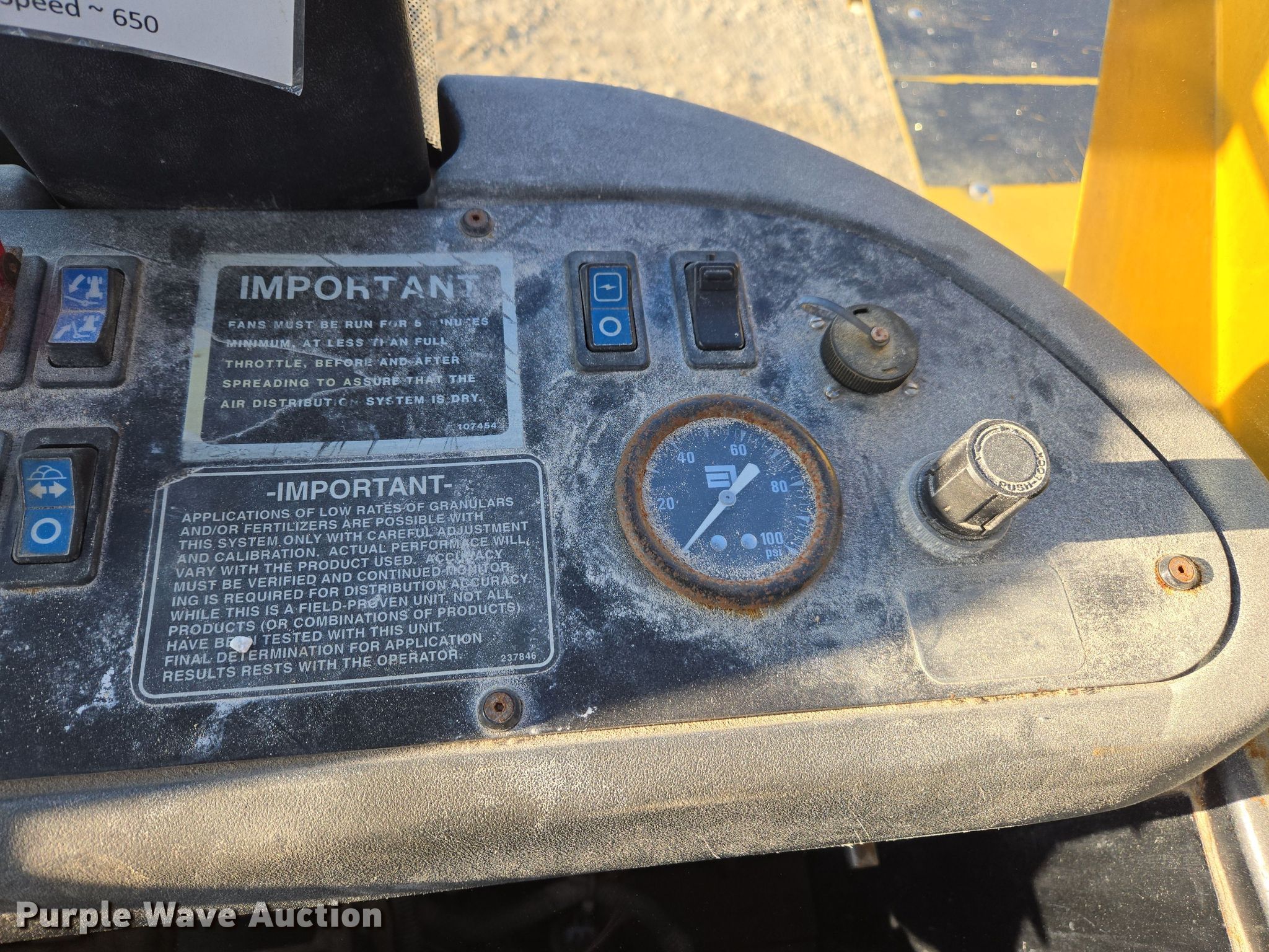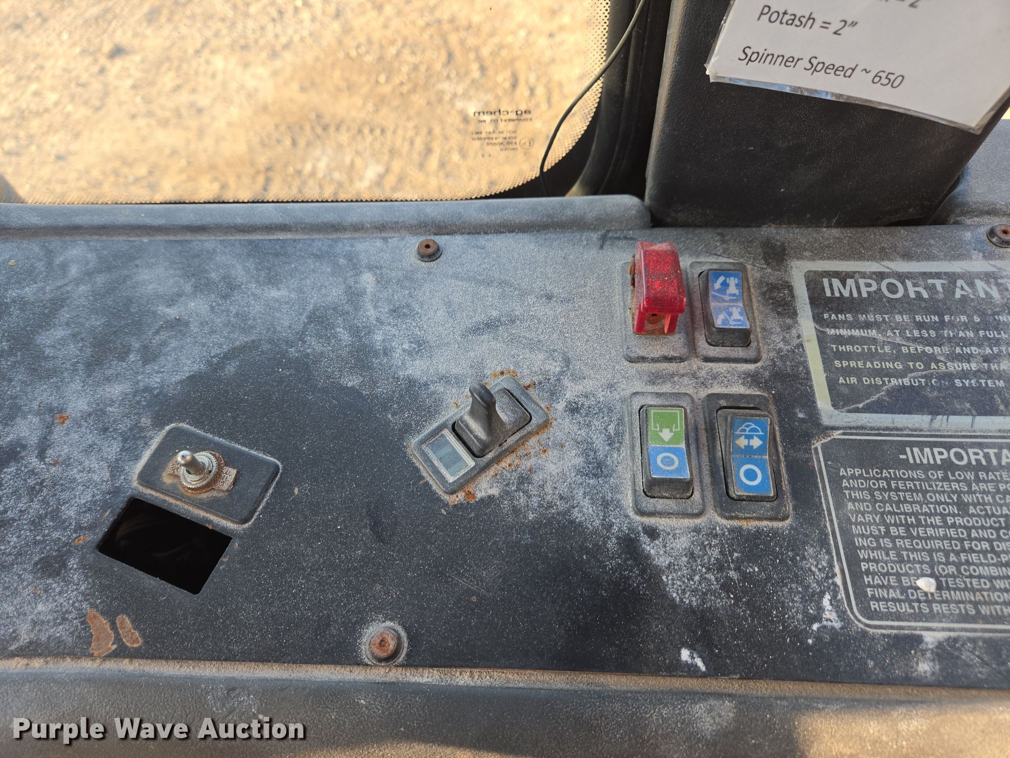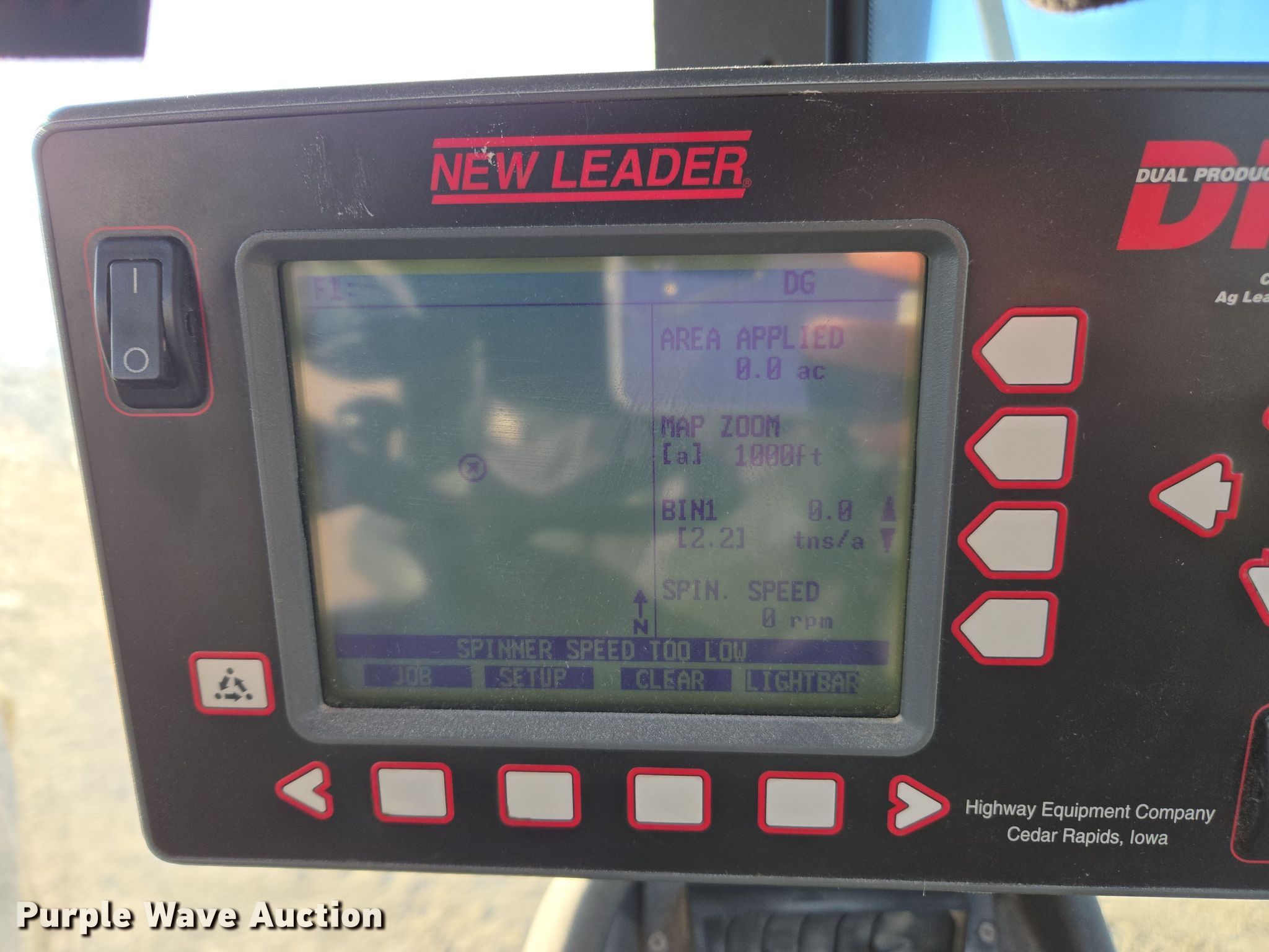 1999 TerraGator 8103 spreader. Miles: 85,365 on odometer, Engine hours: 8,405 on meter, Serial: 115791. Engine John Deere, Cylinders: 6, Fuel type: Diesel. Transmission Powershift. Operators station AC, Heat. Features Dry fertilizer spreader bed New Leader G4, Capacity: 10 tons, Length: 13', Stainless steel, Dual spinners, Conveyor belt Width: 24", Electronics Light bar, GPS monitor New Leader DP.6 Plus, GPS receiver Ag Leader GPS 6000.. Tires Size: 66x43.00-25, Flotation tires. Notes Unknown operating condition of bed, Hydraulic oil low, leaks. Keystone Cooperative. Versailles, OH 45380