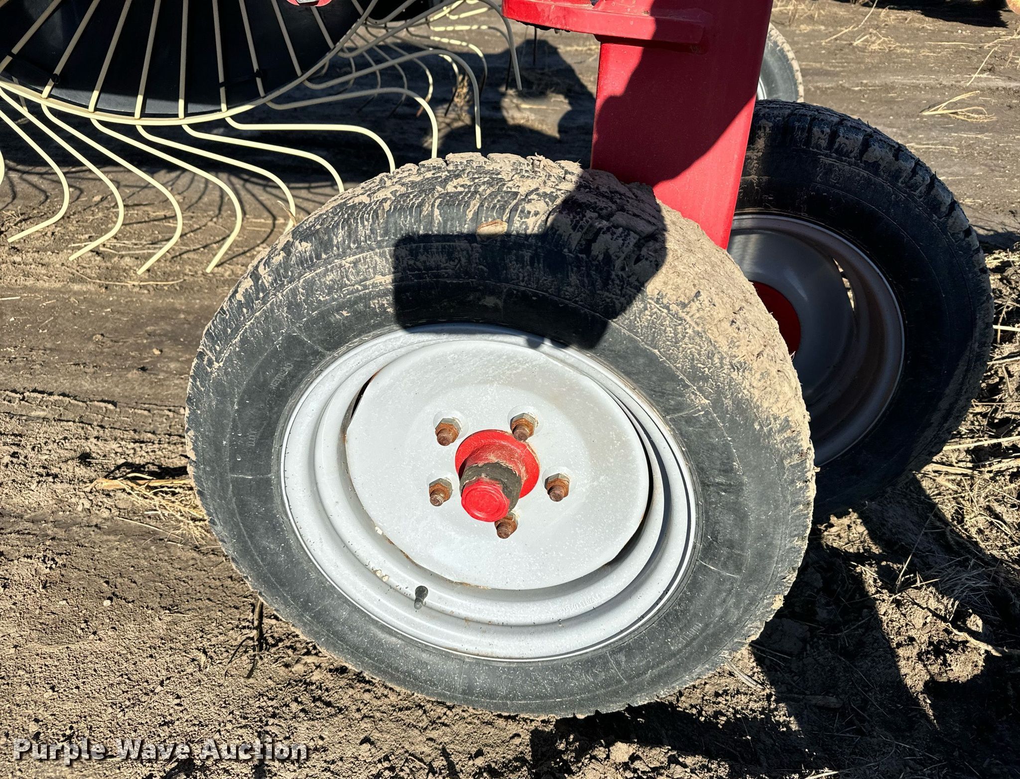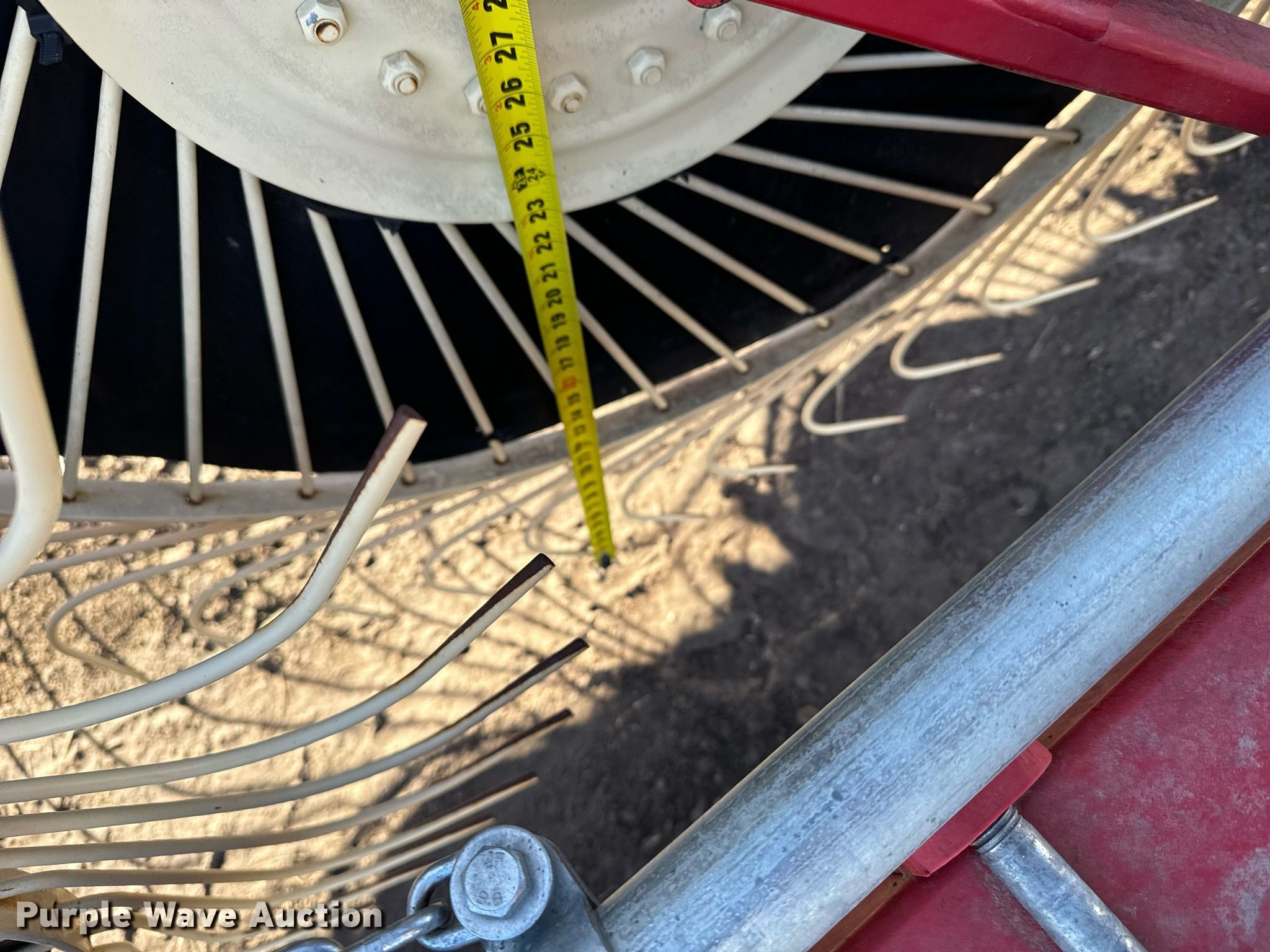 2013 Farm King hay rake. Serial: ER0324. Features Width: 61', Wheels: 18 Diameter: 60", Hydraulic lift, Hydraulic fold, Ground driven. Tires Size: 205/70R15. Sauvage Family Farm Retirement. Danbury, NE 69026