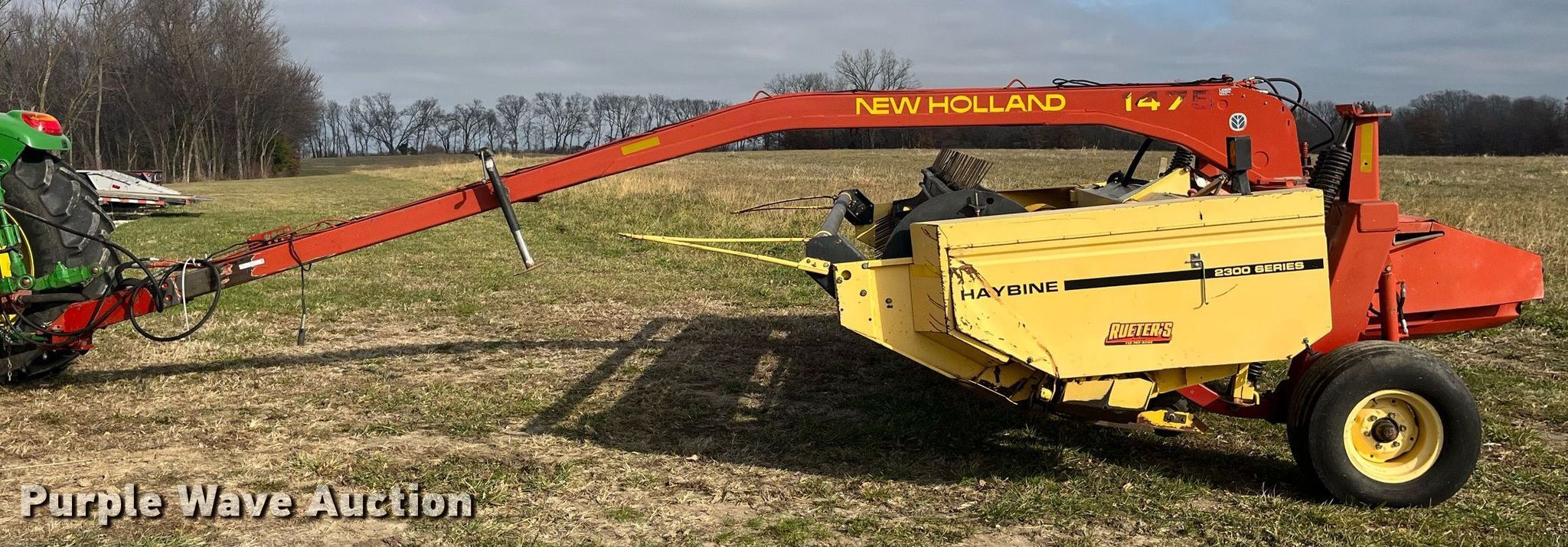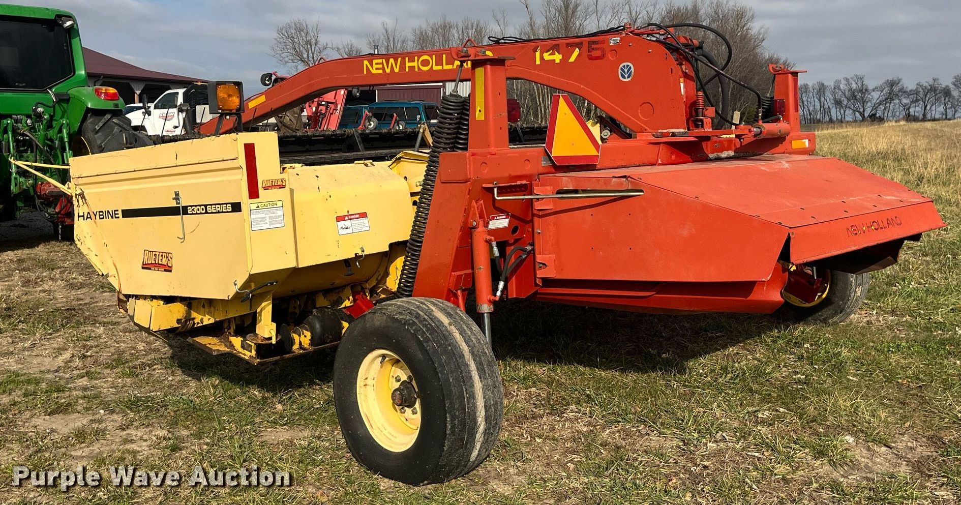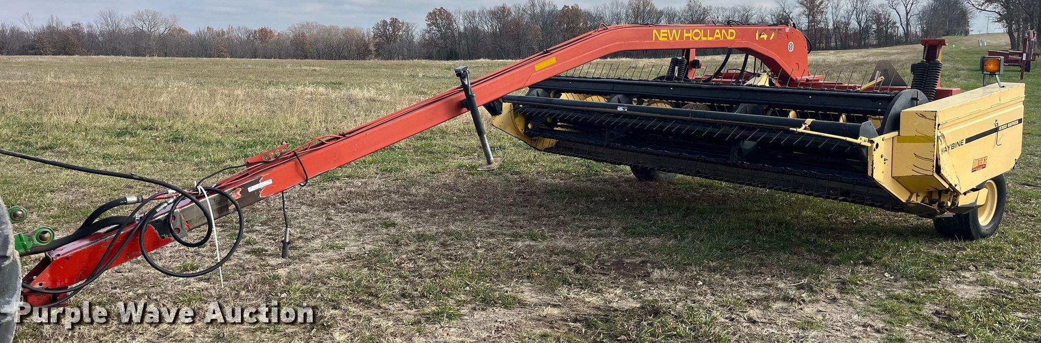 Purple Wave is selling a used Windrower Pull Type in Missouri. This item is a New Holland 1475 2300 Series swather / windrower with the following: PTO: 1000, Center pivot, Hitch, Draw bar, Head, Sickle, Width: 14', Conditioners: Rubber/ rubber