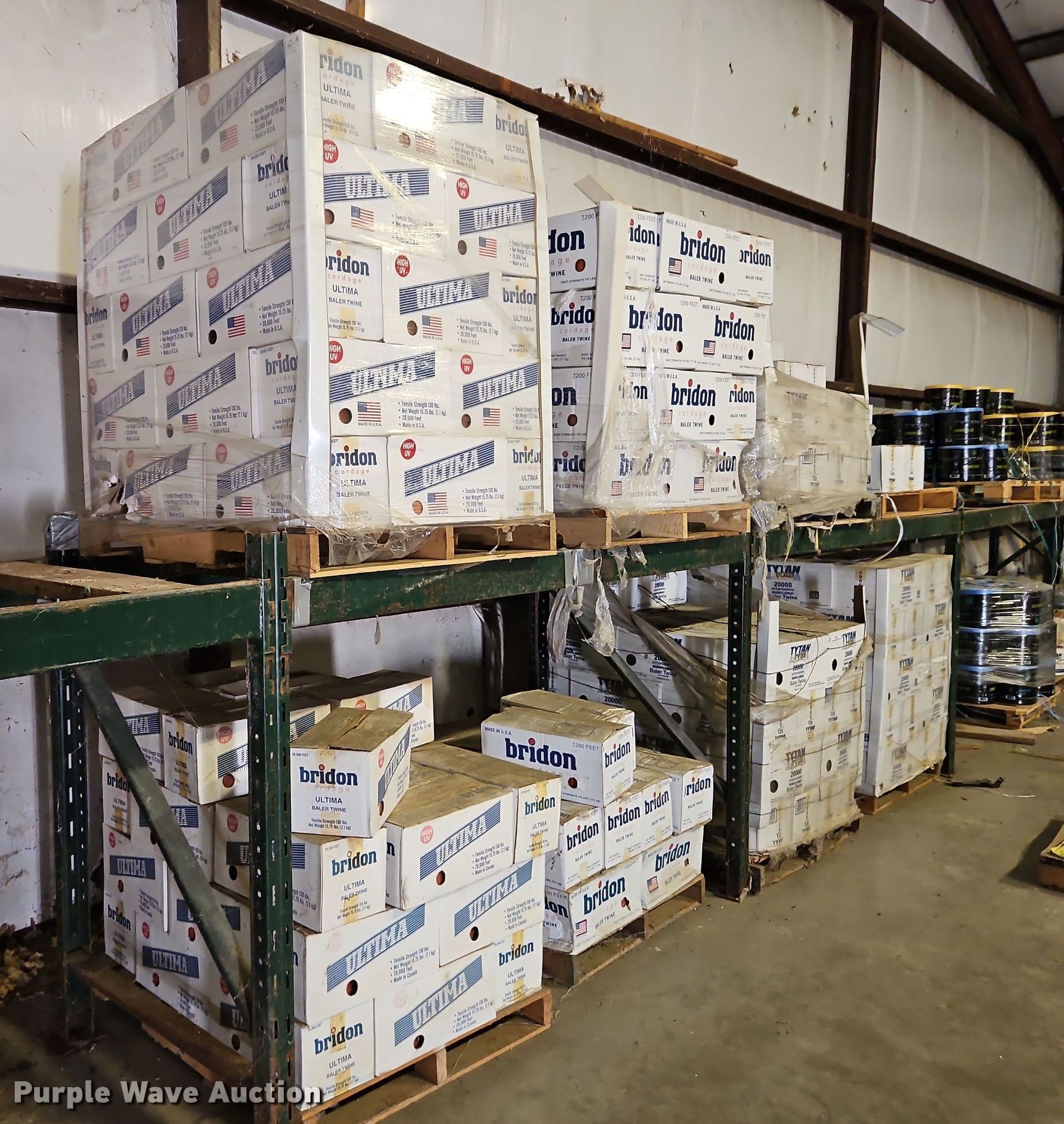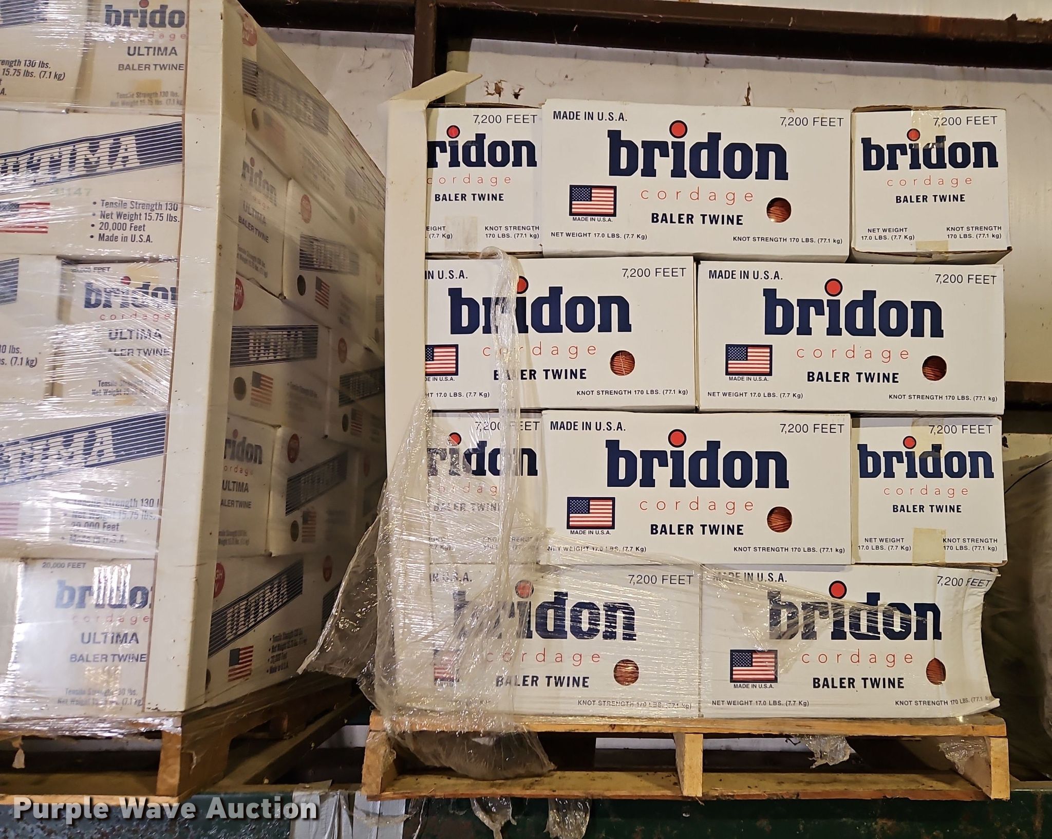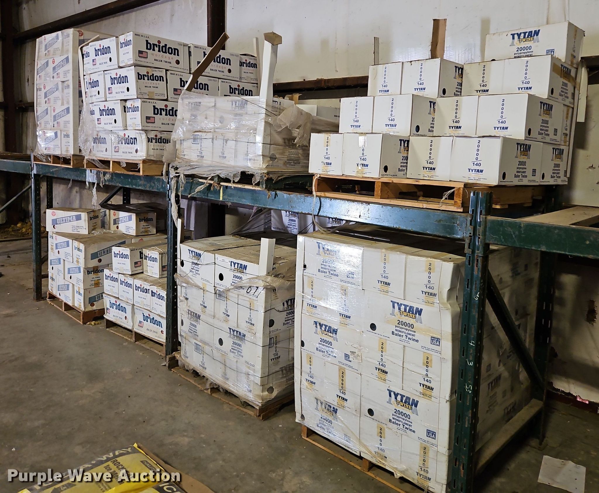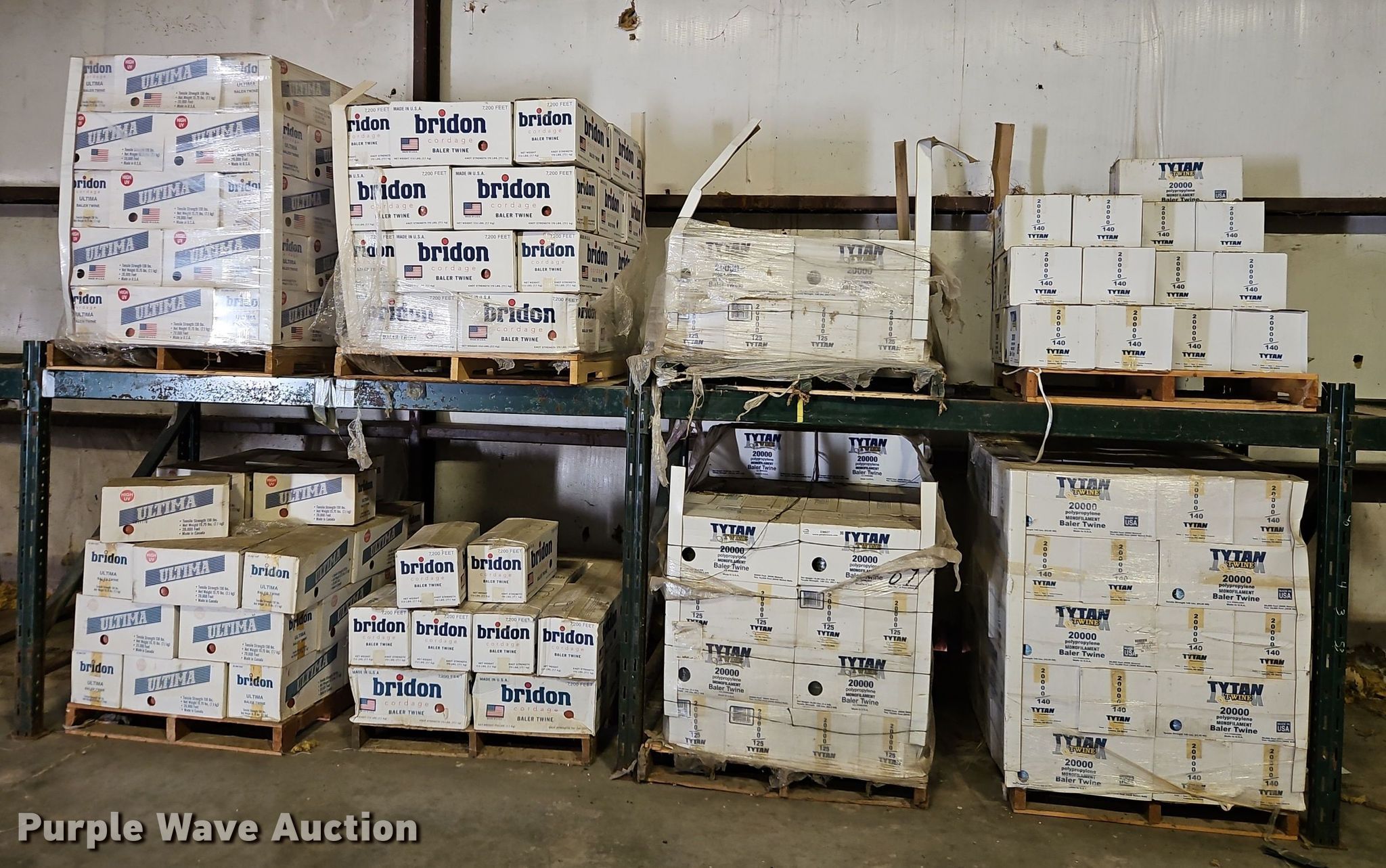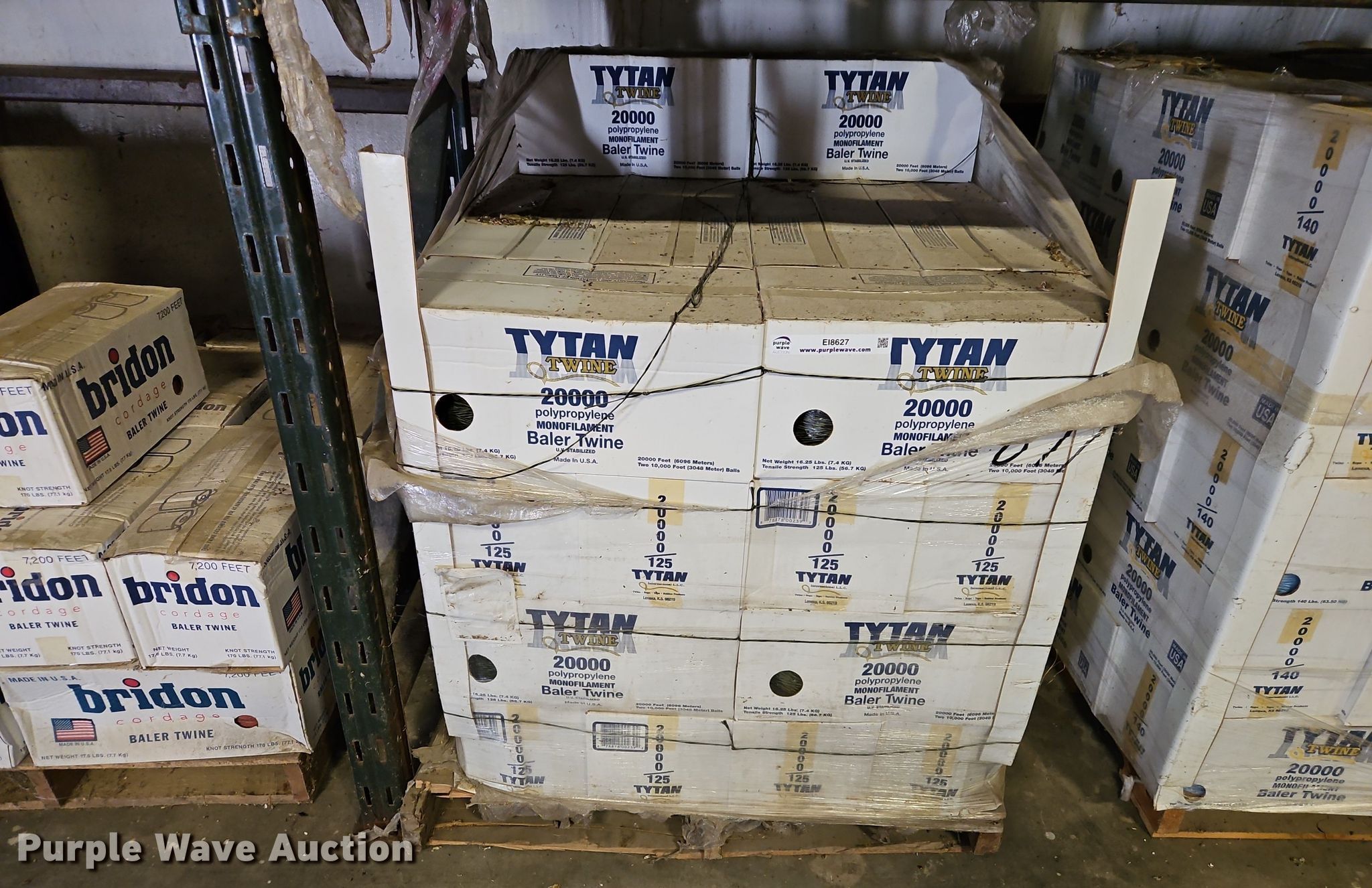Purple Wave is selling a used Hay Equip. Attach. in Kansas. This item is a Tytan / Bridon hay bale twine with the following: (62) rolls of Bridon 7200, (86) rolls of Bridon 20000/130, (57) rolls of Tytan 20000/125, (72) rolls of Tytan 20000/140