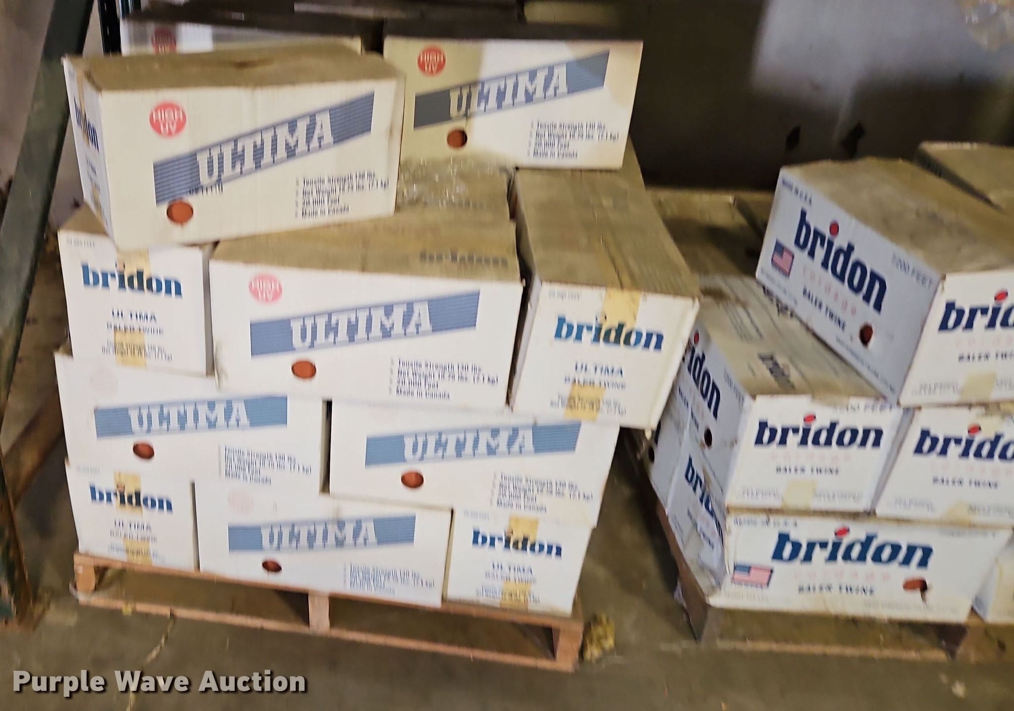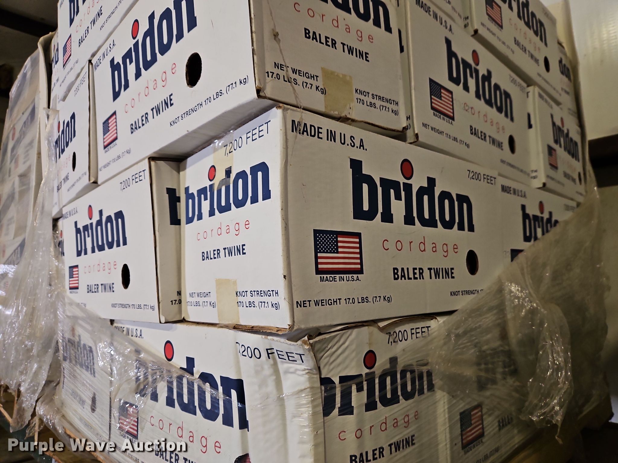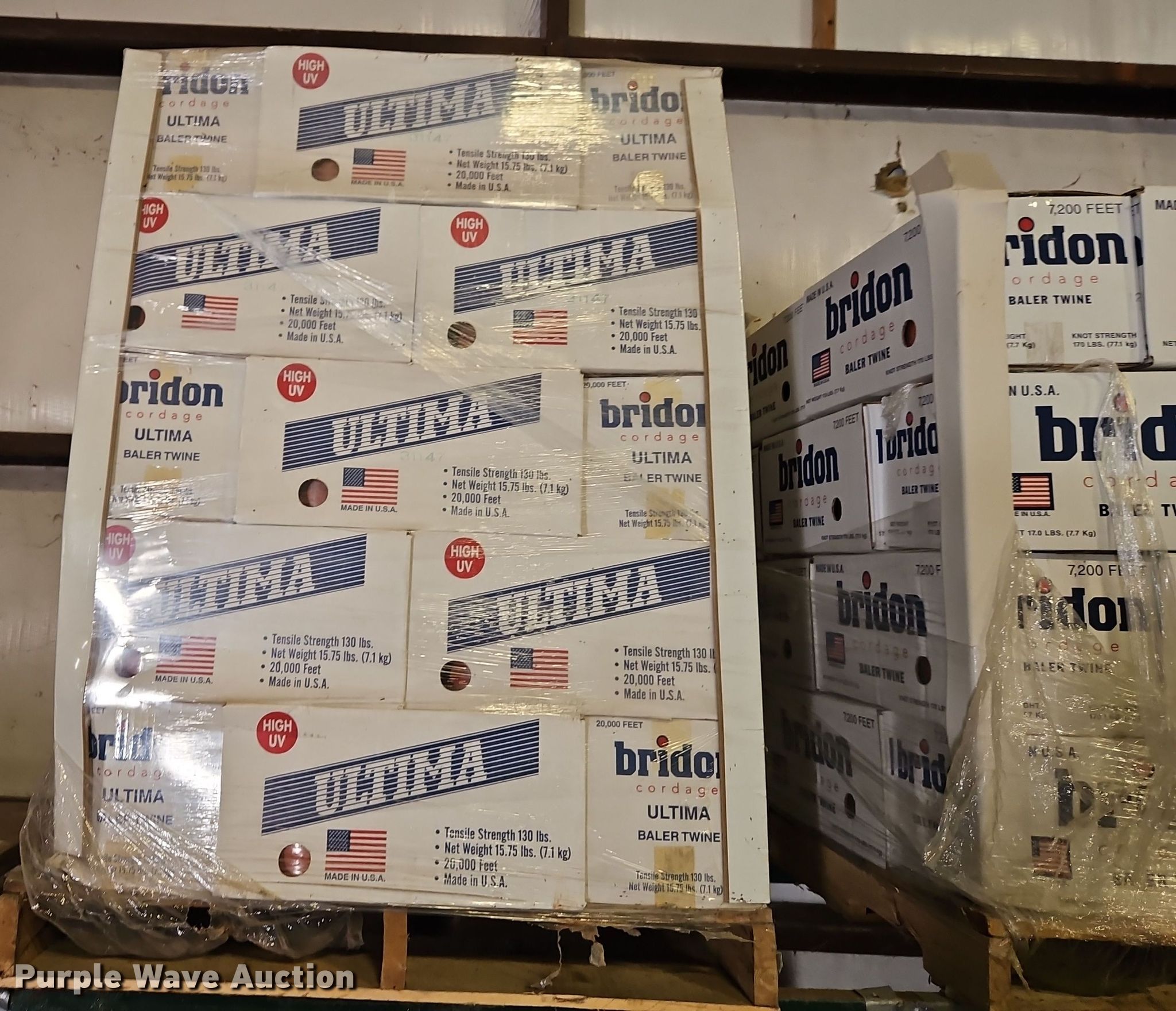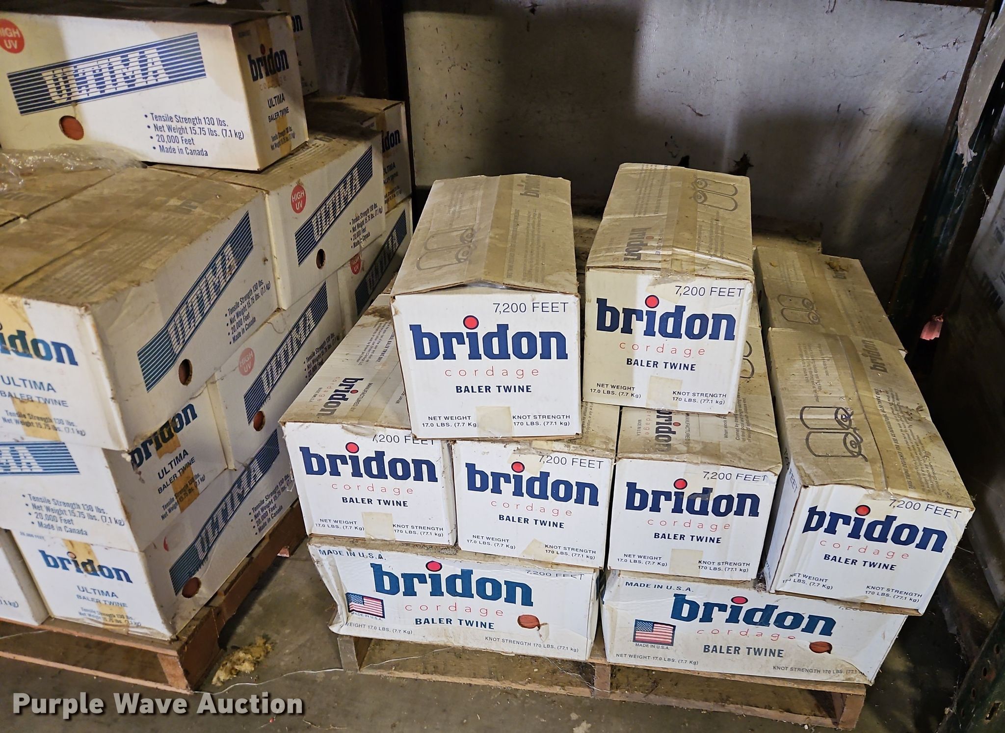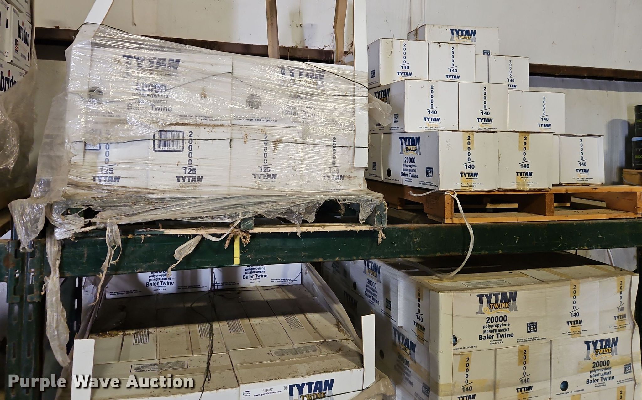 Purple Wave is selling a used Hay Equip. Attach. in Kansas. This item is a Tytan / Bridon hay bale twine with the following: (62) rolls of Bridon 7200, (86) rolls of Bridon 20000/130, (57) rolls of Tytan 20000/125, (72) rolls of Tytan 20000/140