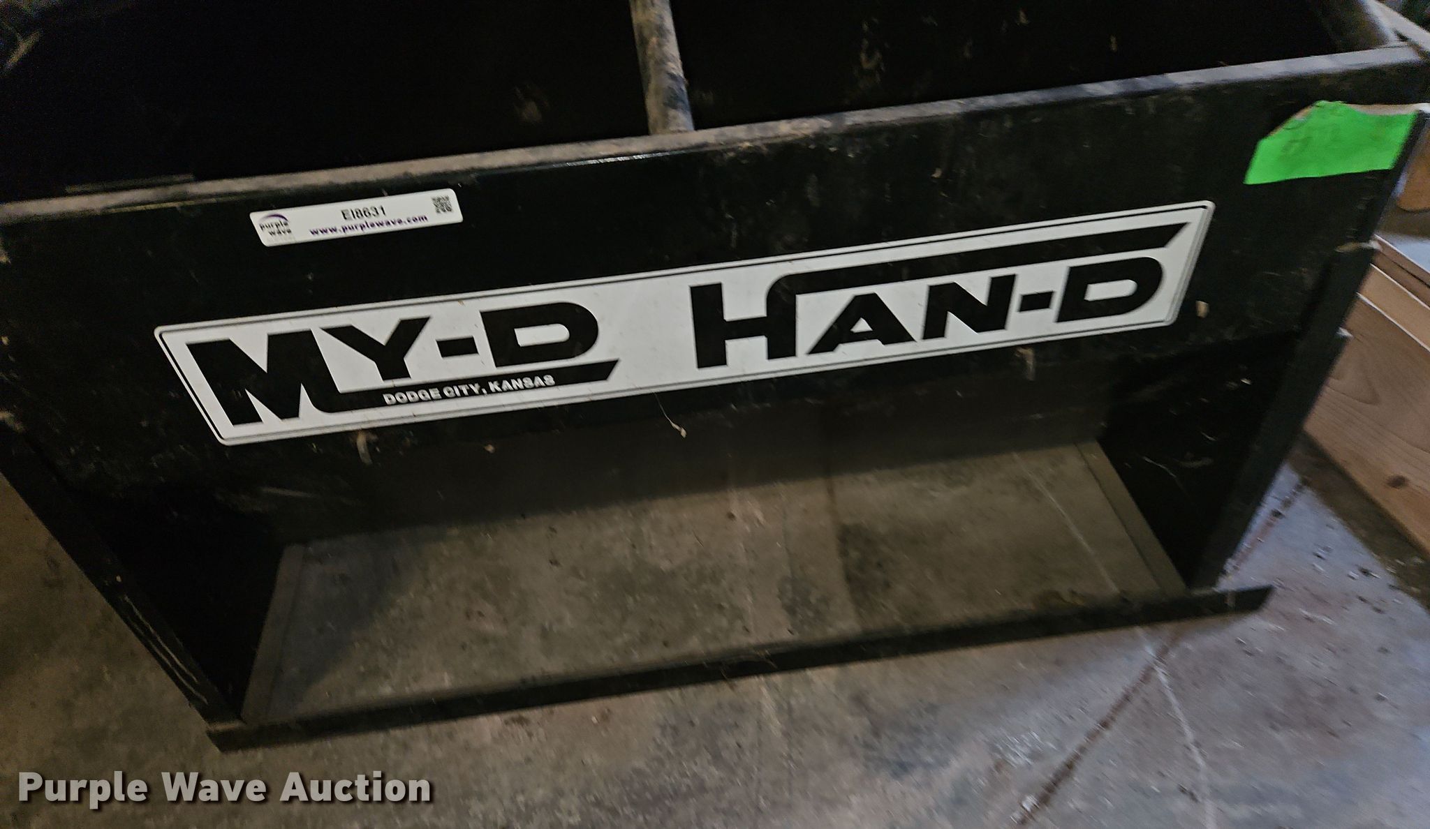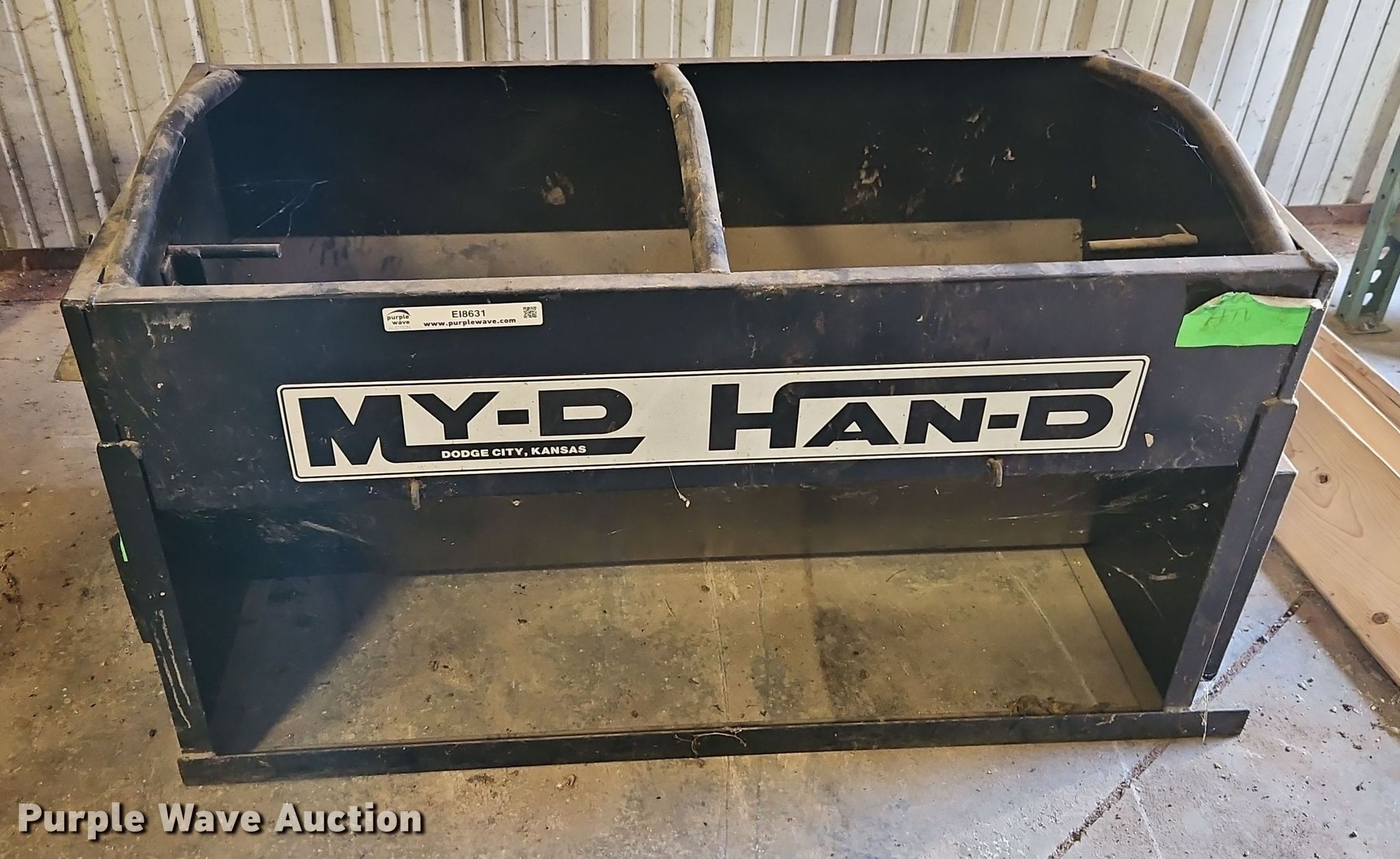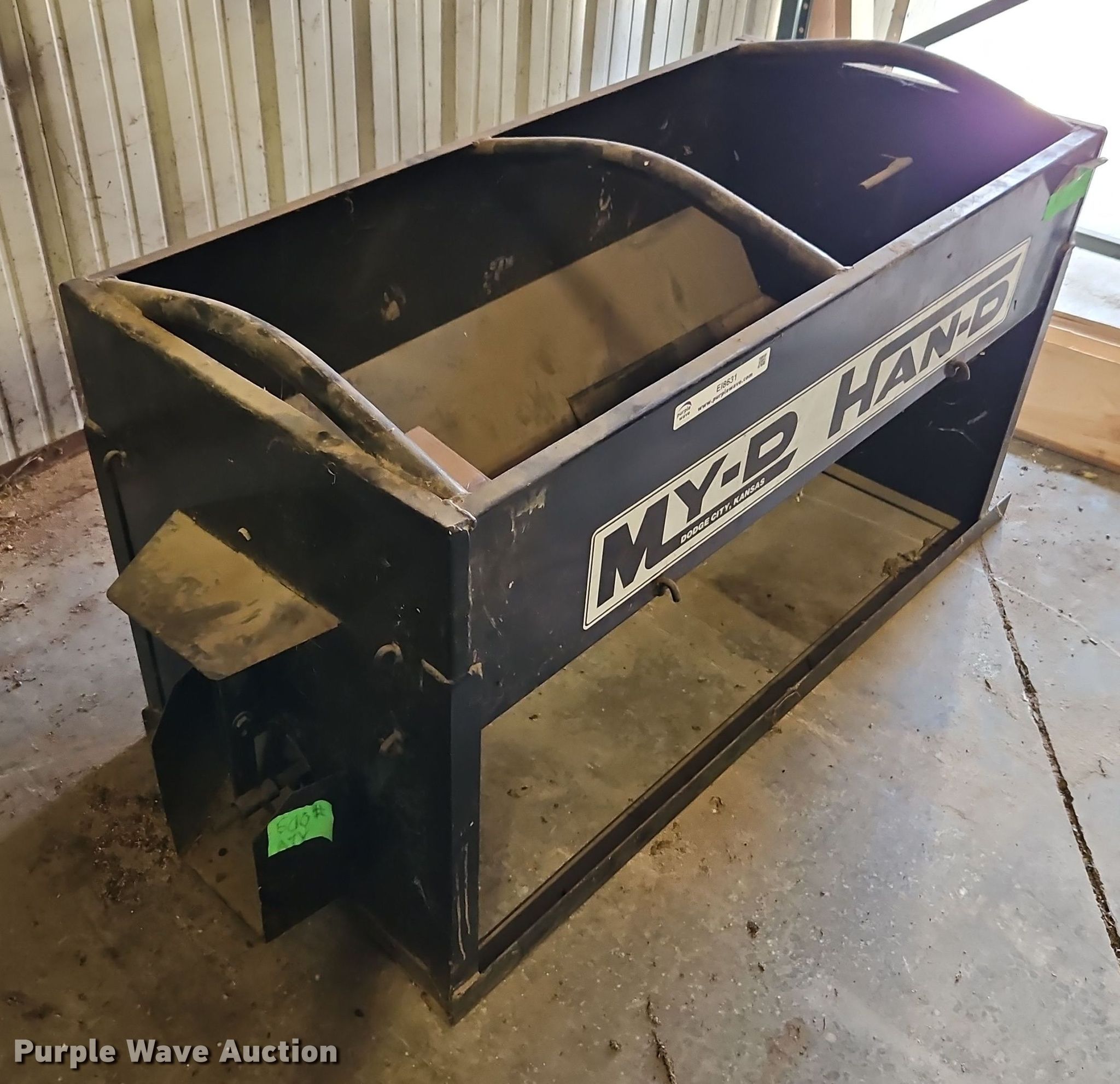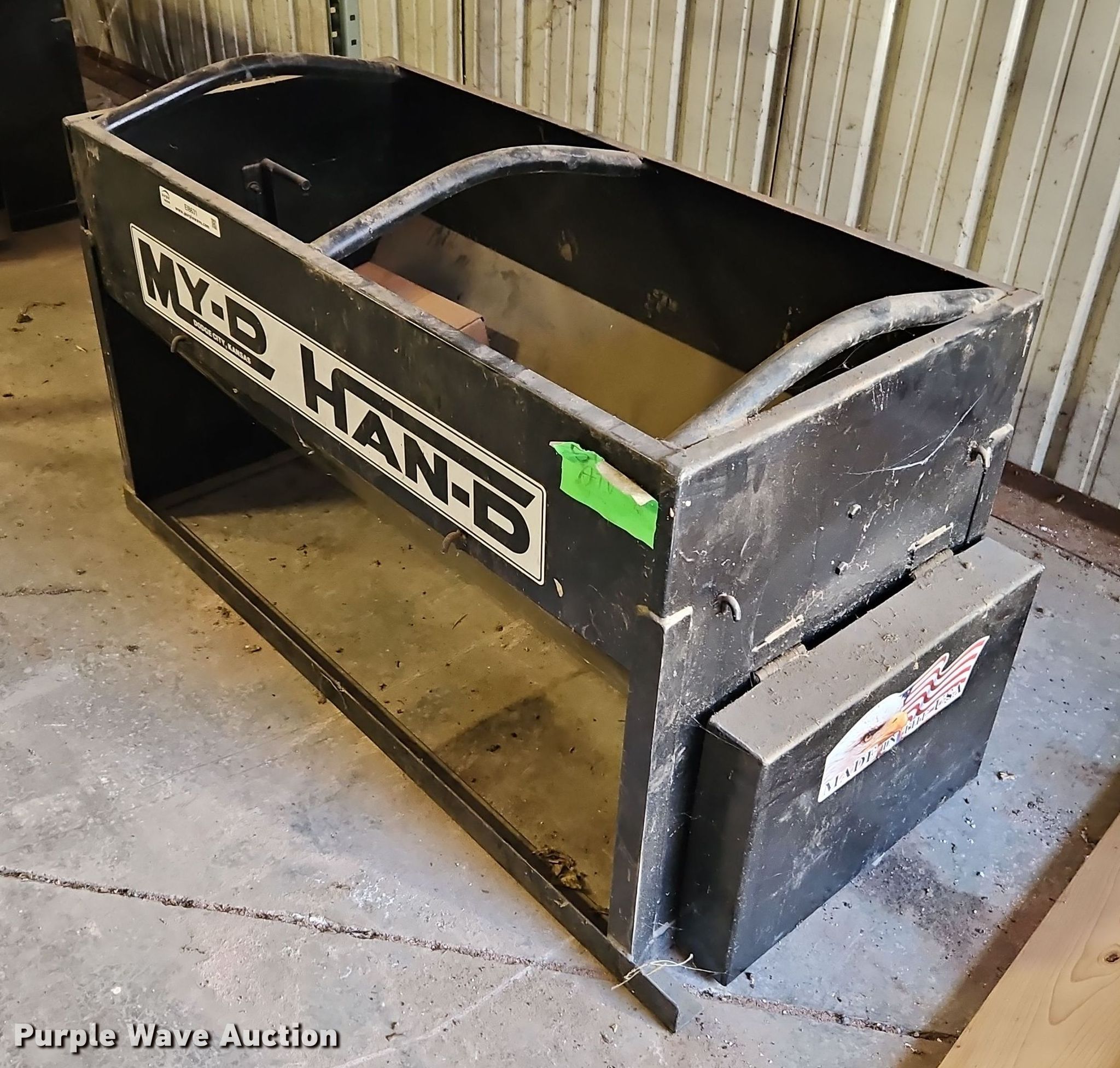 Purple Wave is selling a used Livestock Equip. in Kansas. This item is a My-D Han-D cake feeder with the following: Capacity: 500lbs, Unknown operating condition