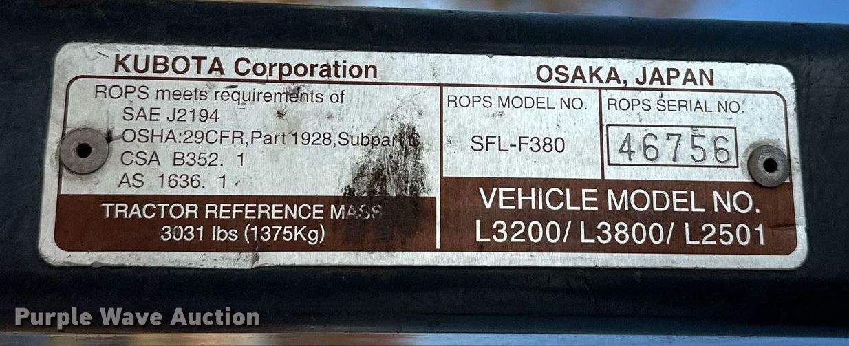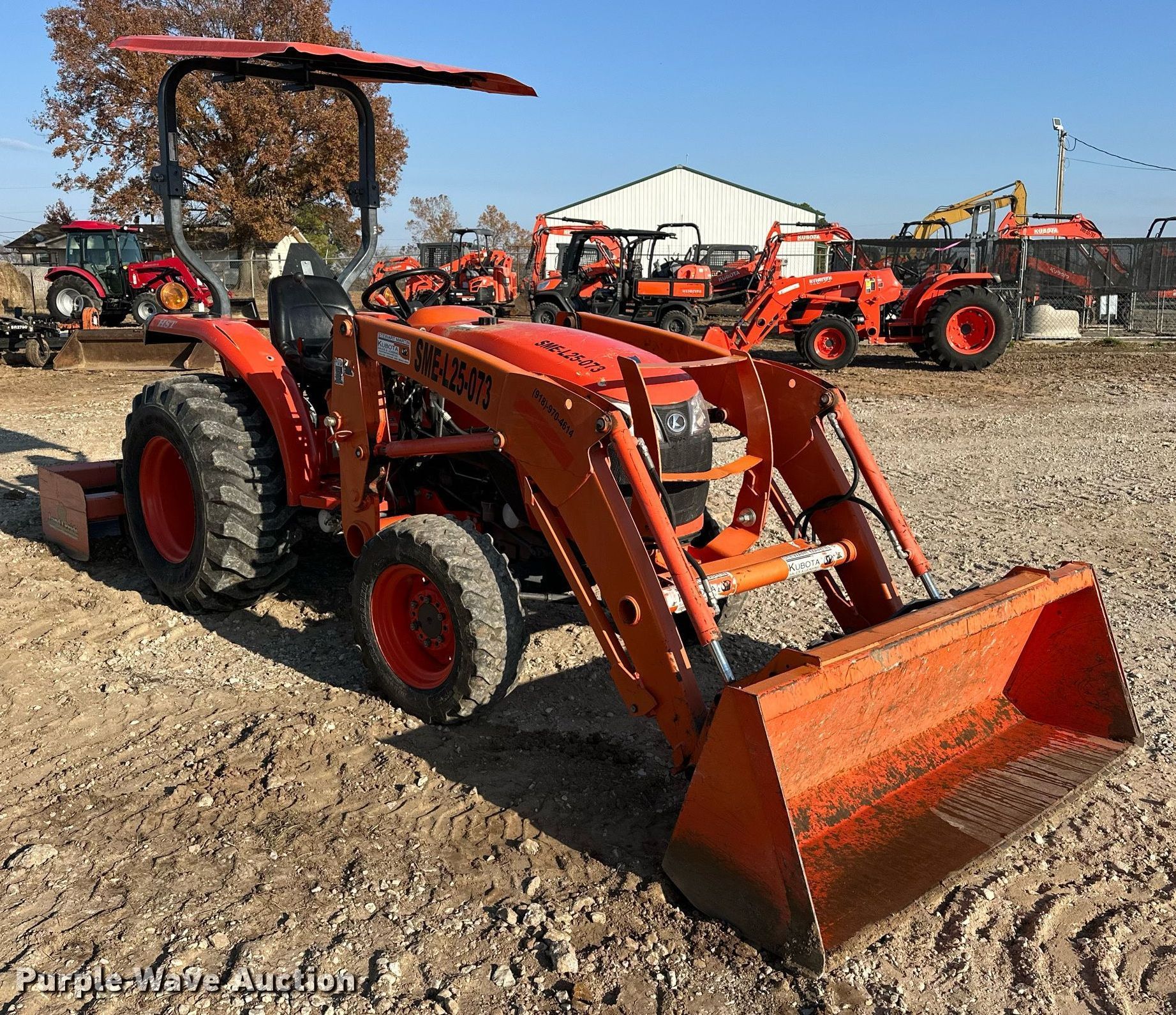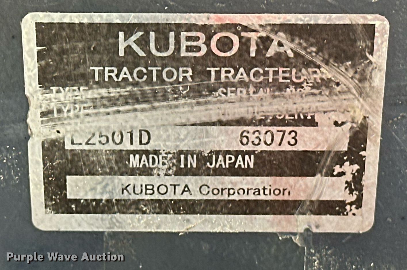 Purple Wave is selling a used Tractor in Oklahoma. This item is a Kubota L2501D MFWD tractor with the following: Hours: 765 on meter, Serial: 63073