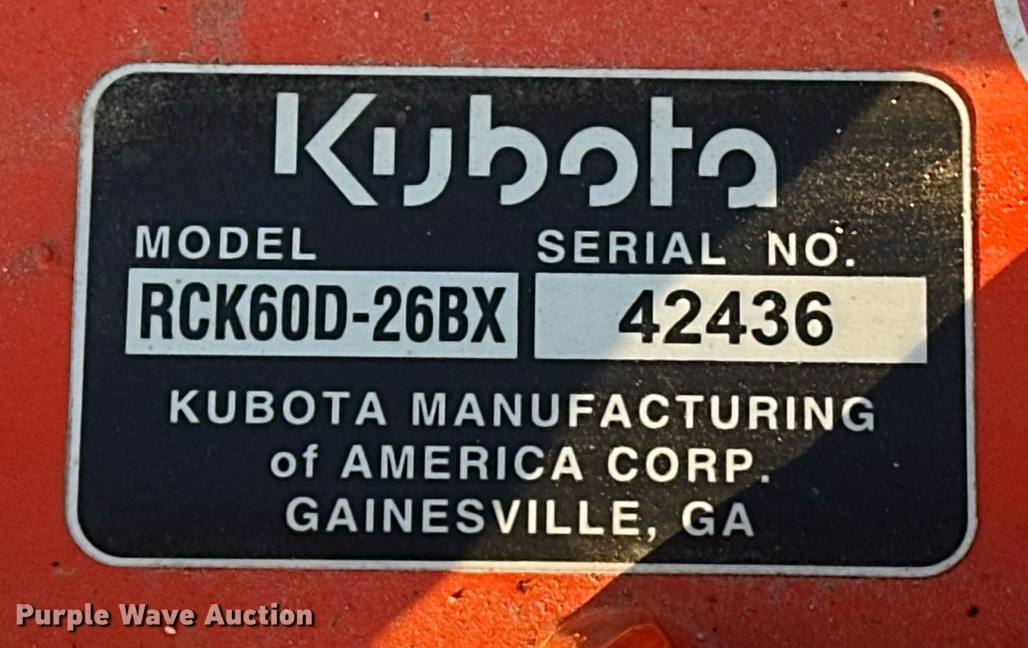 Purple Wave is selling a used Ag Tractor Loader or Attach. in Oklahoma. This item is a 2021 Kubota RCK60D-26BX mower deck with the following: Serial: 42436