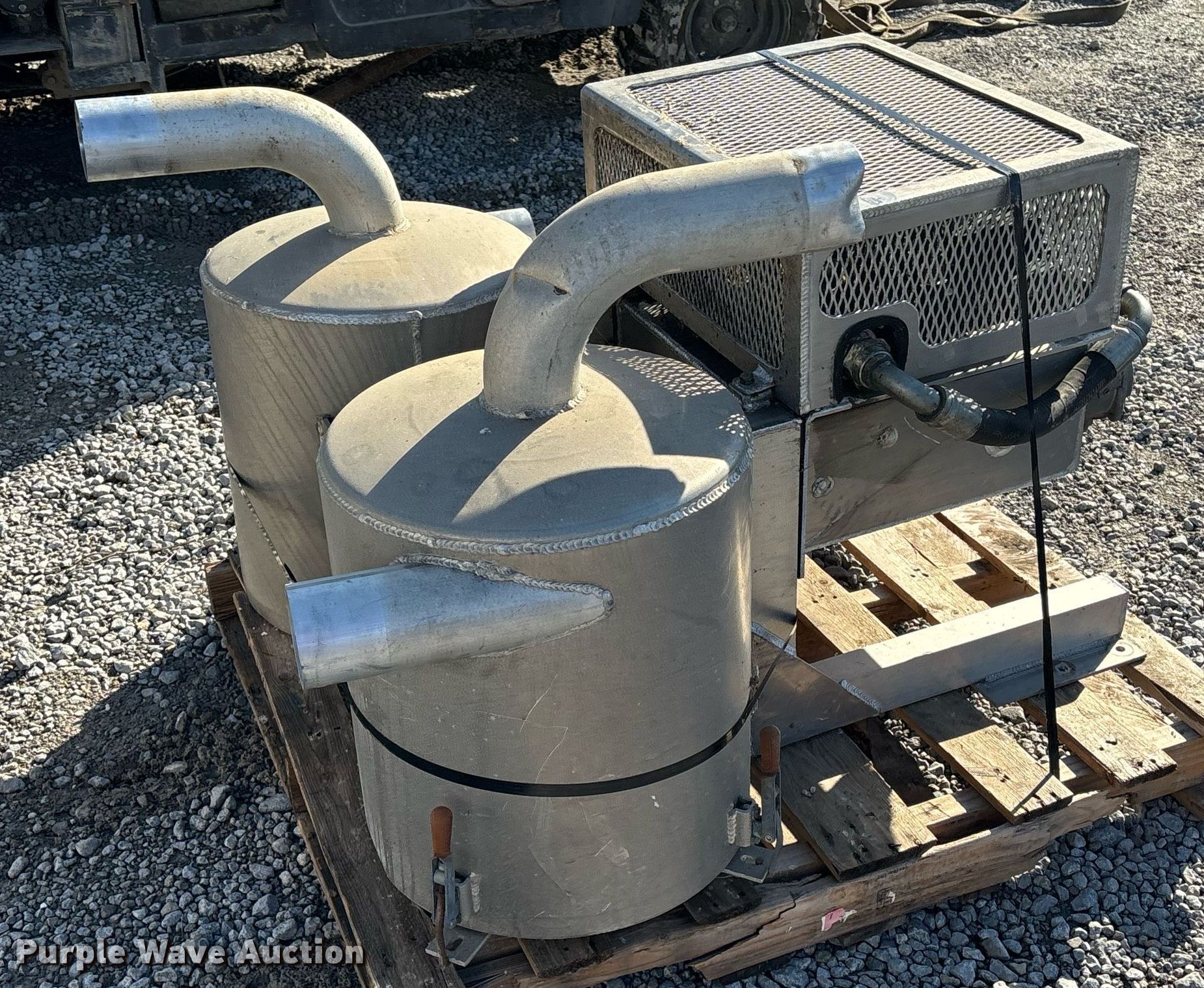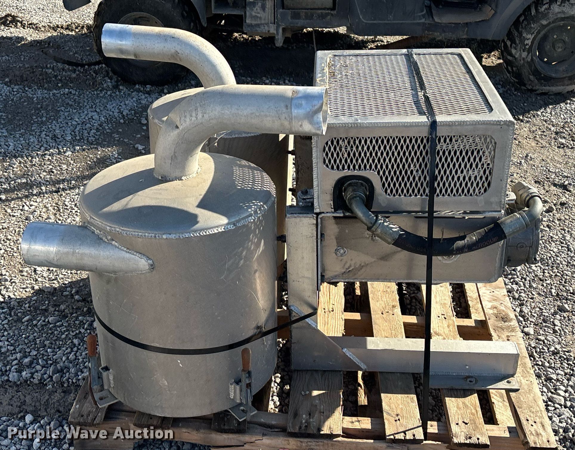 Purple Wave is selling a used Machine Shop Tools and Equip. in Illinois. This item is a Shop built hydraulic oil cooler with the following: (2) filter housings