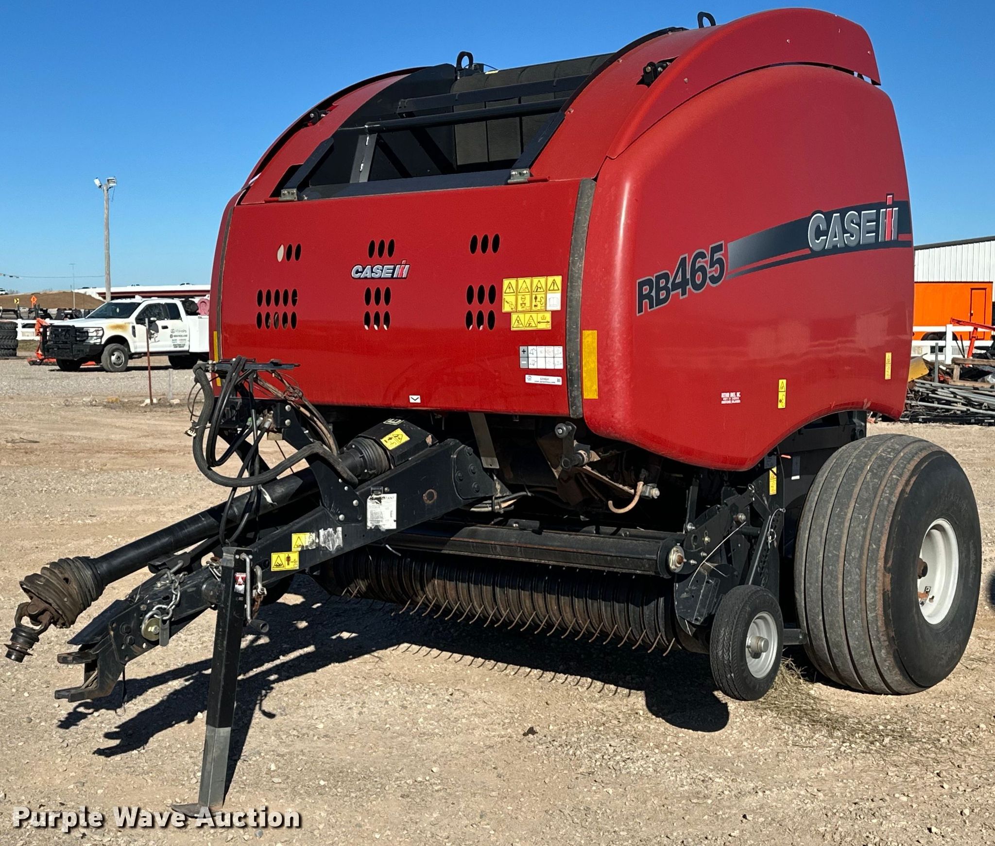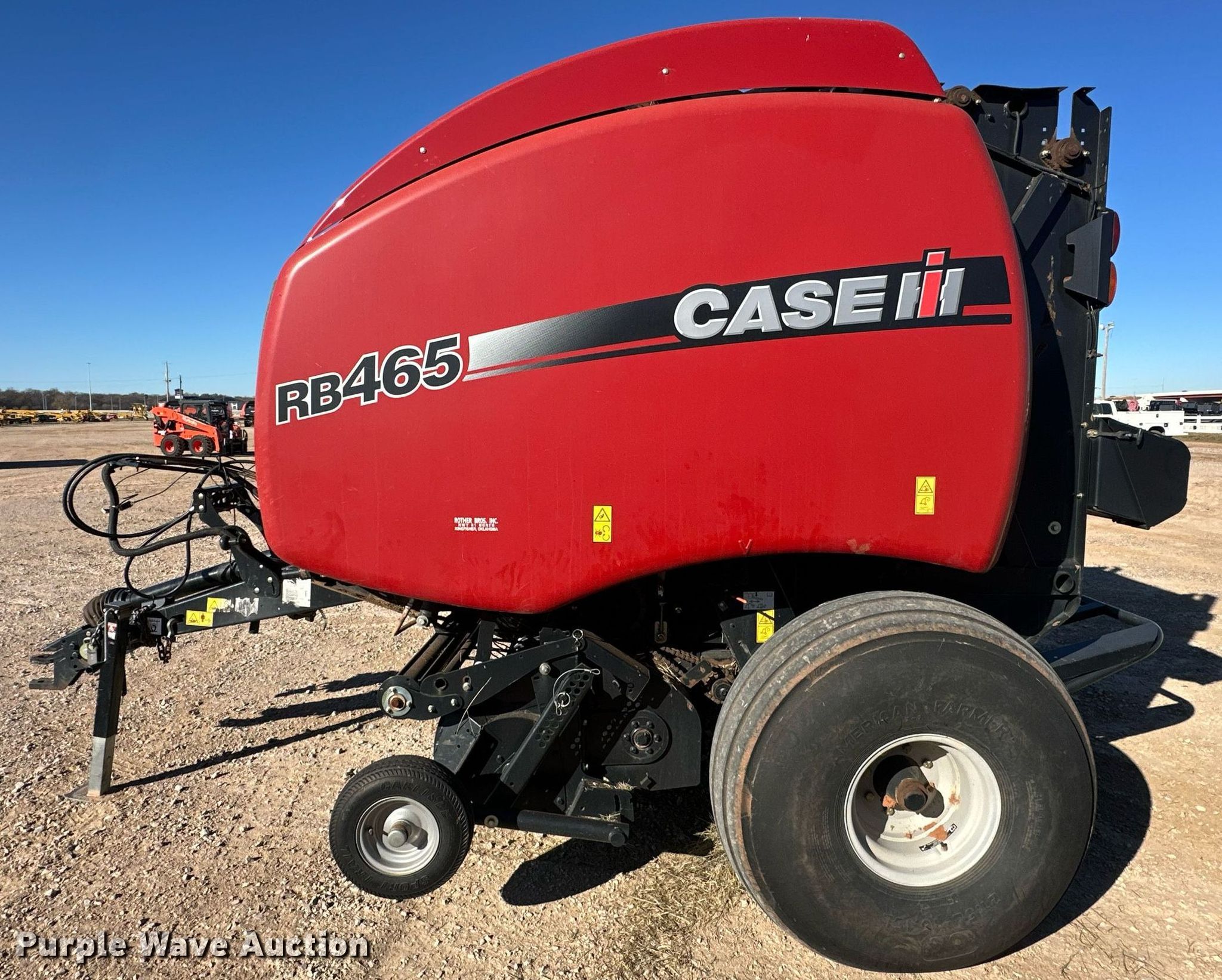 Purple Wave is selling a used Round Baler in Oklahoma. This item is a 2018 Case RB465 round baler with the following: Bale count: 7,800, Serial: HBJRB465KJN196486, Unit #: A055684