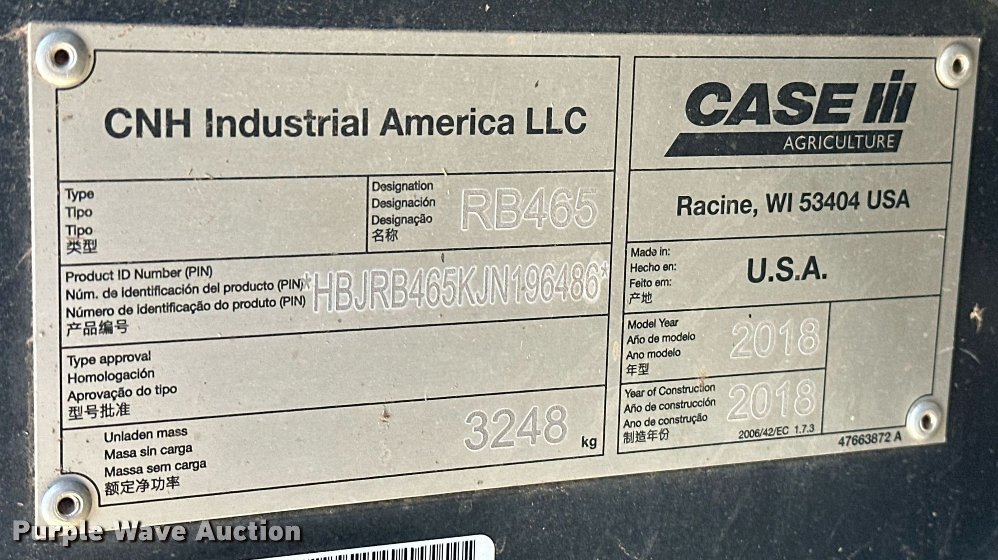 • ER4637 image for item ER4637 2018 Case RB465 round baler