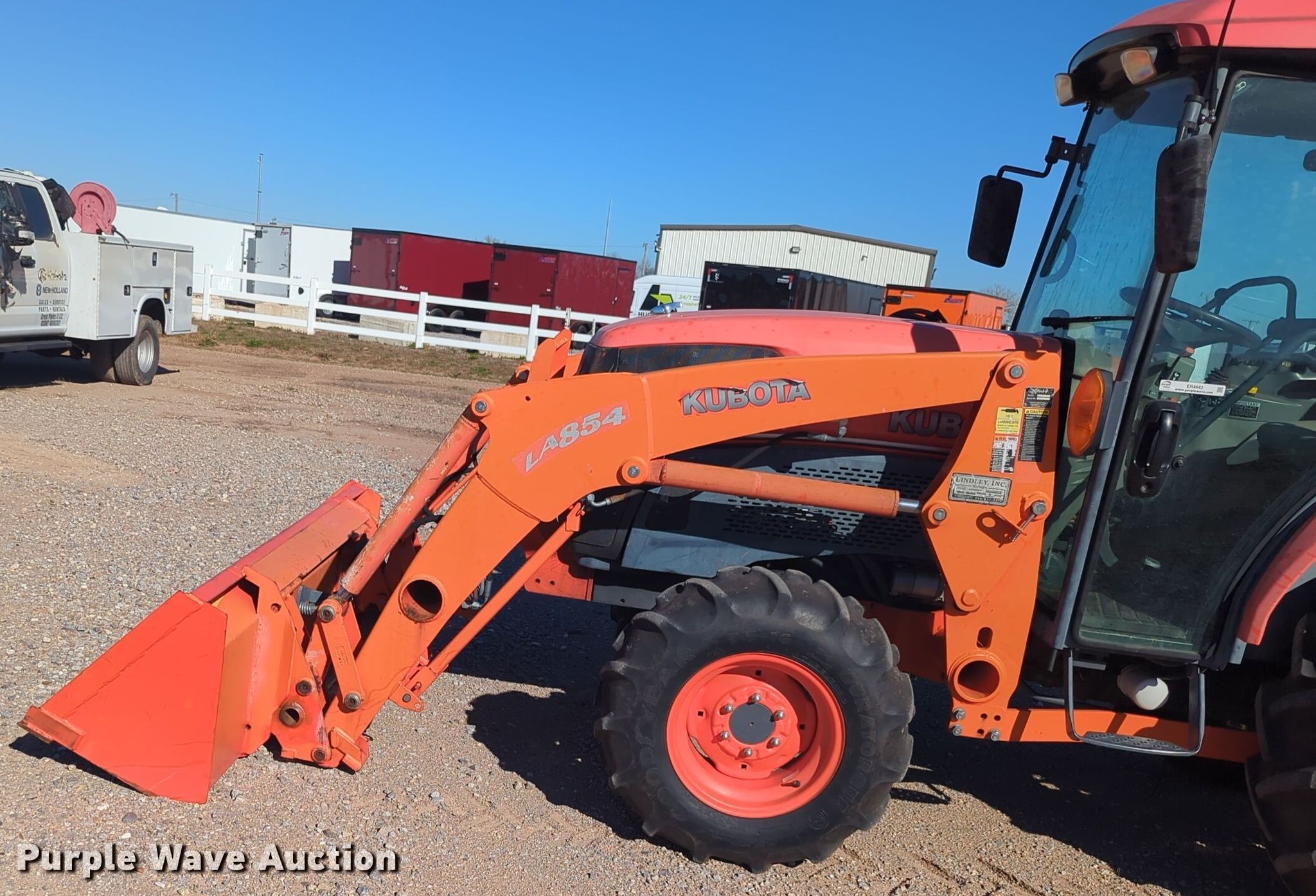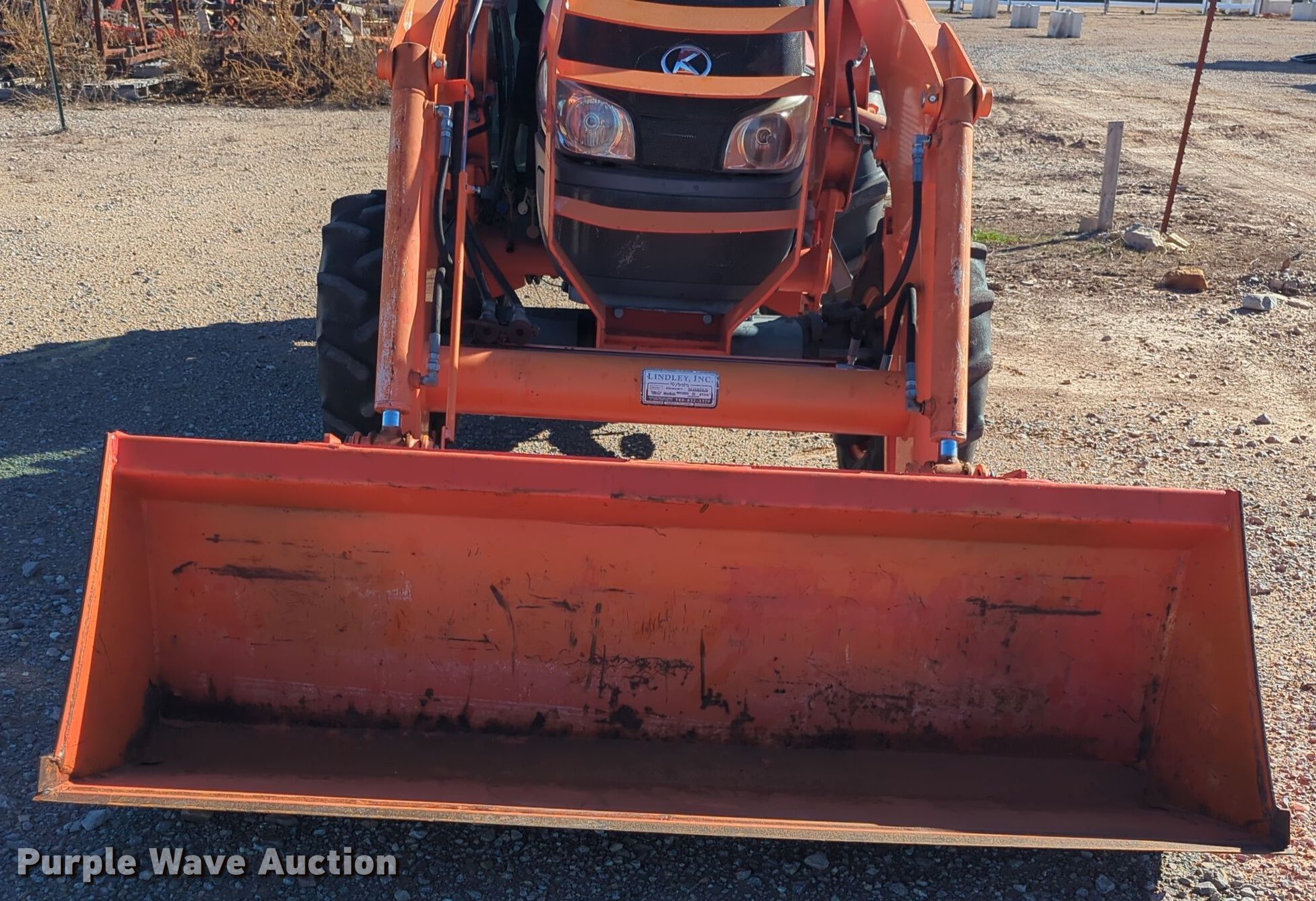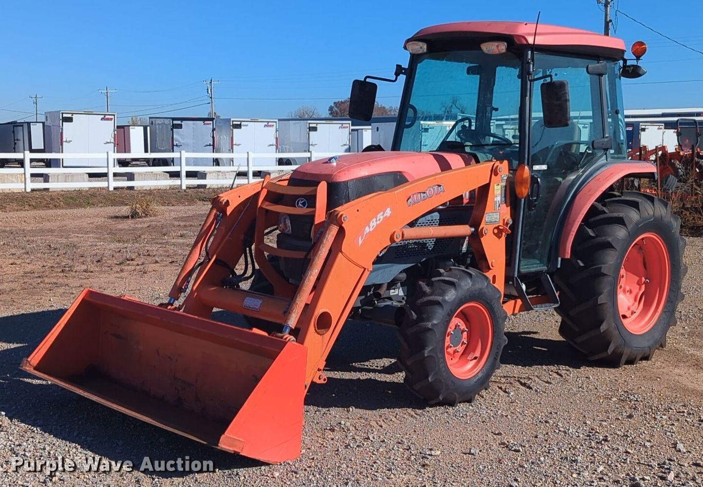 Purple Wave is selling a used Tractor in Oklahoma. This item is a Kubota L5740 MFWD tractor with the following: Hours: 837 on meter, Serial: 73413, Unit #: A055362