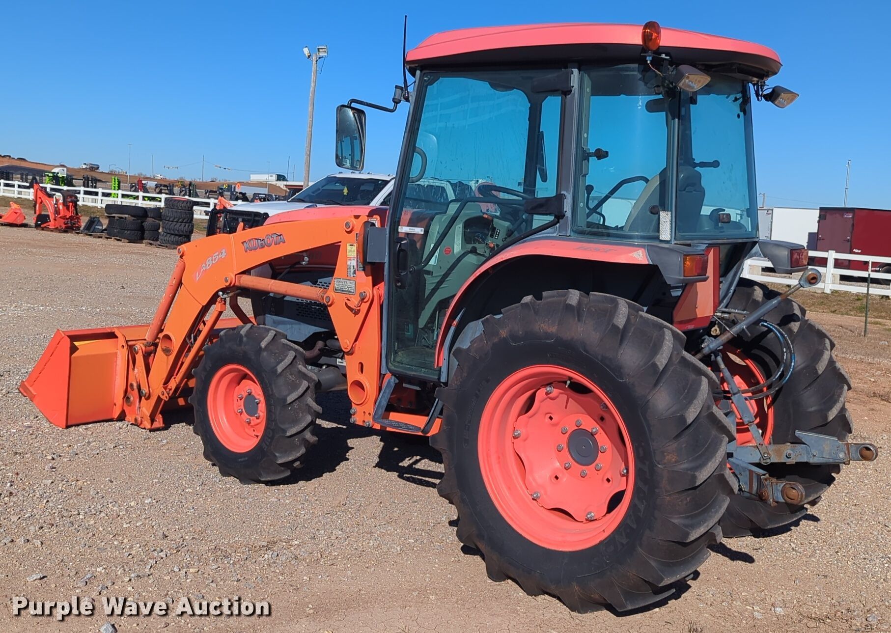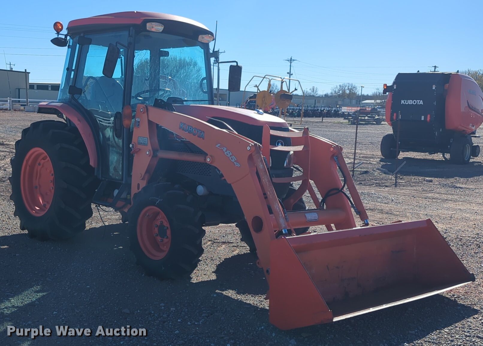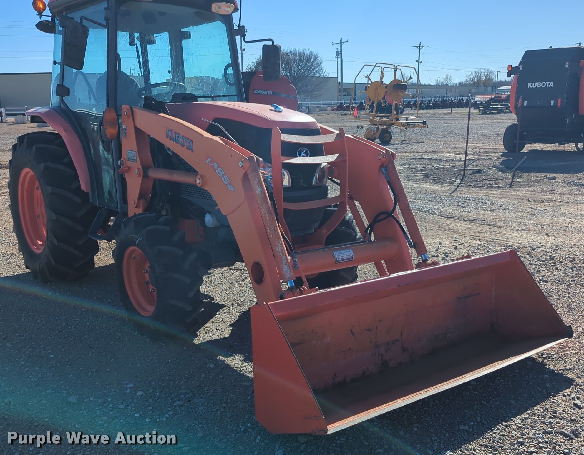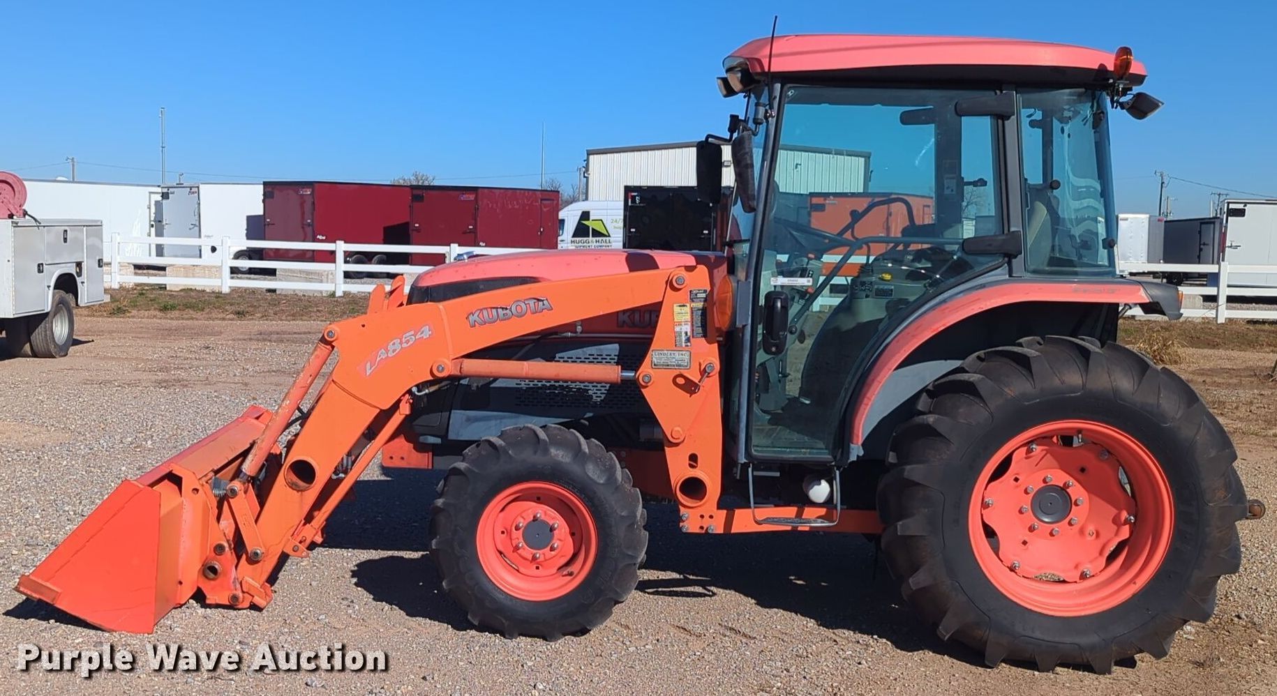 Purple Wave is selling a used Tractor in Oklahoma. This item is a Kubota L5740 MFWD tractor with the following: Hours: 837 on meter, Serial: 73413, Unit #: A055362
