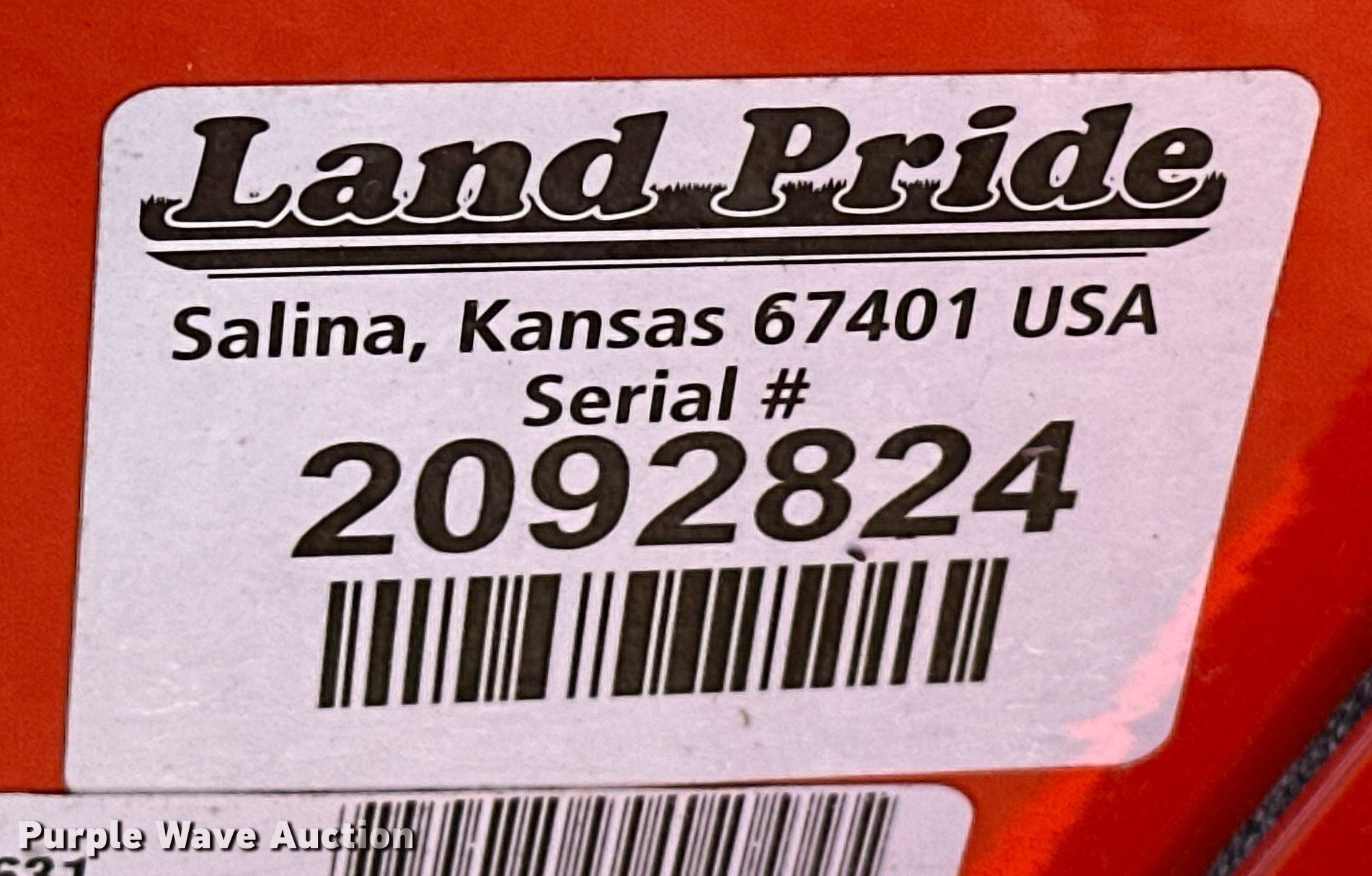 Purple Wave is selling a used Rotary Tillage in Oklahoma. This item is a Land Pride RTR0550 rotor tiller with the following: Overall width: 50", Serial: 2092824, Unit #: A038631