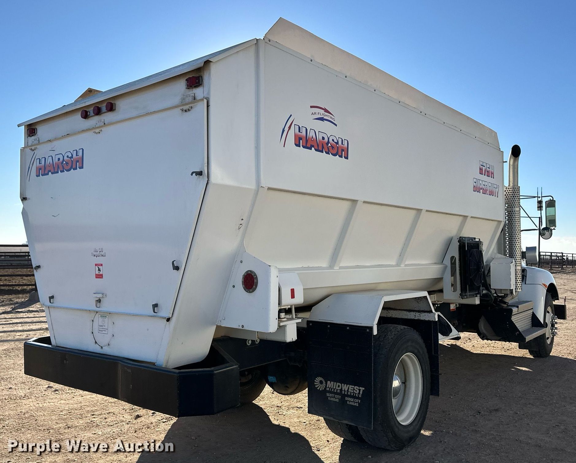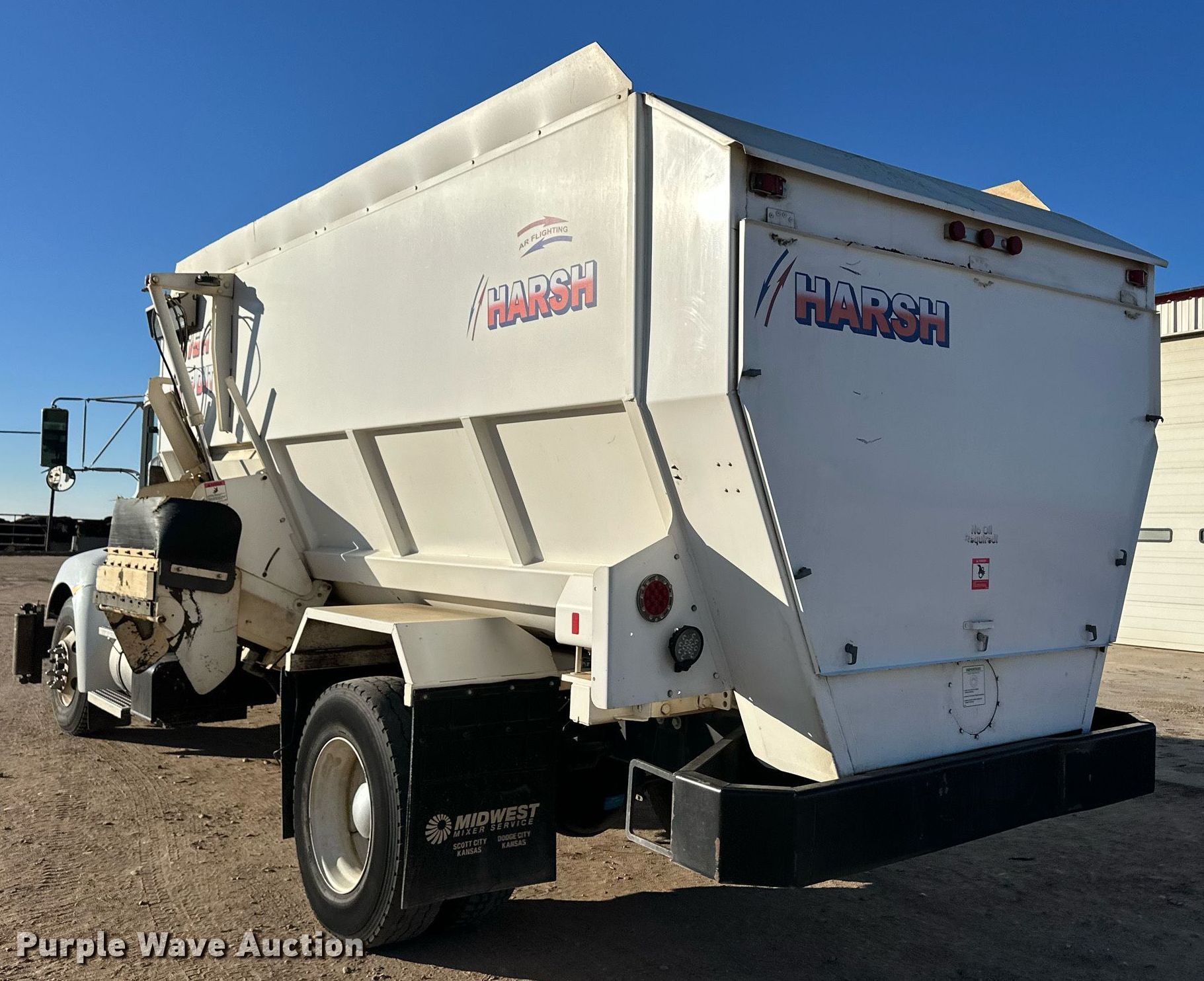 2020 Kenworth T370 feed mixer truck. Miles: 43,473 on odometer, Hours: 13,881 on meter, Miles or hours may vary, unit still in use, VIN: 2NKHHJ7X6LM391245. Engine Paccar PX-9, Displacement: 8.9L, Cylinders: 6, Fuel type: Diesel. Transmission Allison, Automatic. Chassis Differential lock: Inter-axle, Axles: Single, Suspension: Spring, Brakes: Air, PTO. Interior AC, Heat, Cruise control. Features Feed mixer bed Harsh 575H Super Duty, In-cab controls, Scales DigiStar EZ 2810, In-cab controls, Auger Quantity: 4, Discharge: Side Width: 40", Chute: Hydraulic, Door: Hydraulic. Tires Size: 11R22.5. Notes Dash warning indicators: ABS. Kansas title. Title distribution may be delayed up to 14 days from verification of funds. Cimarron, KS 67835