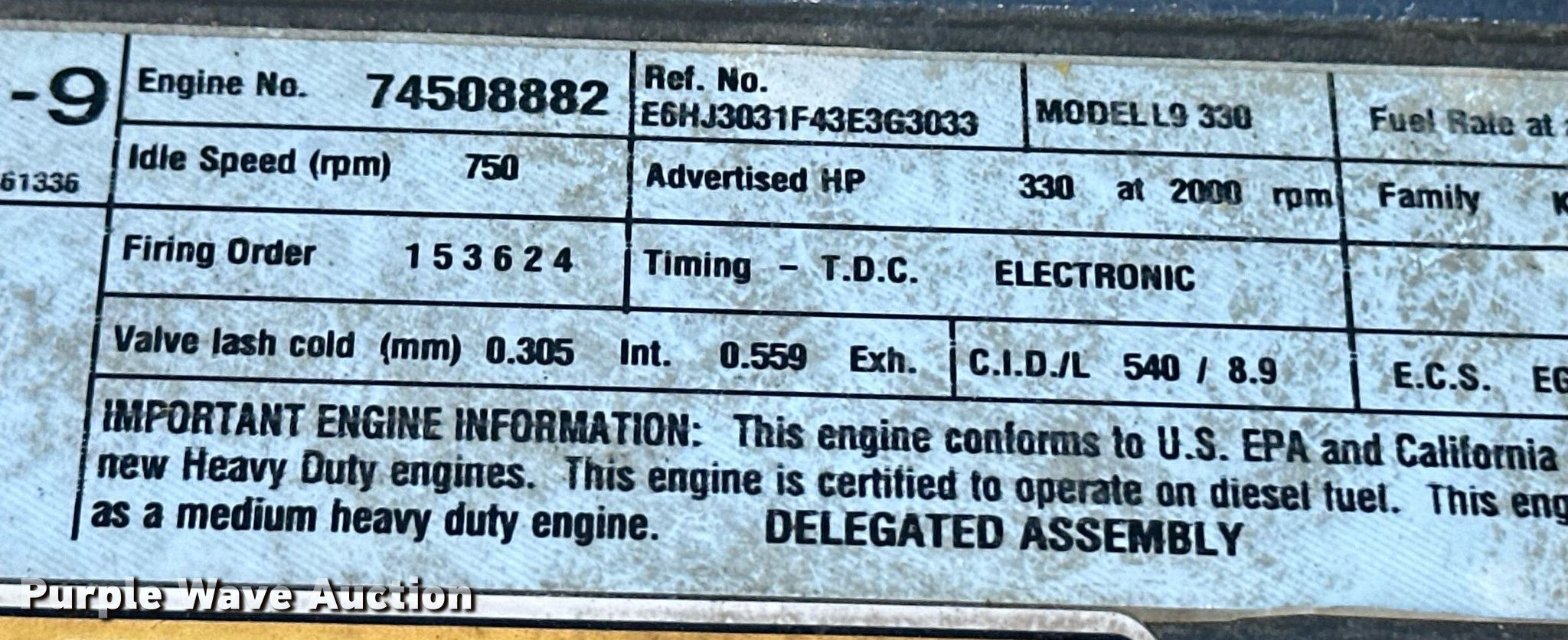 - Displacement: 8.9L