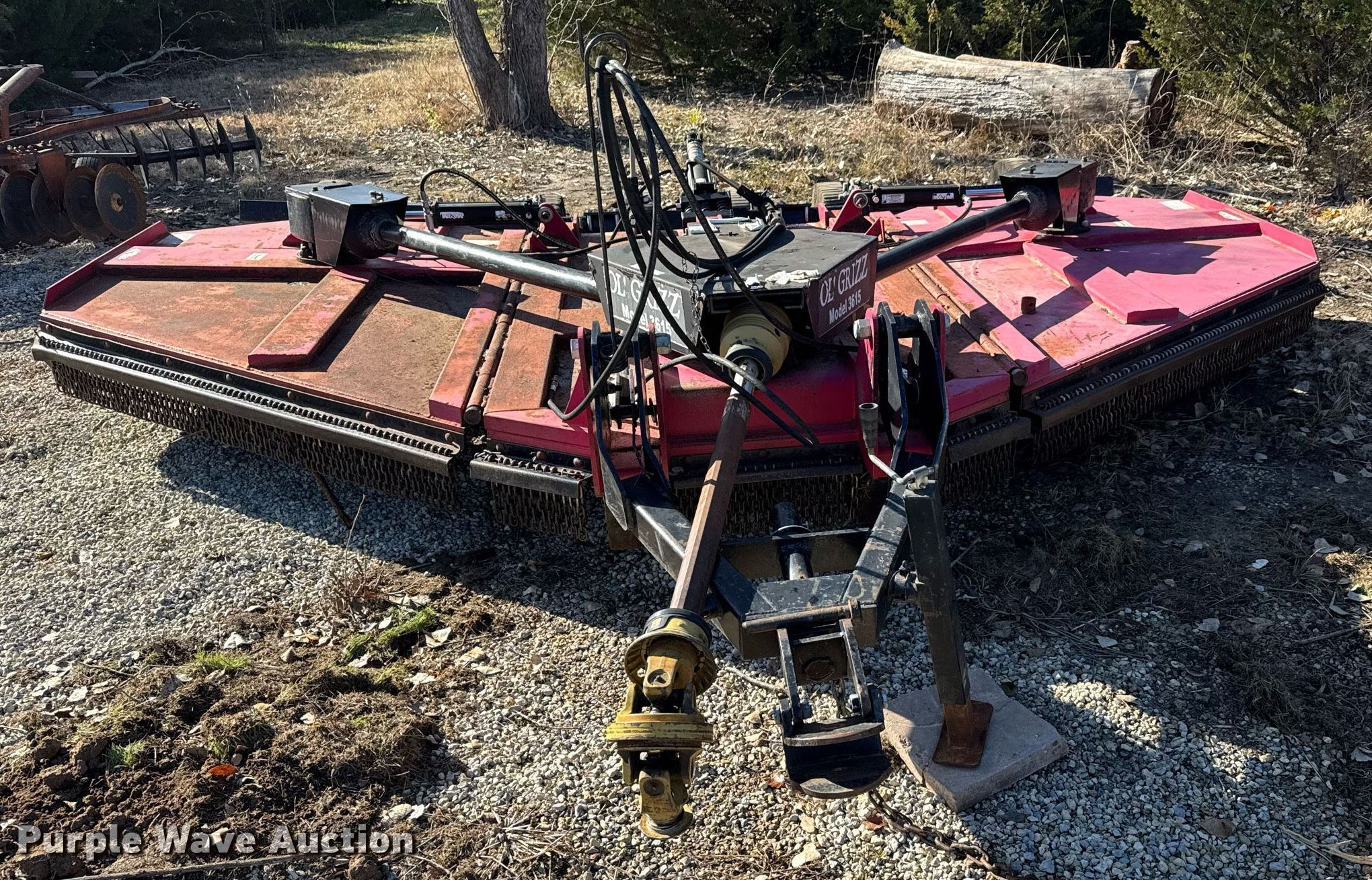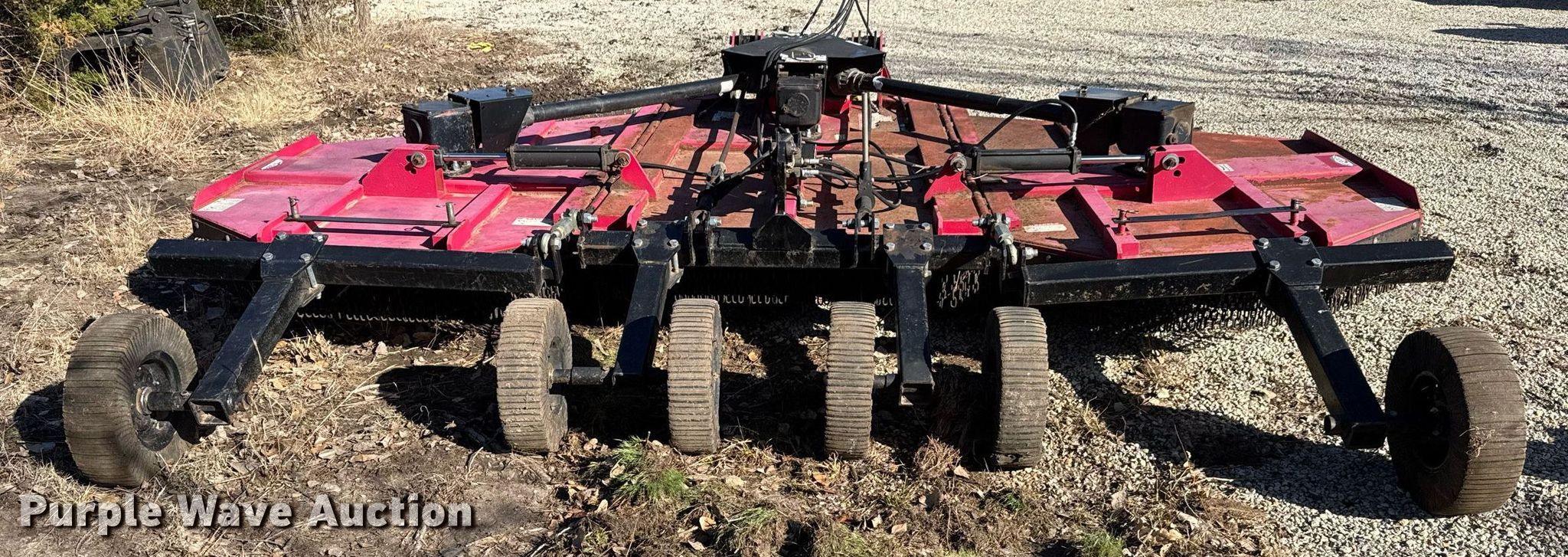 Mahindra 3615 Ol' Grizz batwing rotary mower. Serial: 205972. Features Width: 15', Hydraulic lift, Hydraulic fold, PTO: 540. Tires Solid. Derby, KS 67037