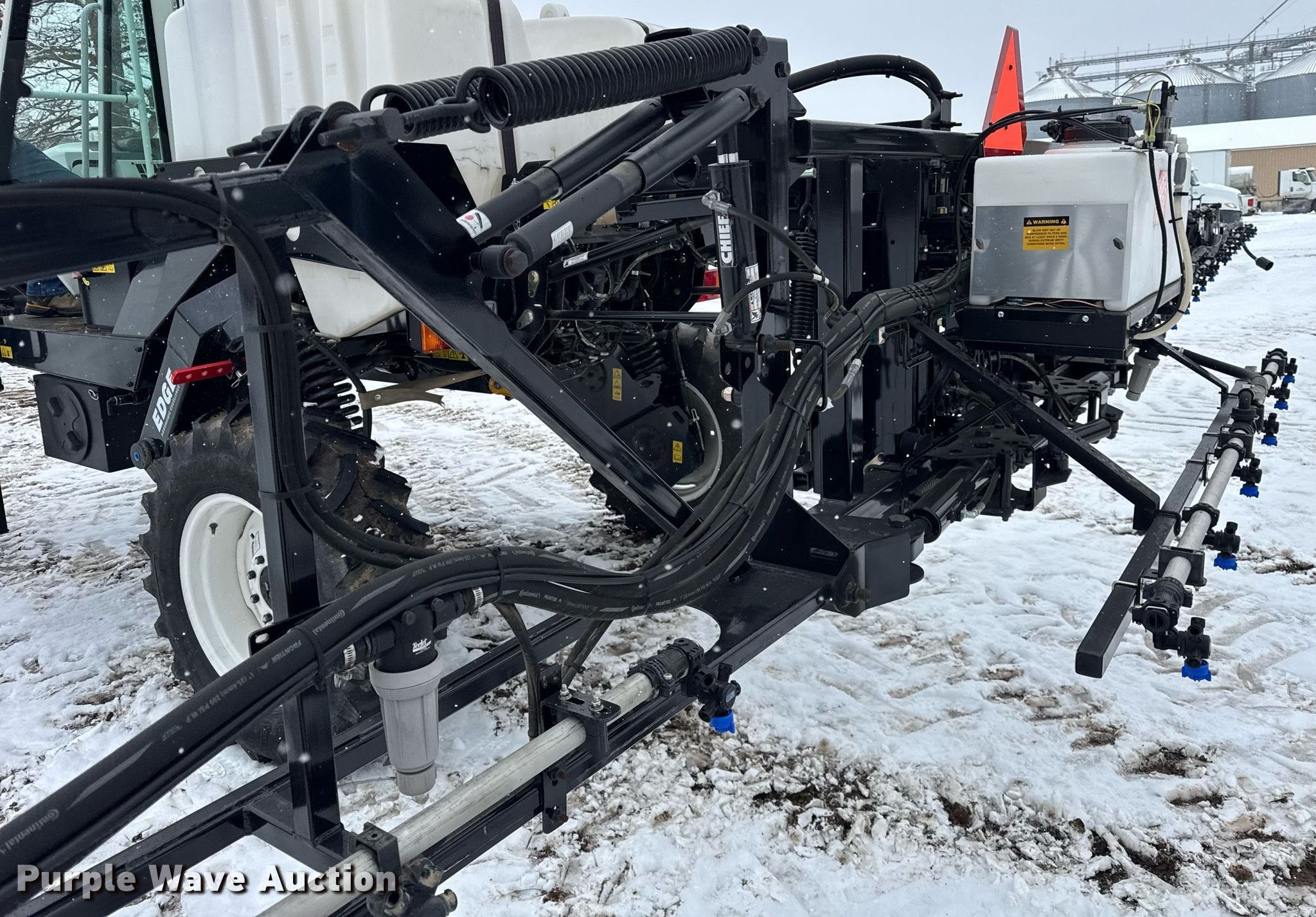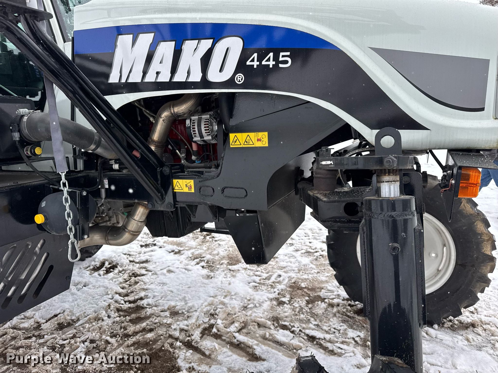 2022 GVM Mako 445 sprayer. Engine hours: 22 on meter, Serial: MK-224451006. Engine Cummins, Cylinders: 4, Fuel type: Diesel. Transmission Automatic. Chassis Hydraulic axle width adjust. Operators station AC, Heat, Rotary beacon. Features Solution tank Capacity: 425 gallons, Type: Poly, Foam marker, Boom Width: 60', Sections: 5, Hydraulic boom fold, Hydraulic height control, Nozzle Spacing: 20", Nozzle bodies: 5-way, Electronics Light bar Raven, GPS monitor Raven, GPS receiver Raven, Spray controls, Auto steer. Tires Size: 320/85R24, Row crop tires. Keystone Cooperative. Hamilton, MI 49419