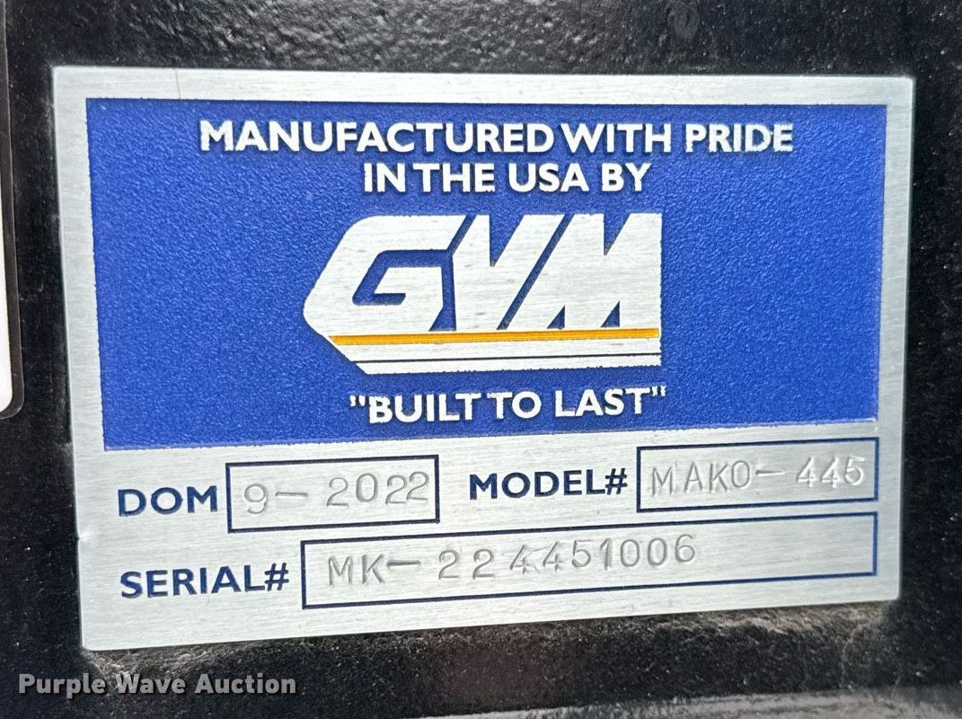 Purple Wave is selling a used Applicator Self Propelled in Michigan. This item is a 2022 GVM Mako 445 sprayer with the following: Engine hours: 22 on meter, Serial: MK-224451006
