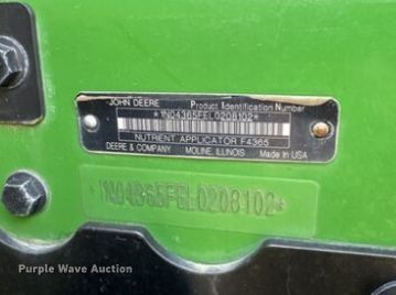 Purple Wave is selling a used Applicator Self Propelled in Michigan. This item is a 2018 John Deere F4365 applicator with the following: Engine hours: 1,961 on meter, Serial: 1N04365FVJ0188148