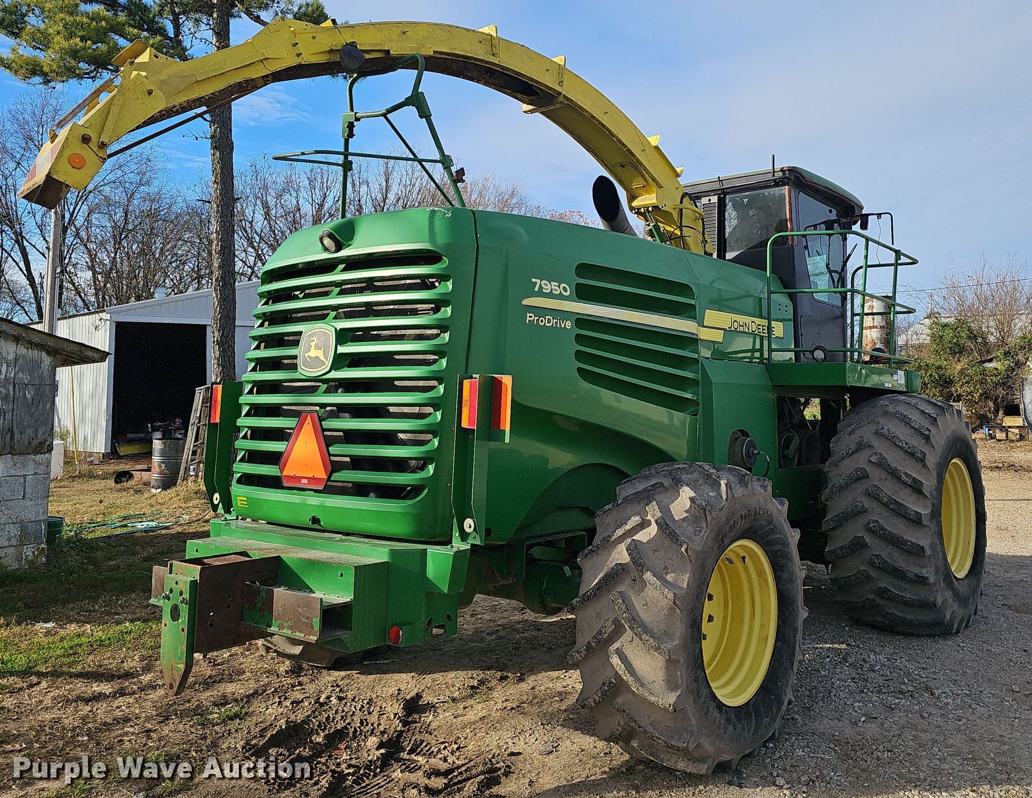 Purple Wave is selling a used Forage Harvester in Missouri. This item is a 2011 John Deere 7950 forage harvester with the following: Engine hours: 3,830 on meter, Cutter hours: 2,395 on meter, Serial: 1Z07950YAB0511319