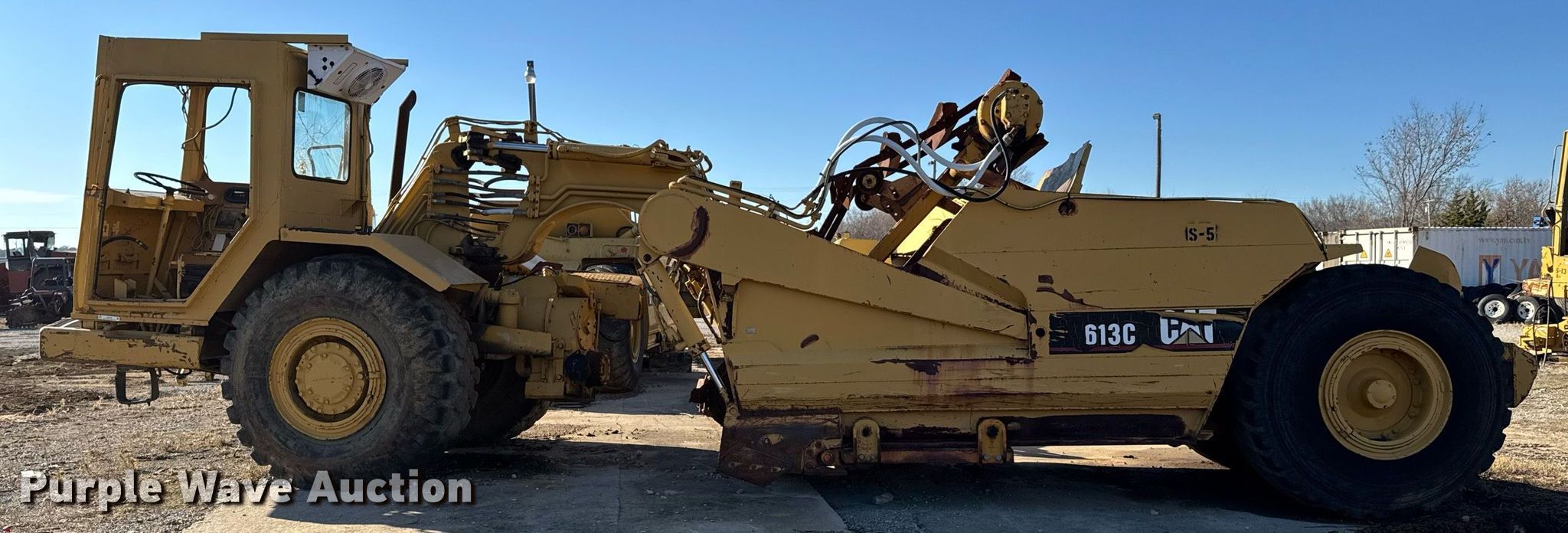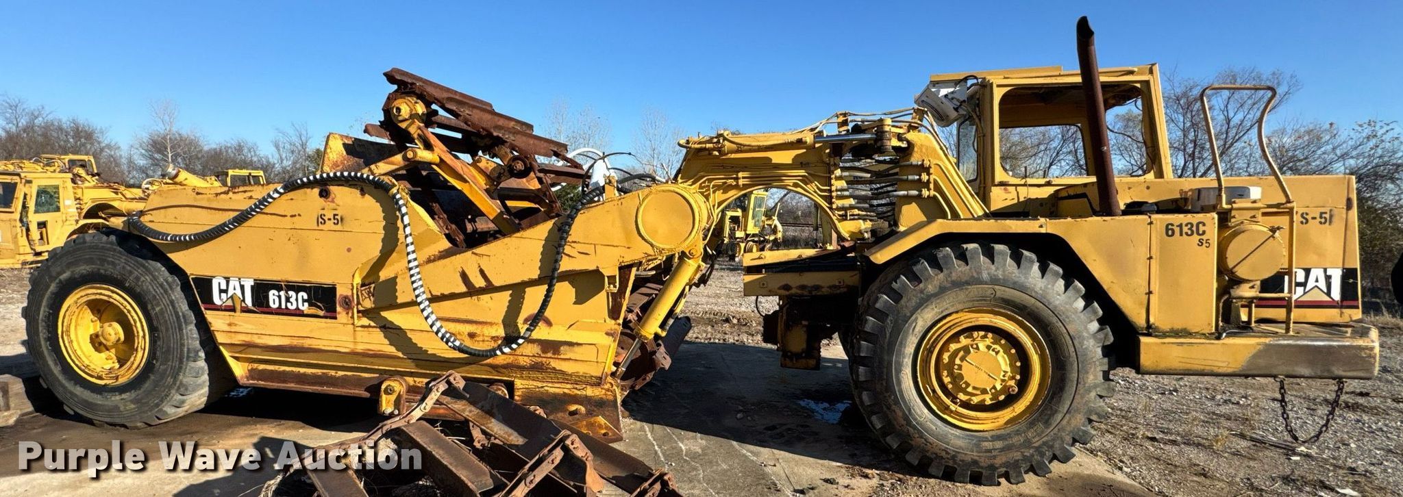 Purple Wave is selling a used Elevating Scraper in Oklahoma. This item is a 1986 Caterpillar 613C elevating scraper with the following: Hours: Unknown, Serial: 92X00914