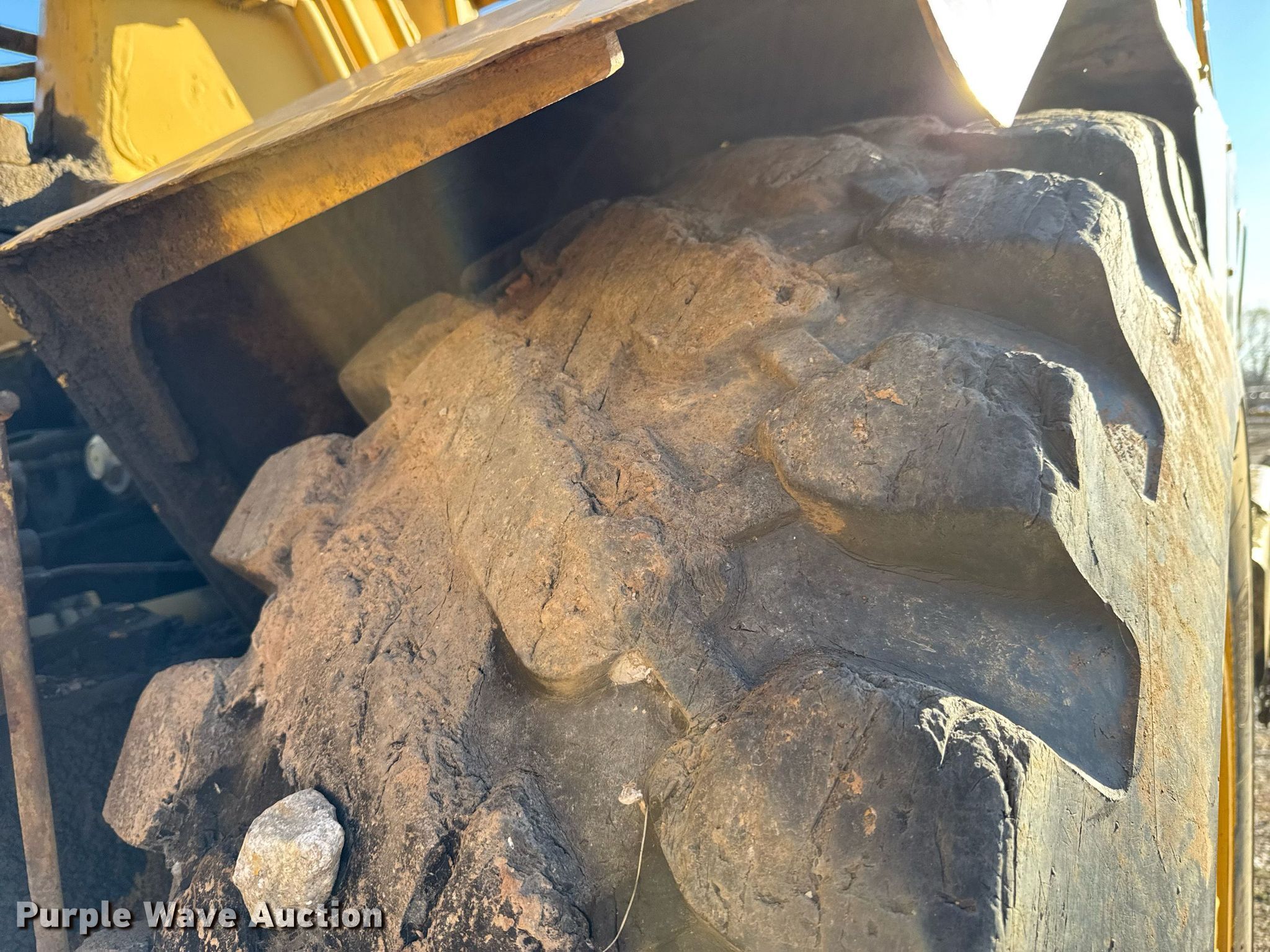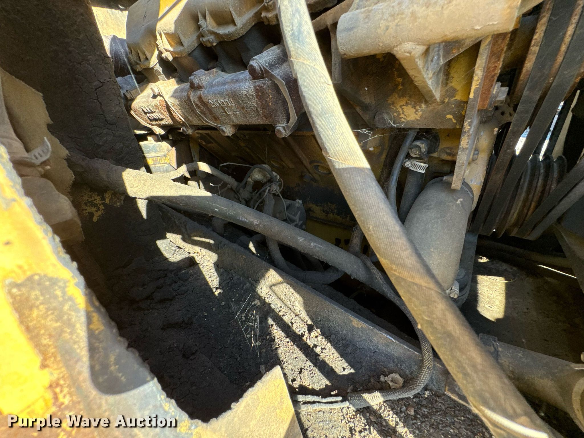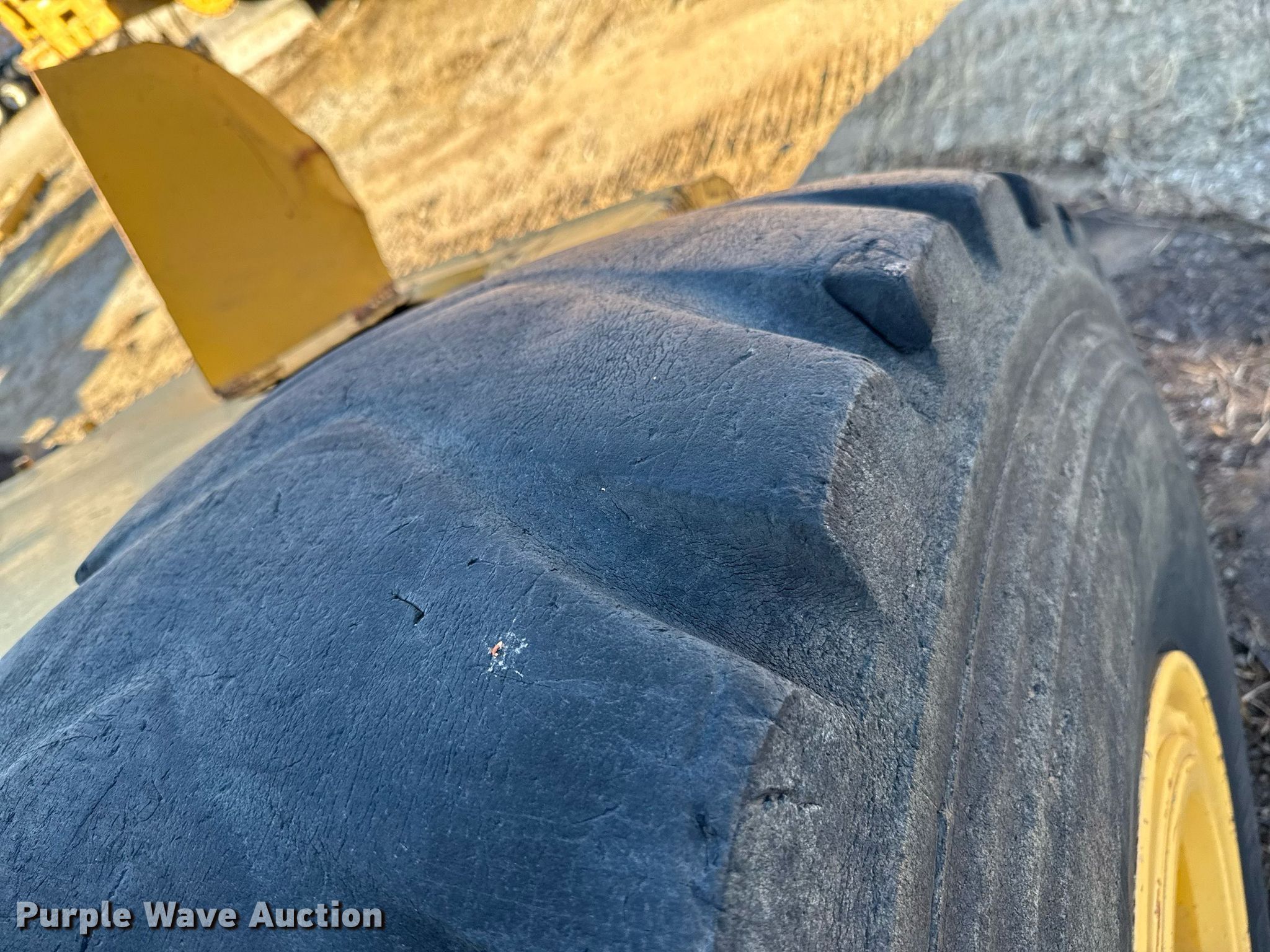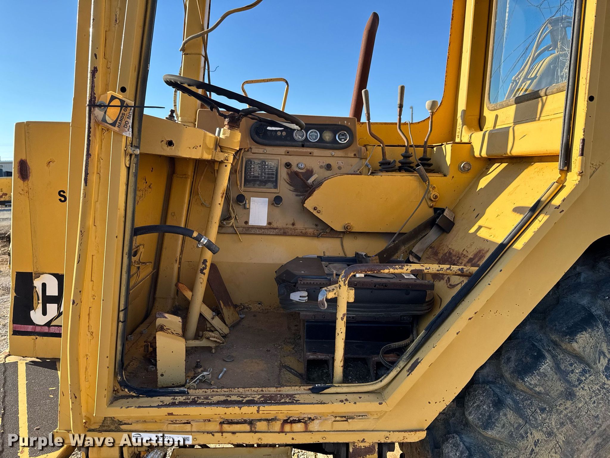 1986 Caterpillar 613C elevating scraper. Hours: Unknown, Serial: 92X00914. Engine Caterpillar 3208, Serial: 79V14162, Cylinders: 6, Fuel type: Diesel. Transmission Powershift, 8F - 1R. Chassis Brakes: Air. Features Bowl capacity: 11 cu.yd., Elevator reverse, Hydraulic lift, Scraper controls: Lever controls No. of controls: 3, Rear push block, Hitch: Rear. Tires Size: 23.5-25. Notes Parts only, Parts missing, Glass missing, Glass cracked, Oil leak, Non-operational unit. Ira Green Construction - Open Inspection December 18, 2024. Claremore, OK 74017
