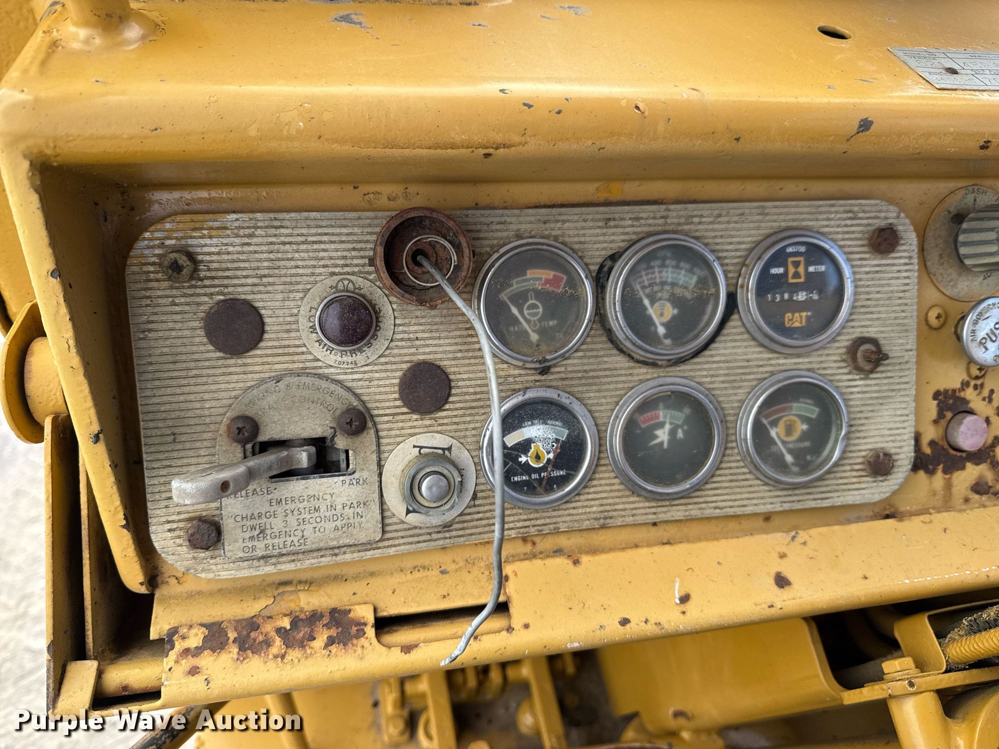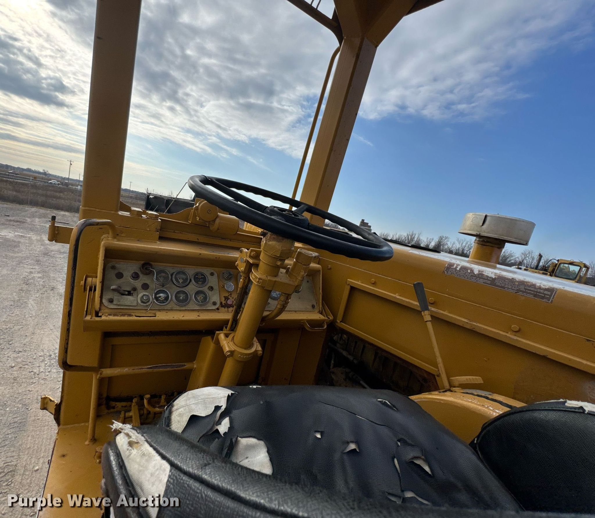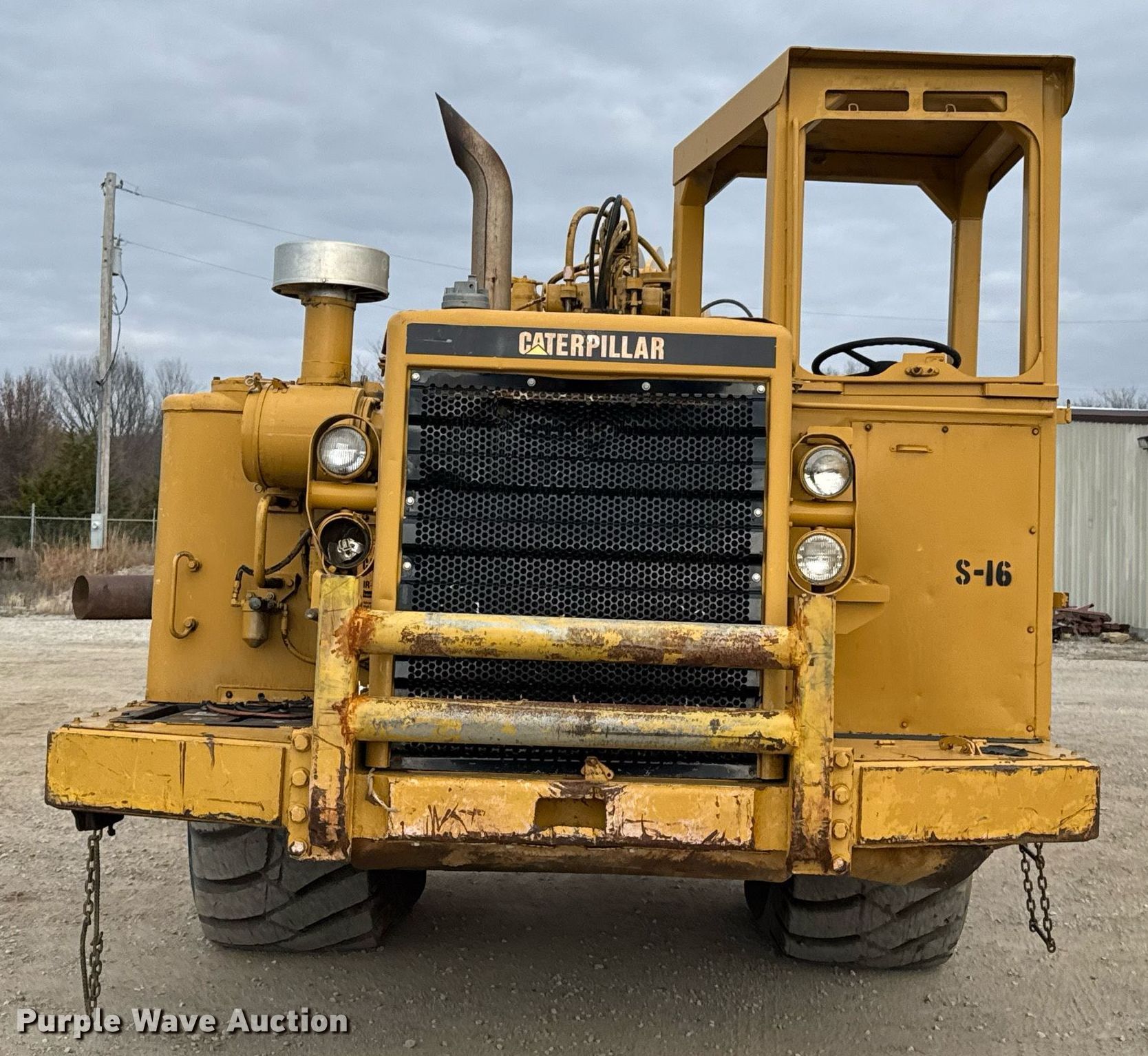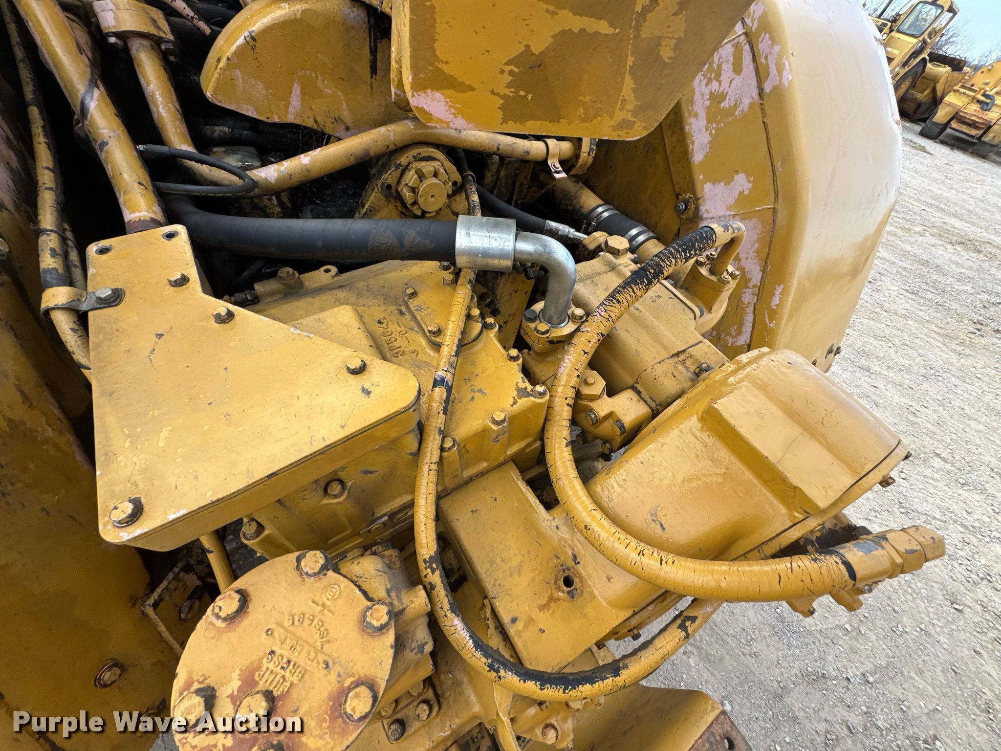 1974 Caterpillar 621B conventional scraper. Hours: 1,385 on meter, Serial: 45P880. Engine Caterpillar 3406PC, Serial: 70V1106, Cylinders: 6, Fuel type: Diesel. Transmission Powershift, 8F - 1R. Chassis Brakes: Air. Features Bowl capacity: 14 cu.yd., Hydraulic lift, Scraper controls: Lever controls No. of controls: 3, Rear push block. Tires Size: 29.5-29. Notes Glass missing, Door missing. Ira Green Construction - Open Inspection December 18, 2024. Claremore, OK 74017