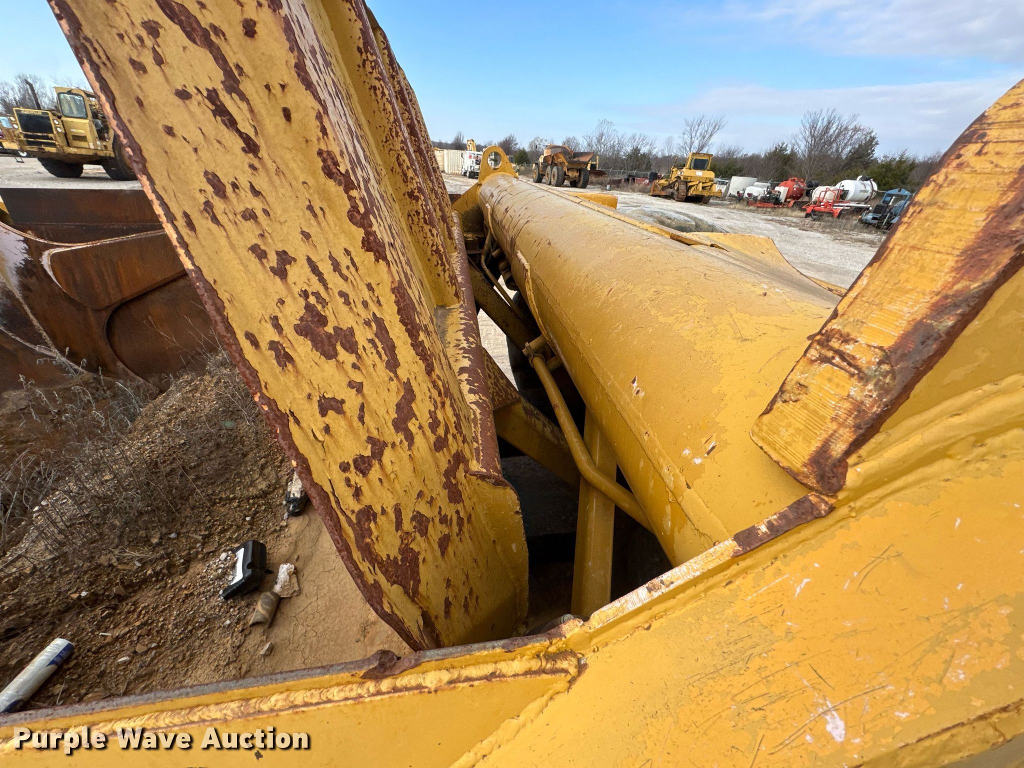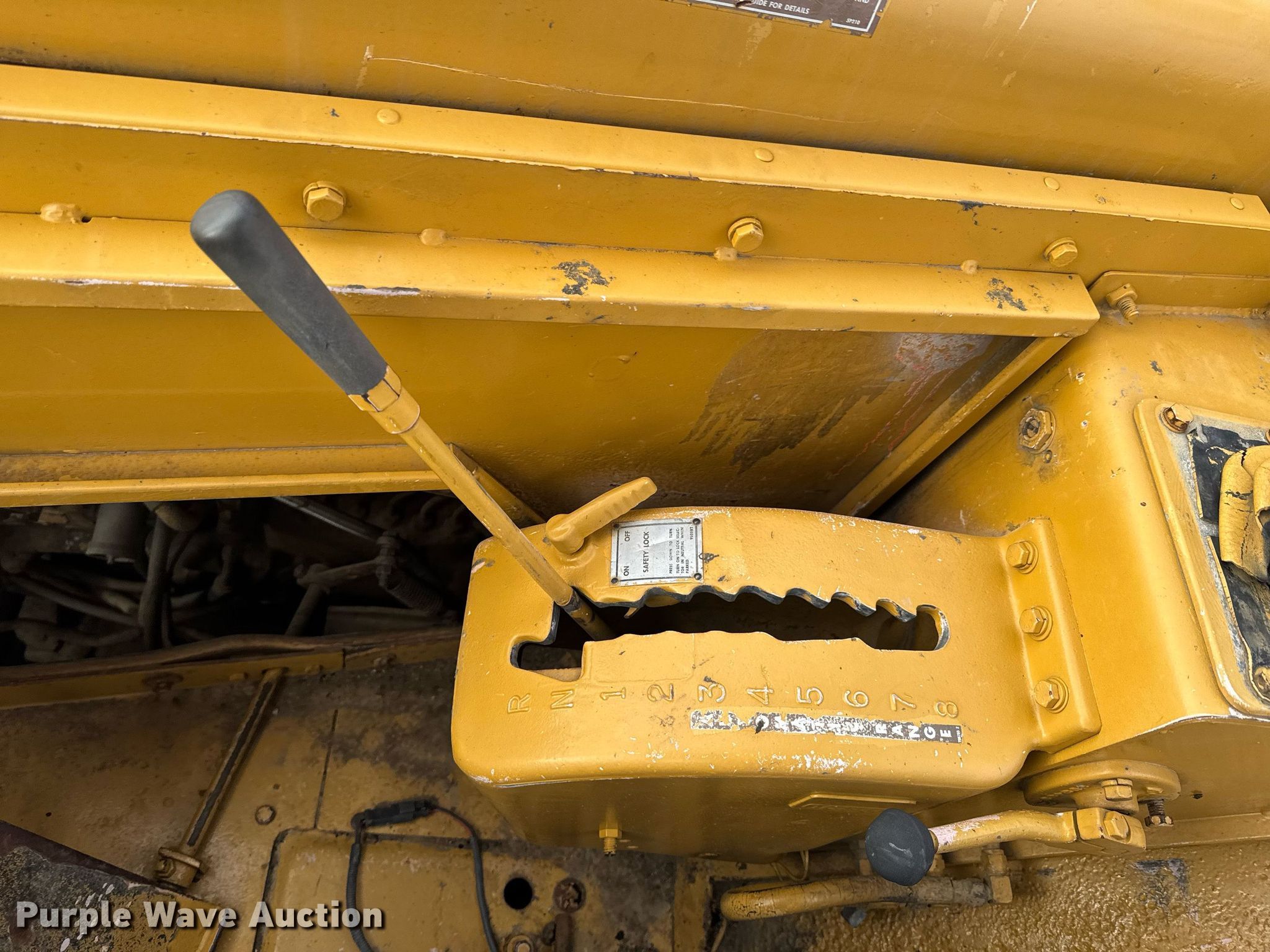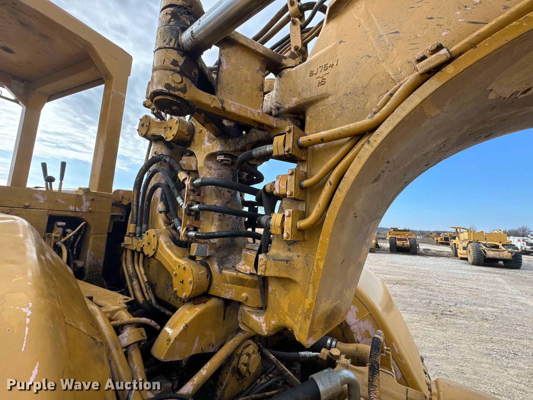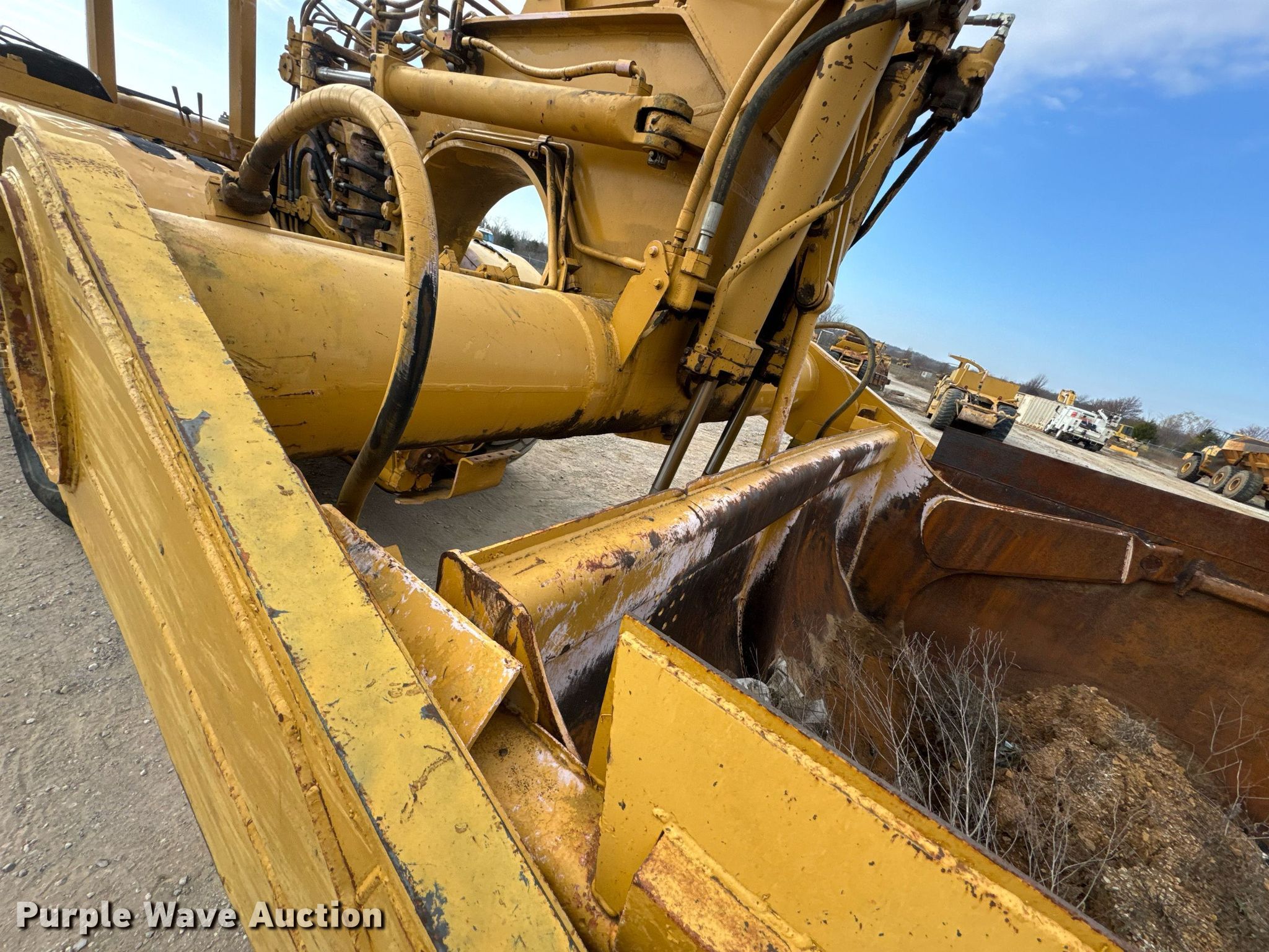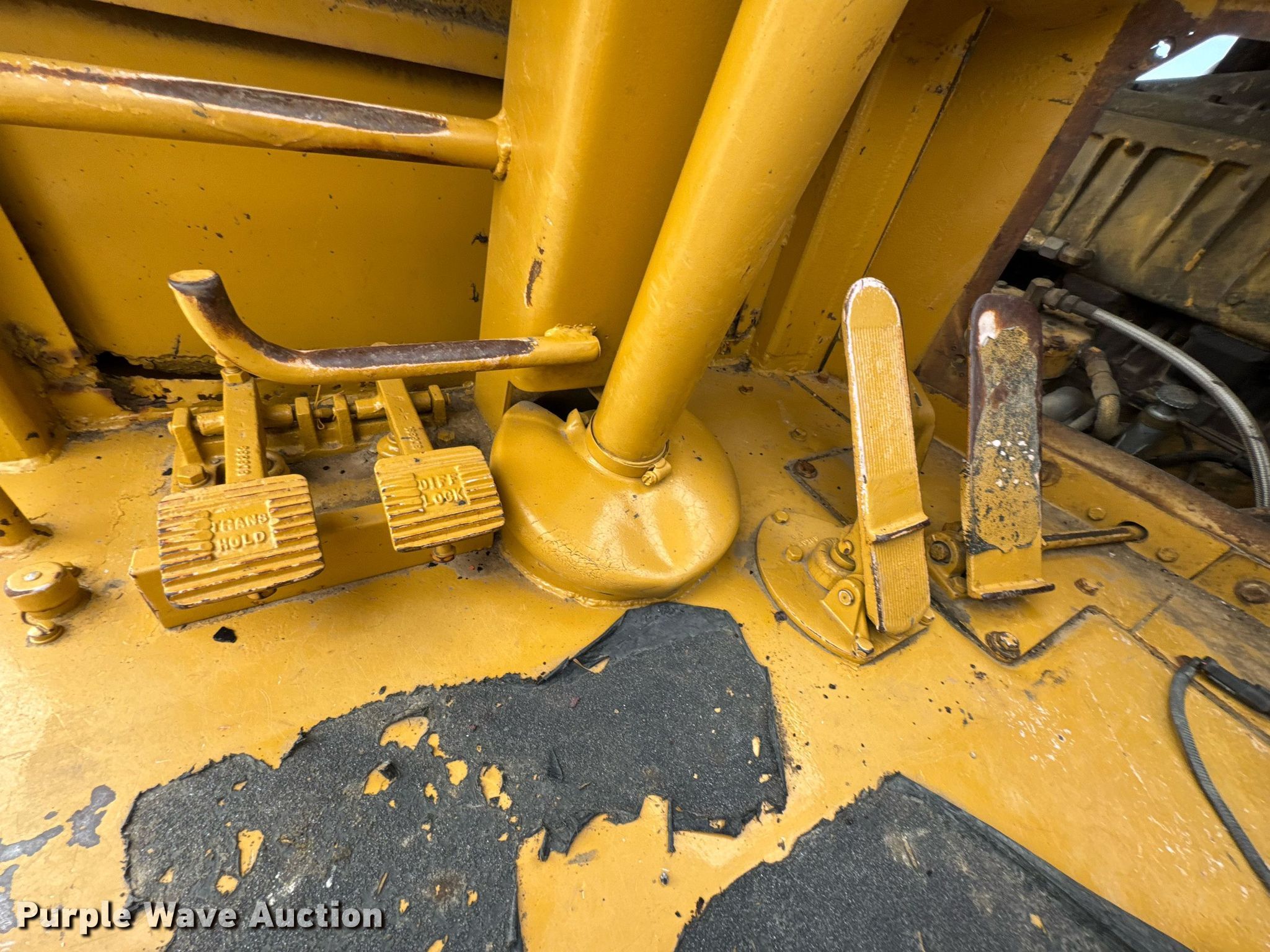 1974 Caterpillar 621B conventional scraper. Hours: 1,385 on meter, Serial: 45P880. Engine Caterpillar 3406PC, Serial: 70V1106, Cylinders: 6, Fuel type: Diesel. Transmission Powershift, 8F - 1R. Chassis Brakes: Air. Features Bowl capacity: 14 cu.yd., Hydraulic lift, Scraper controls: Lever controls No. of controls: 3, Rear push block. Tires Size: 29.5-29. Notes Glass missing, Door missing. Ira Green Construction - Open Inspection December 18, 2024. Claremore, OK 74017