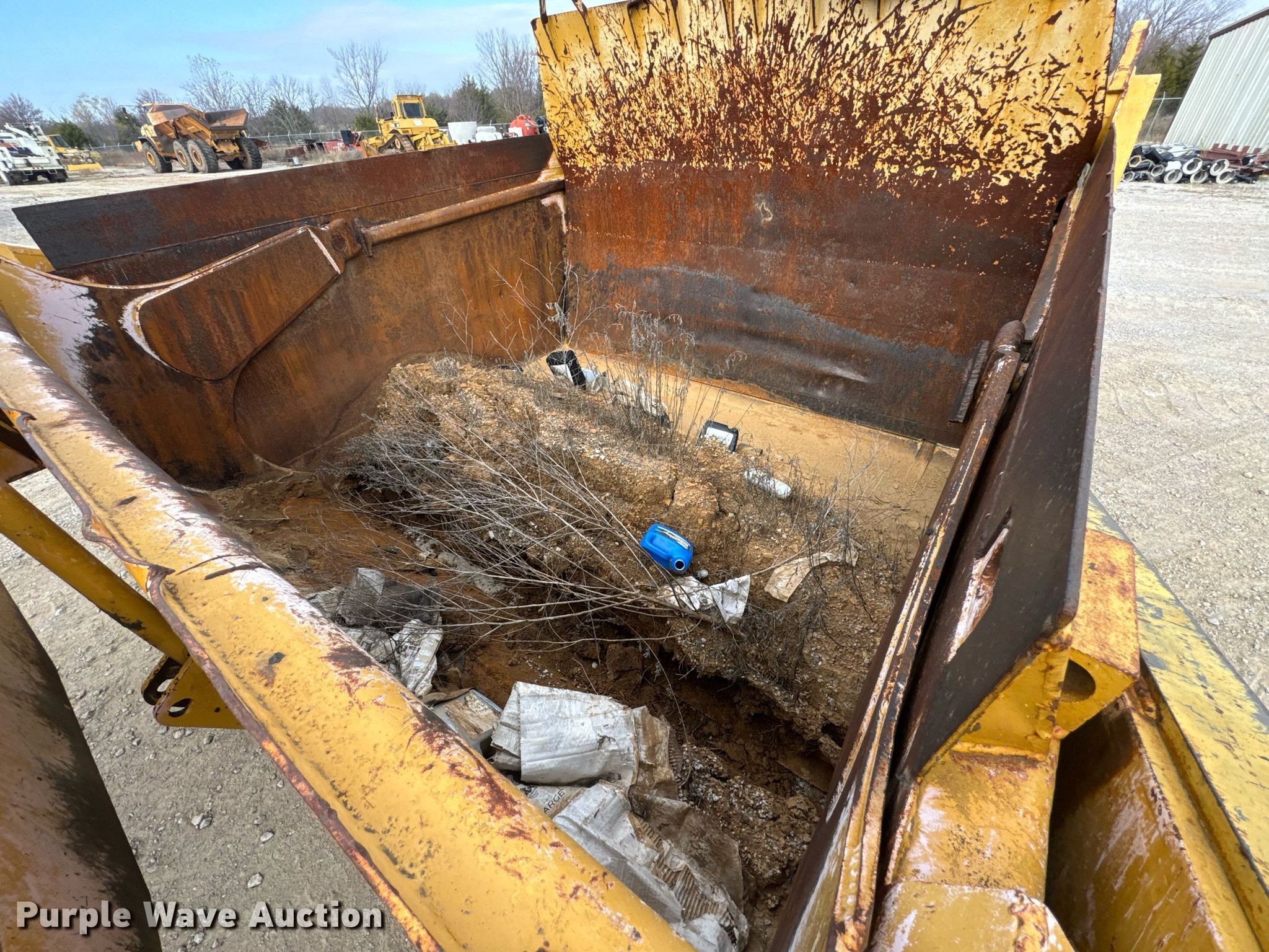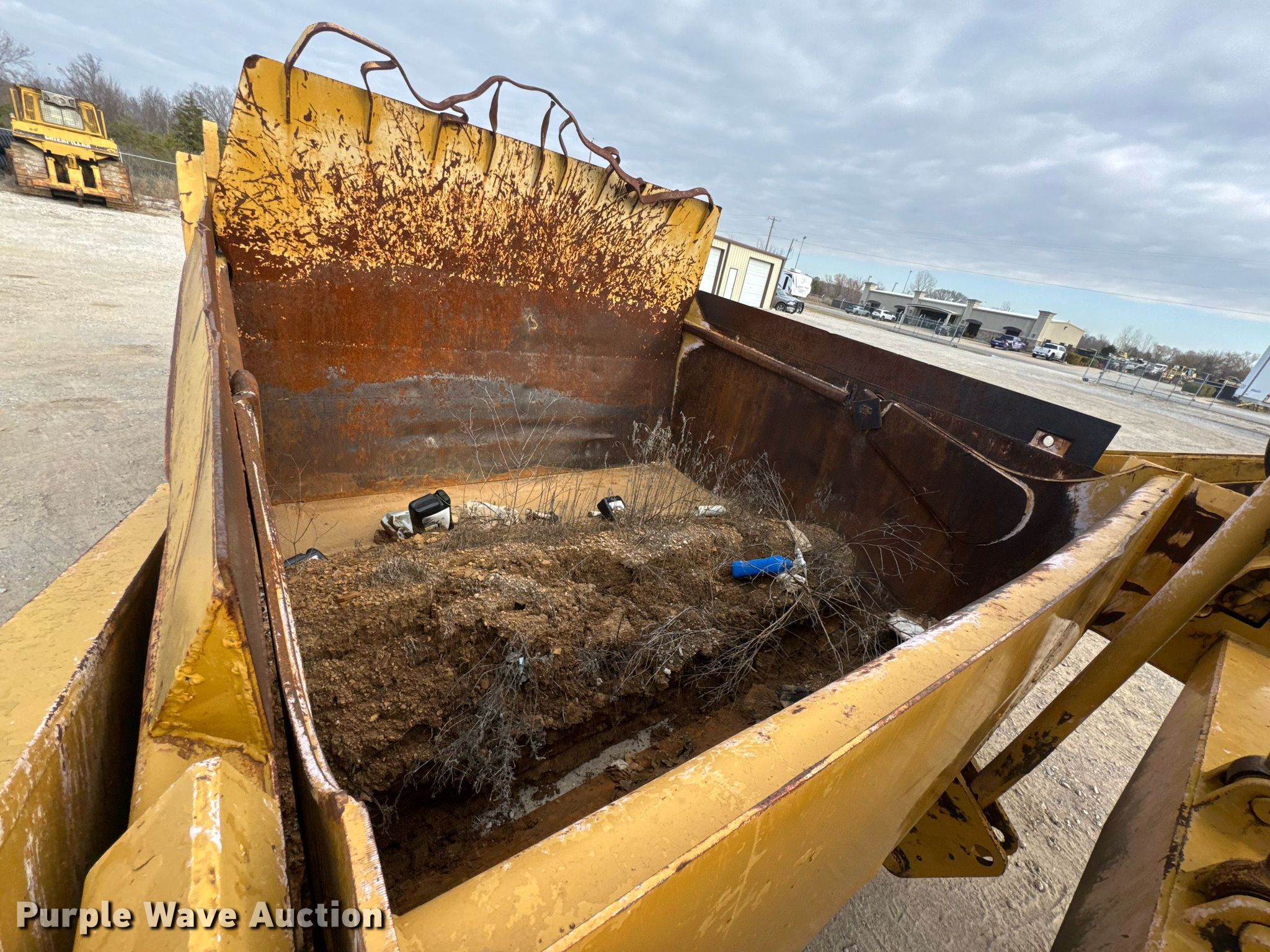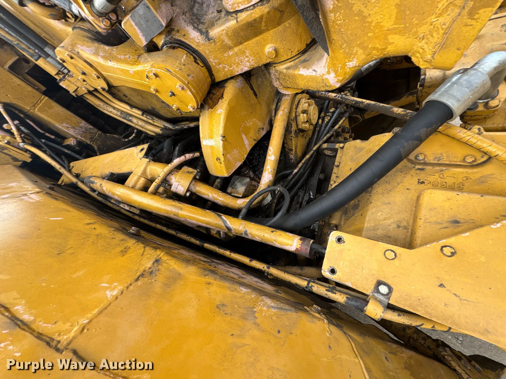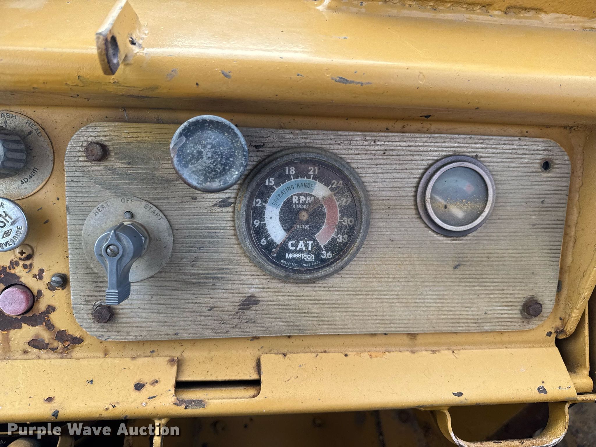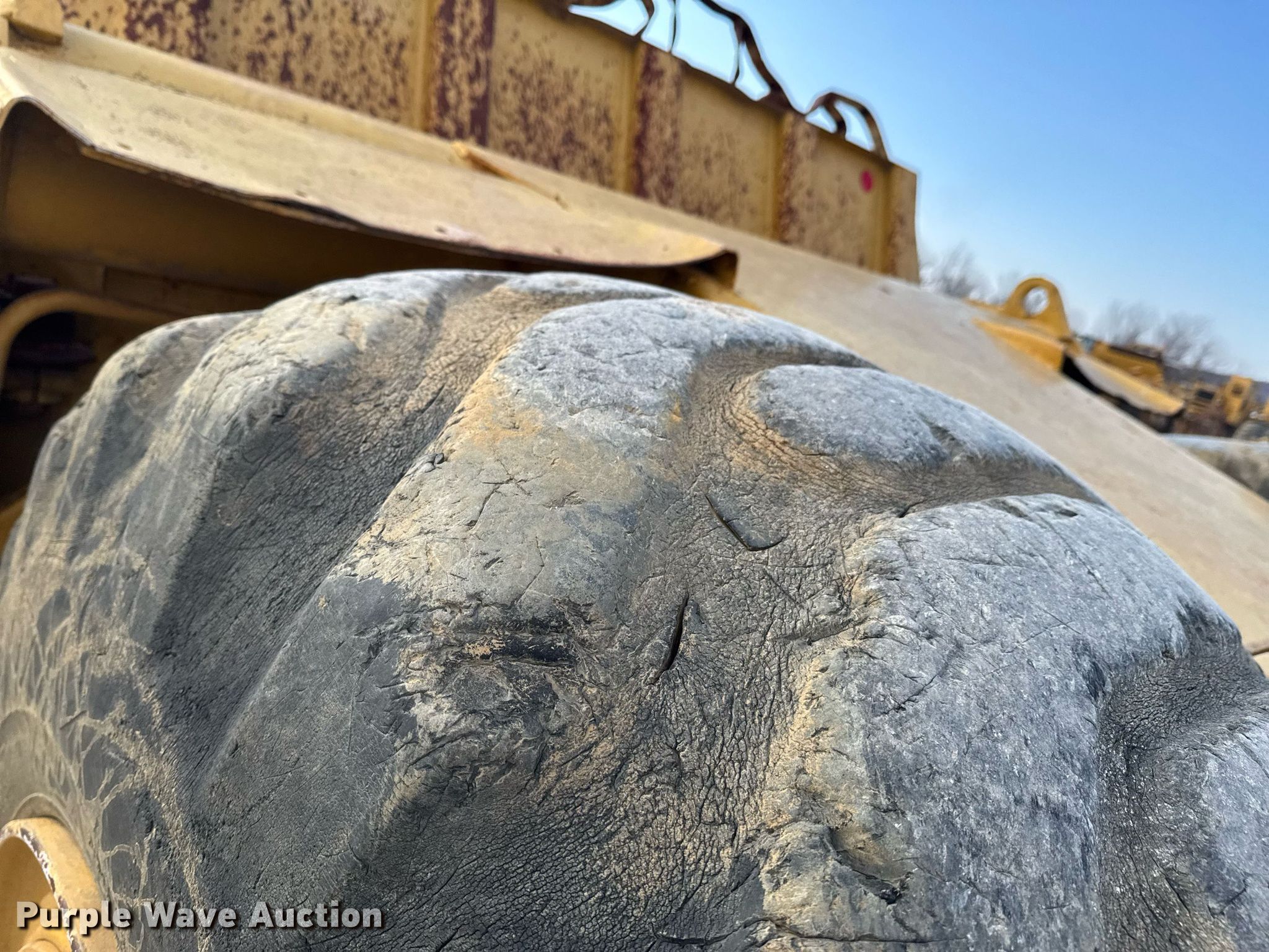 1974 Caterpillar 621B conventional scraper. Hours: 1,385 on meter, Serial: 45P880. Engine Caterpillar 3406PC, Serial: 70V1106, Cylinders: 6, Fuel type: Diesel. Transmission Powershift, 8F - 1R. Chassis Brakes: Air. Features Bowl capacity: 14 cu.yd., Hydraulic lift, Scraper controls: Lever controls No. of controls: 3, Rear push block. Tires Size: 29.5-29. Notes Glass missing, Door missing. Ira Green Construction - Open Inspection December 18, 2024. Claremore, OK 74017
