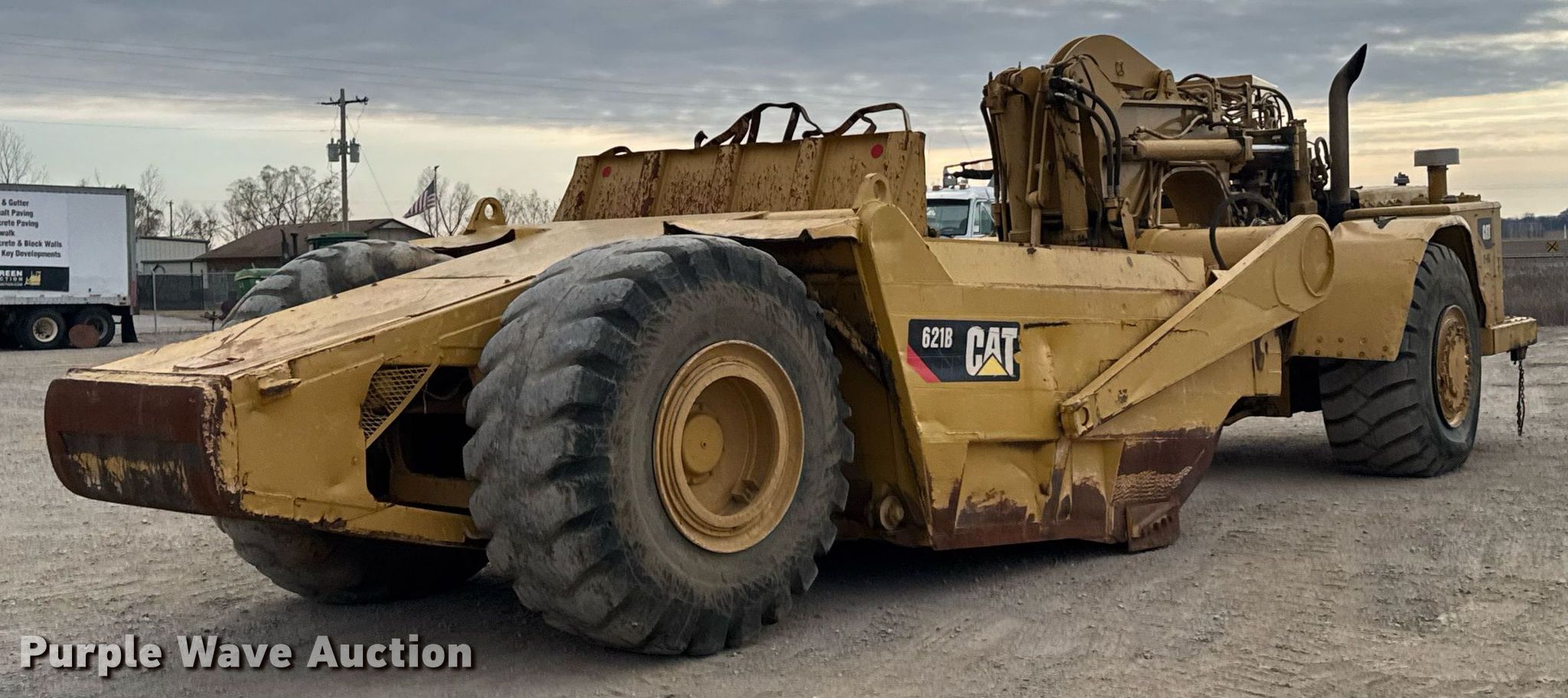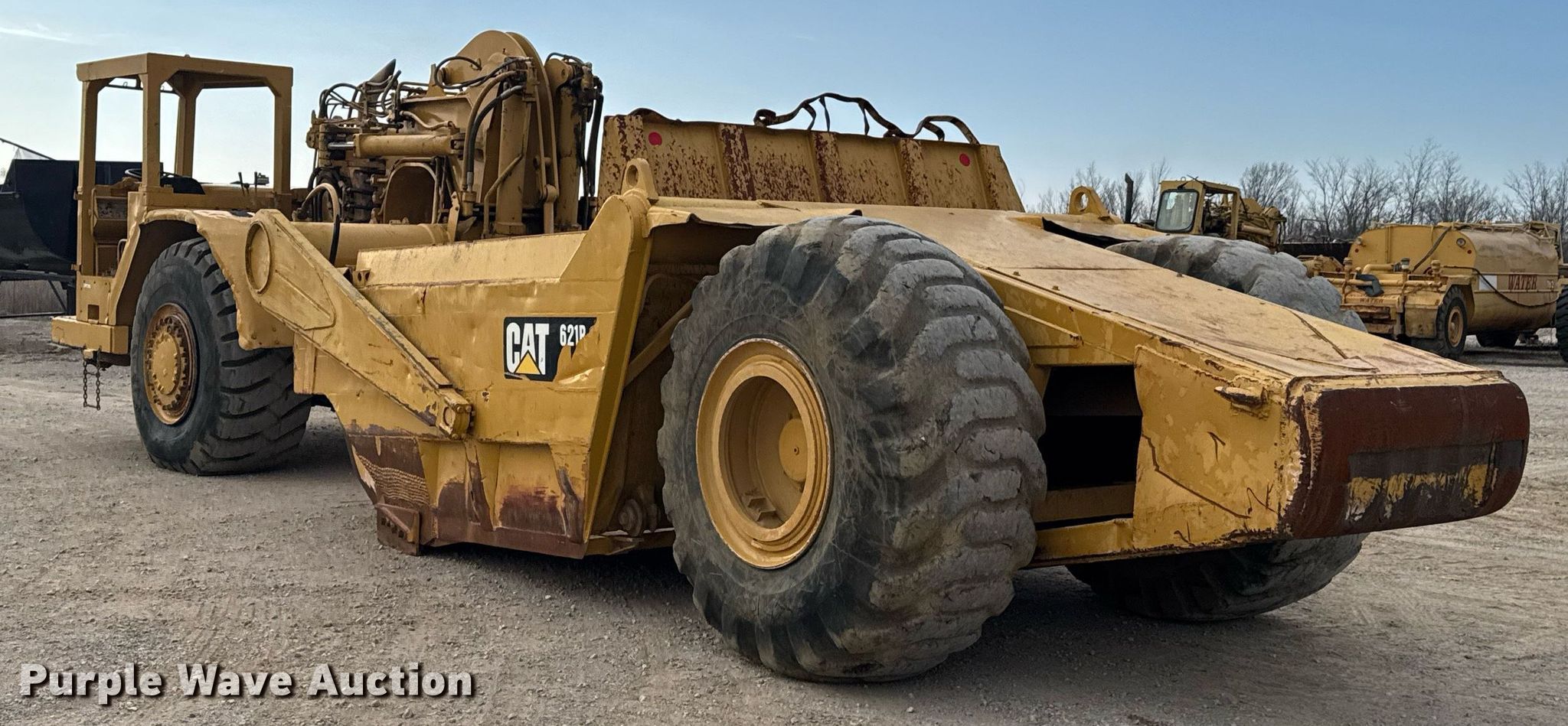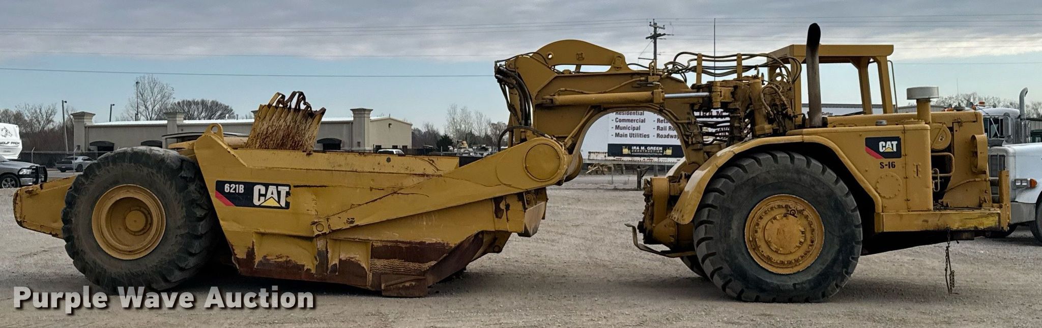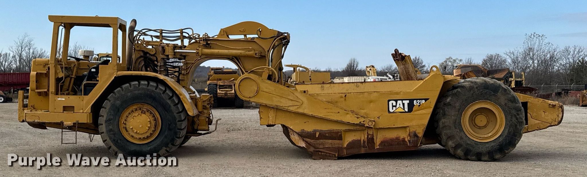Purple Wave is selling a used Conventional Scraper in Oklahoma. This item is a 1974 Caterpillar 621B conventional scraper with the following: Hours: 1,385 on meter, Serial: 45P880