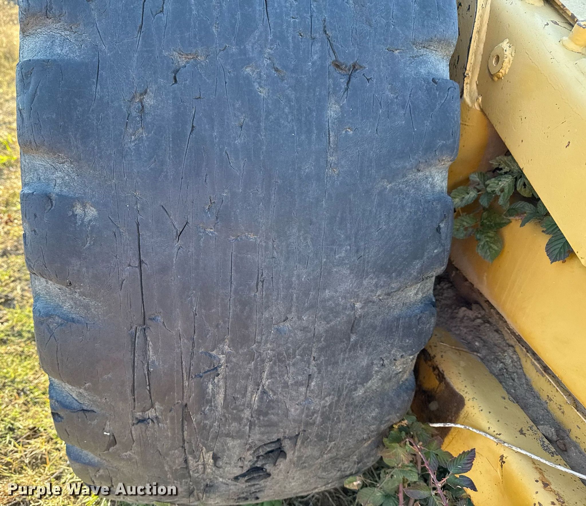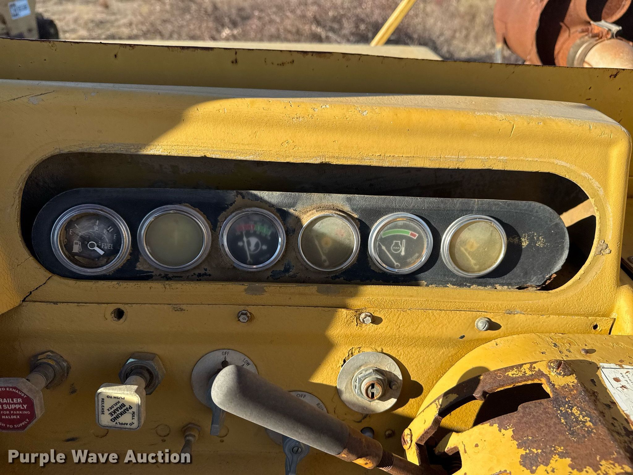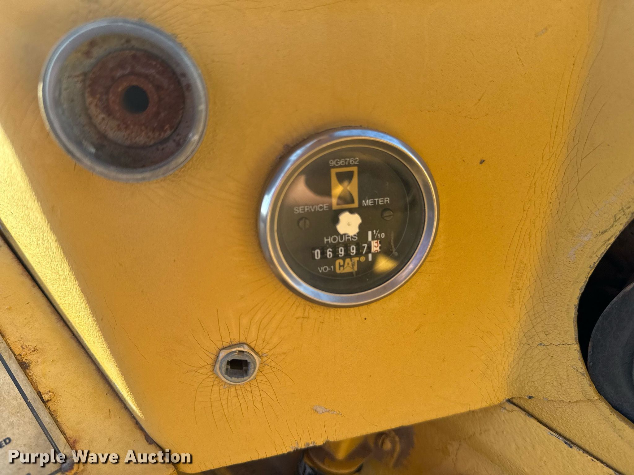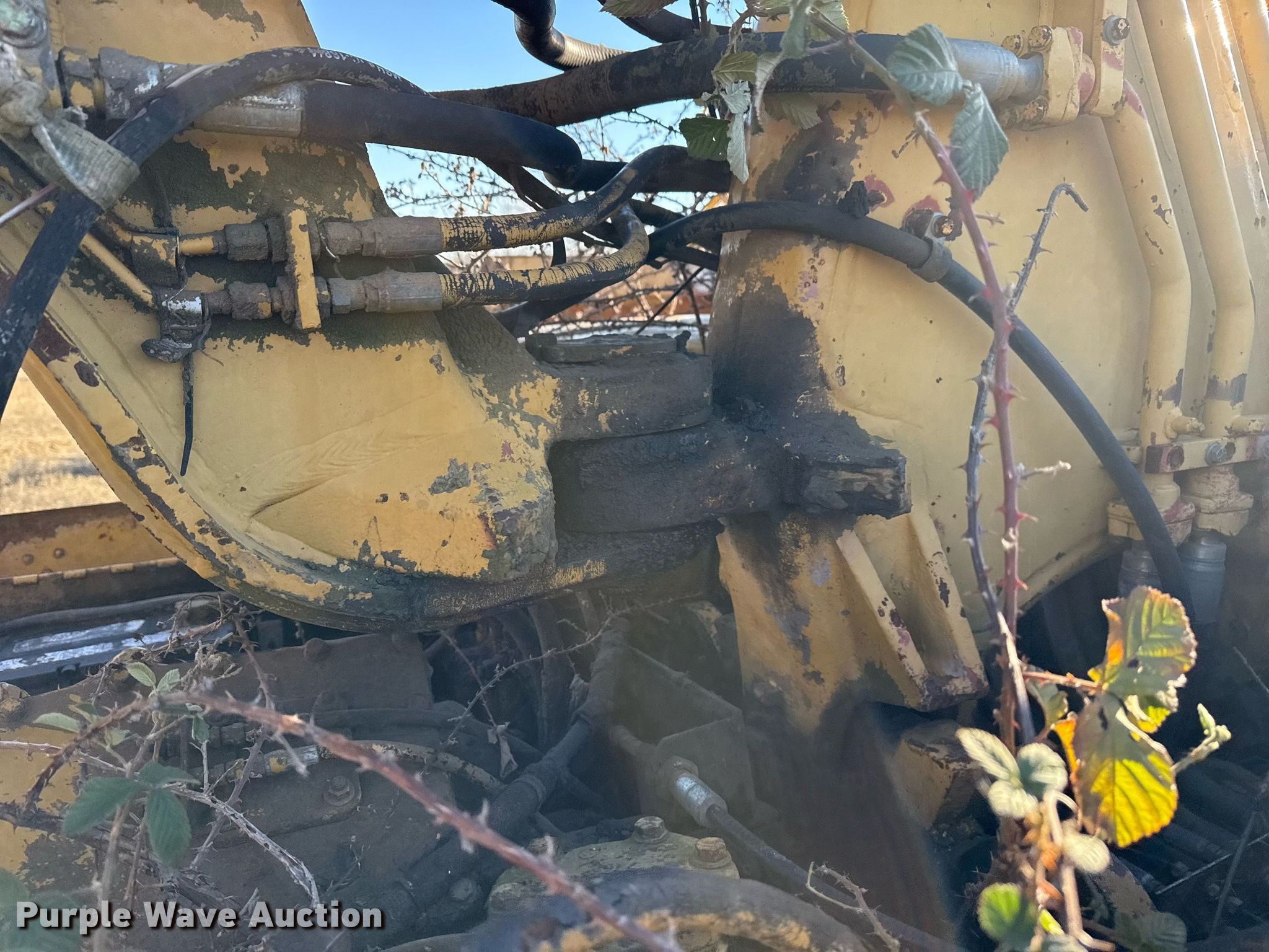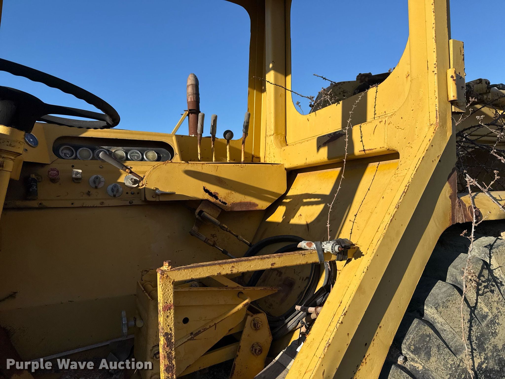1979 Caterpillar 613B elevating scraper. Hours: 6,998 on meter, Serial: 38W5896. Engine Caterpillar 3208, Serial: 79V6216, Cylinders: 6, Fuel type: Diesel. Transmission Powershift, 4F - 2R. Chassis Brakes: Air. Features Elevator reverse, Hydraulic lift, Scraper controls: Lever controls No. of controls: 4, Rear push block, Hitch: Rear. Tires Size: 23.5-25. Notes Glass missing, Door missing, Possible rodent damage, Non-operational unit. Ira Green Construction - Open Inspection December 18, 2024. Claremore, OK 74017