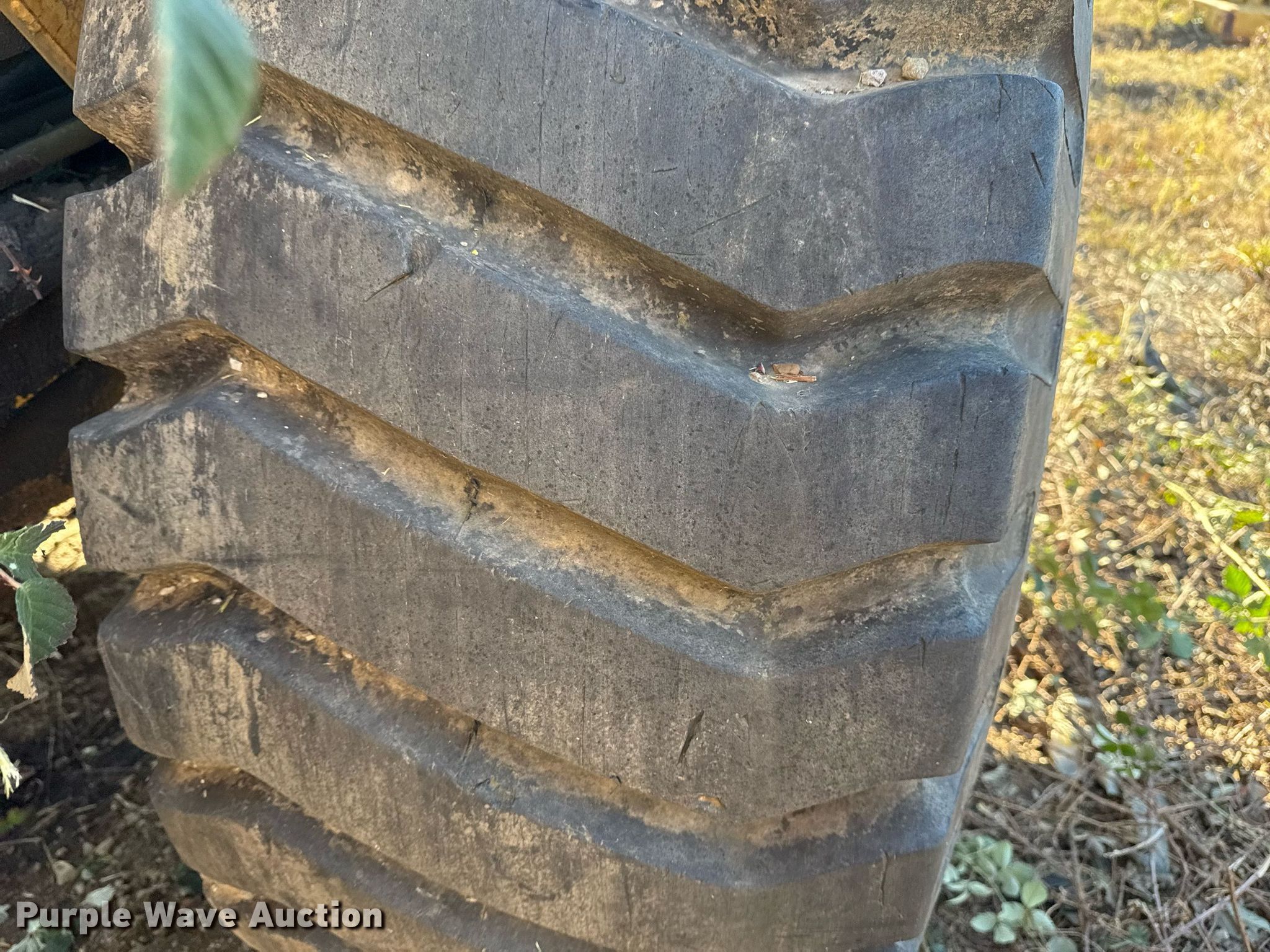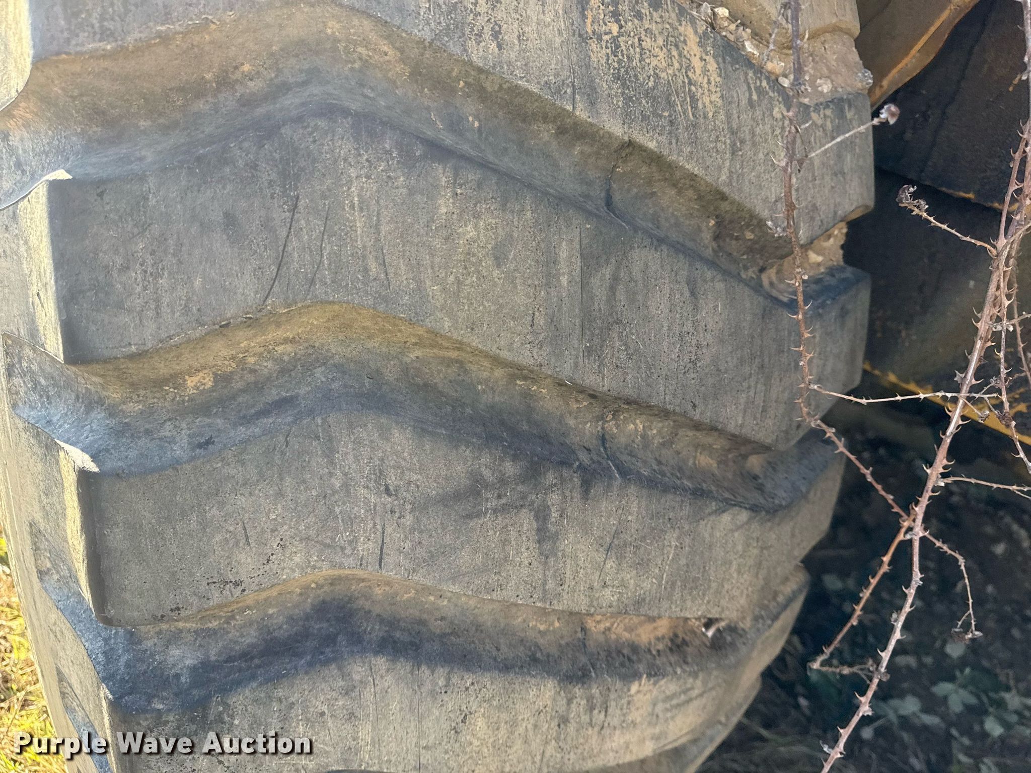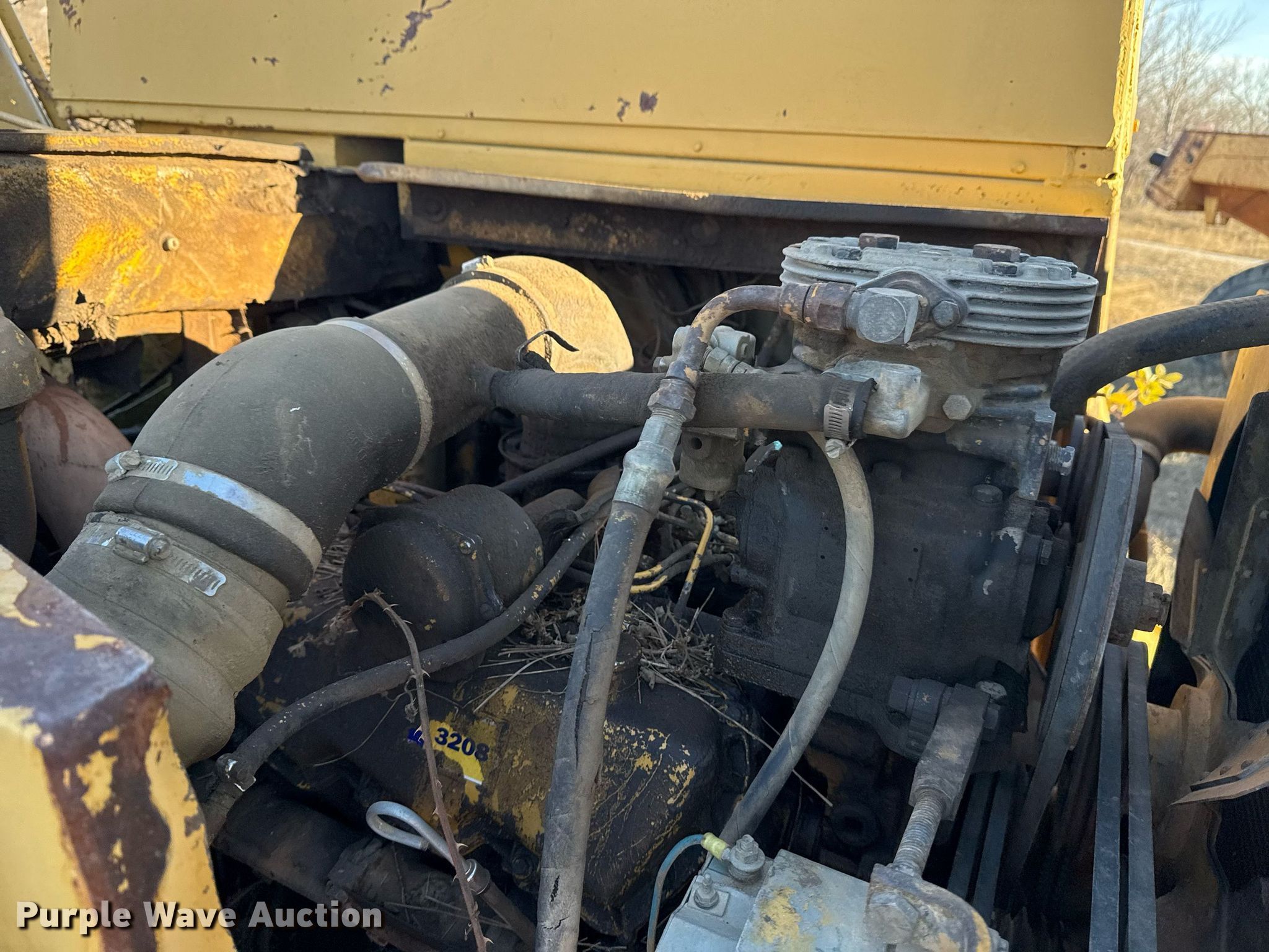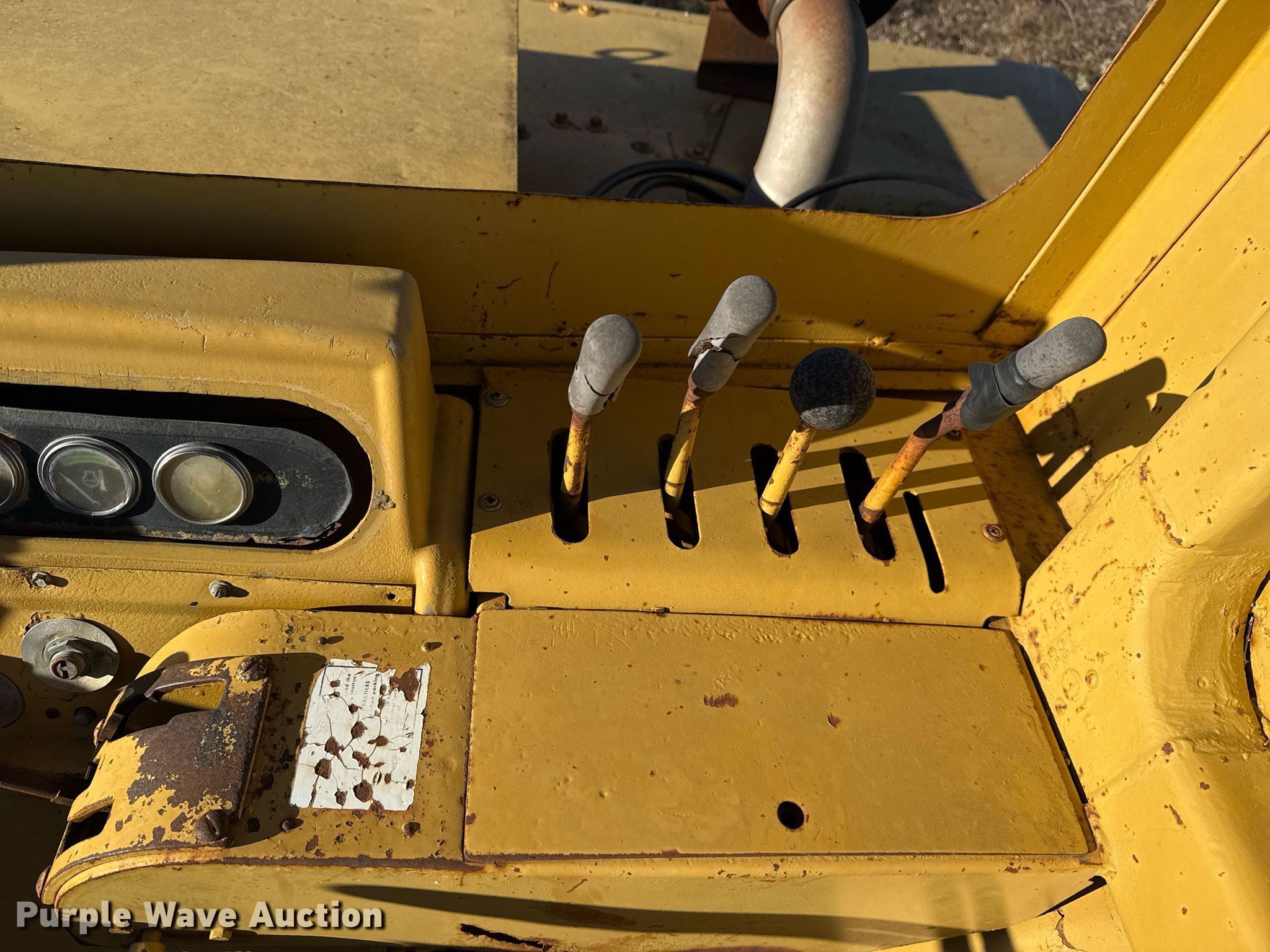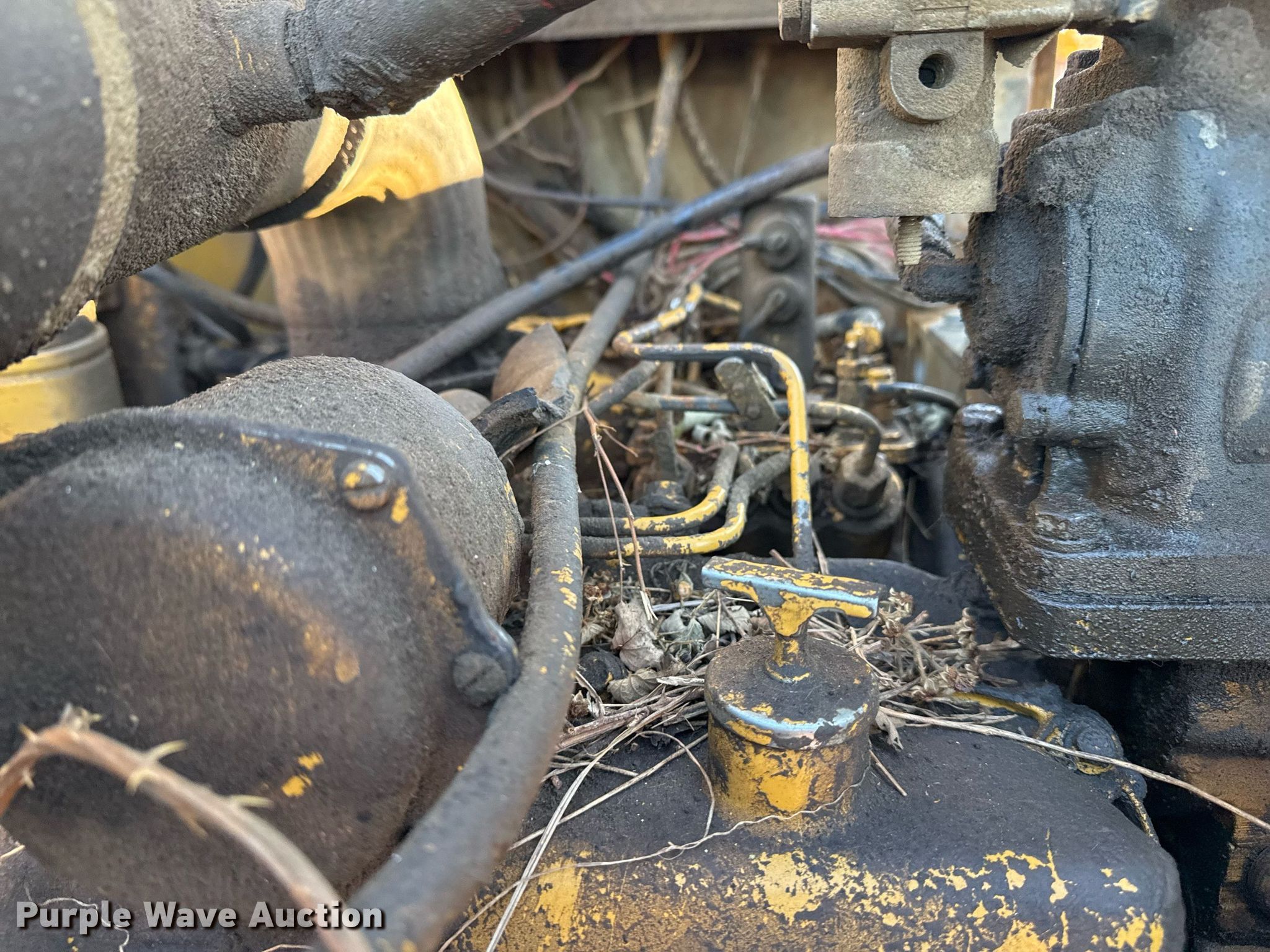1979 Caterpillar 613B elevating scraper. Hours: 6,998 on meter, Serial: 38W5896. Engine Caterpillar 3208, Serial: 79V6216, Cylinders: 6, Fuel type: Diesel. Transmission Powershift, 4F - 2R. Chassis Brakes: Air. Features Elevator reverse, Hydraulic lift, Scraper controls: Lever controls No. of controls: 4, Rear push block, Hitch: Rear. Tires Size: 23.5-25. Notes Glass missing, Door missing, Possible rodent damage, Non-operational unit. Ira Green Construction - Open Inspection December 18, 2024. Claremore, OK 74017