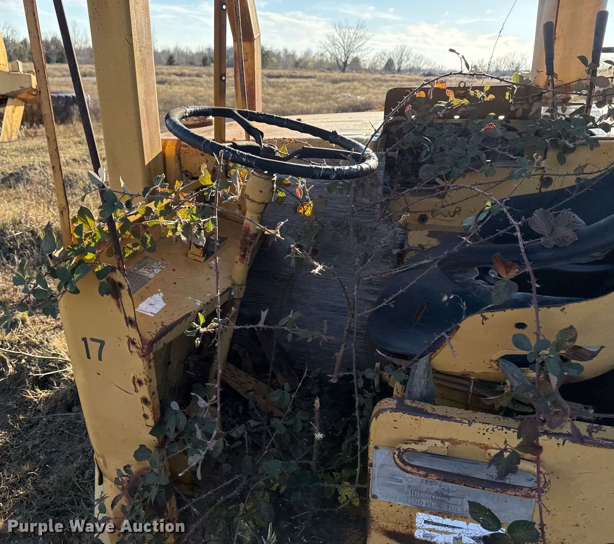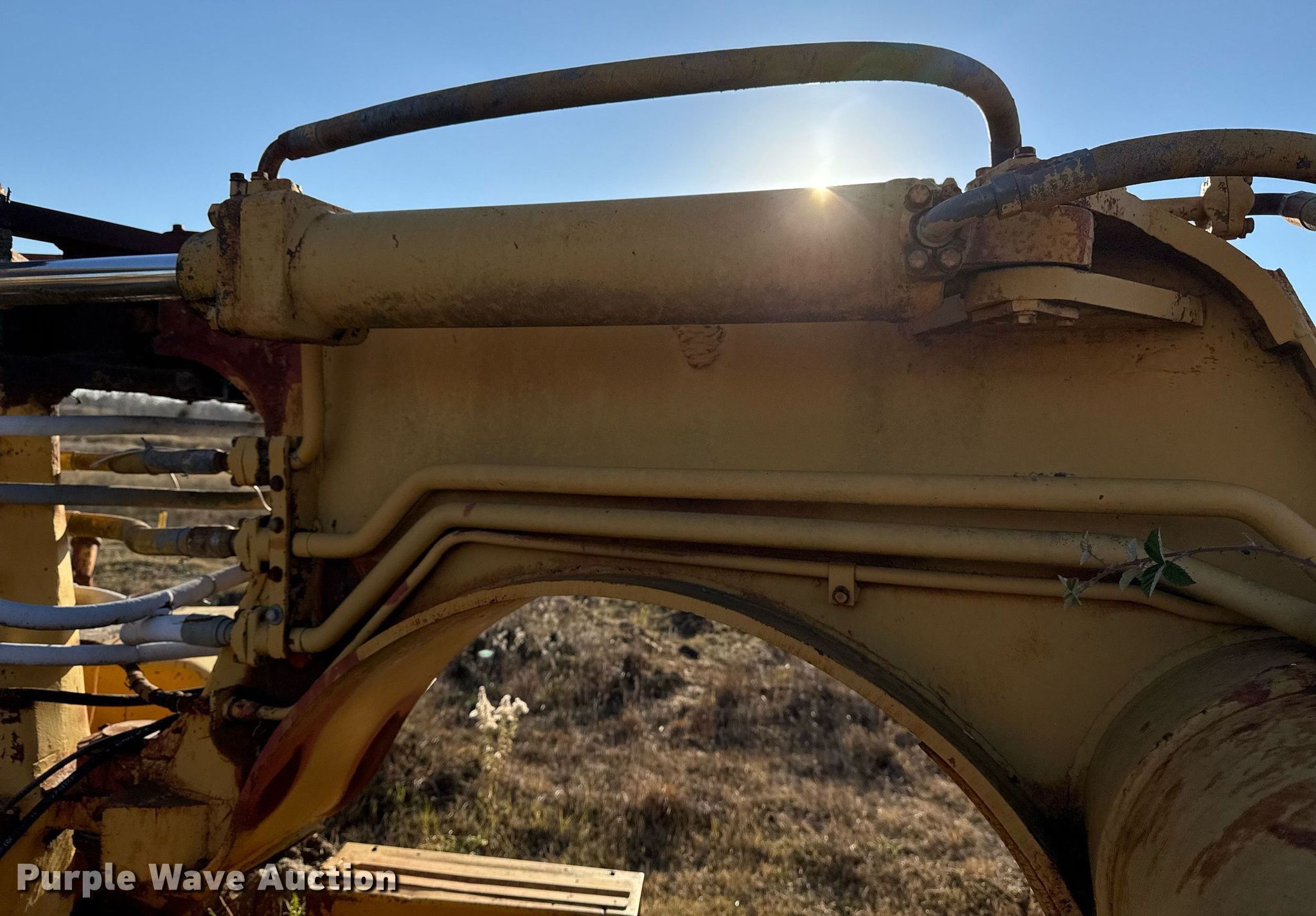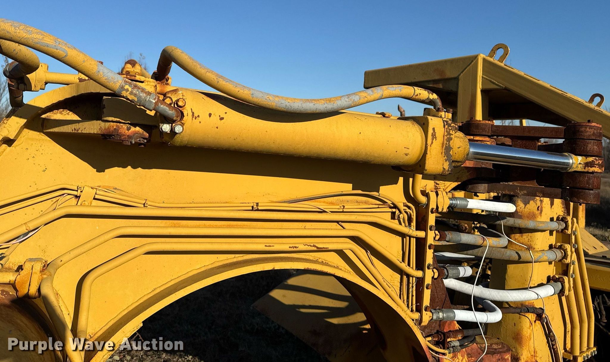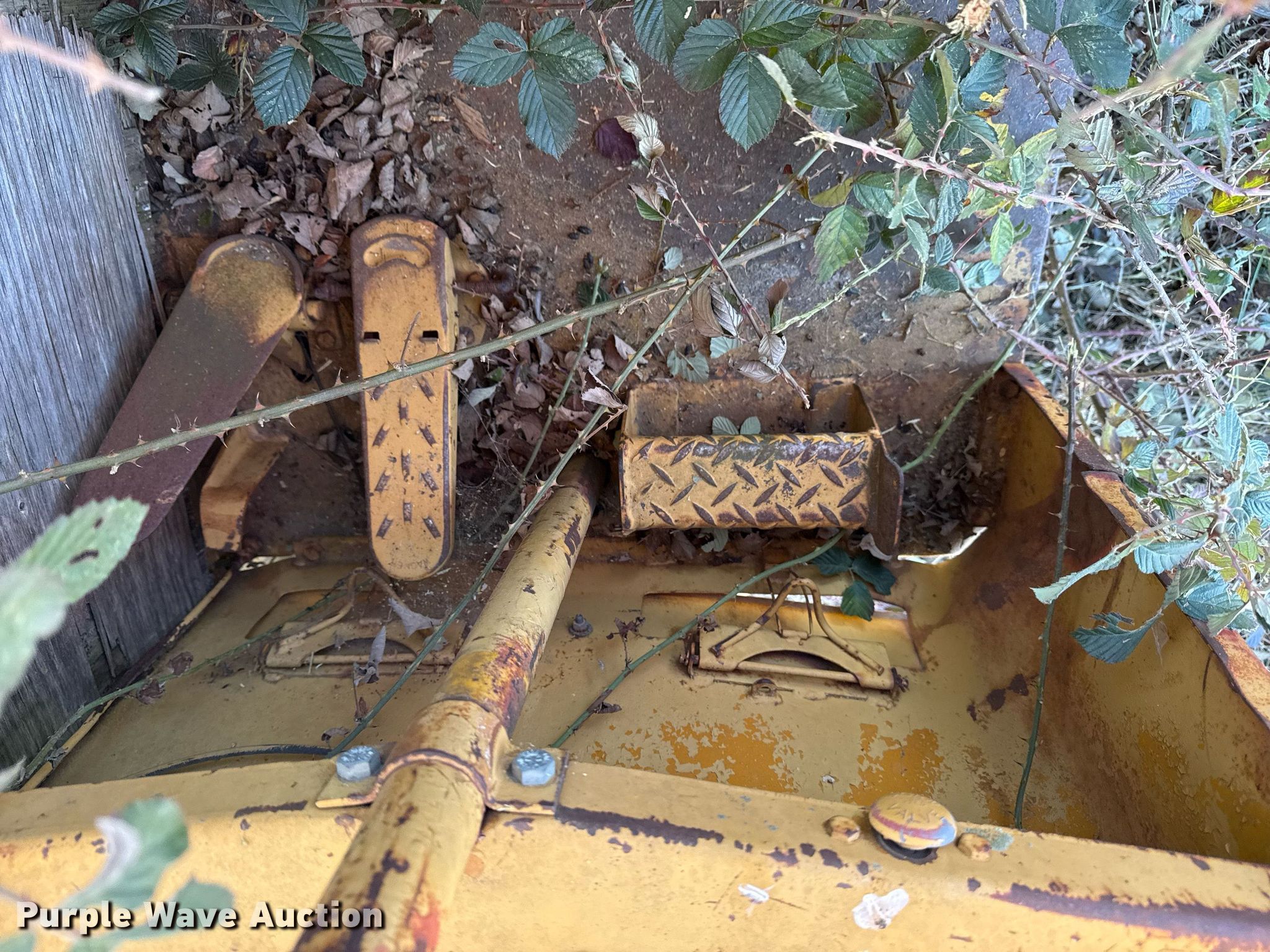 1974 Caterpillar 613 conventional scraper. Hours: 6,581 on meter Actual hours unknown, Serial: 71M3402. Engine Caterpillar, Cylinders: 6, Fuel type: Diesel. Transmission Powershift, 4F - 2R. Chassis Brakes: Air. Features Hydraulic lift, Scraper controls: Lever controls No. of controls: 3, Rear push block. Tires Size: 23.5R25. Notes Possible rodent damage, Parts missing, Tires missing, Non-operational unit. Ira Green Construction - Open Inspection December 18, 2024. Claremore, OK 74017