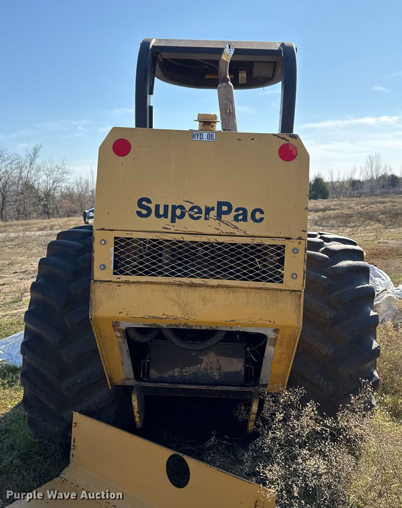 1999 SuperPac 840P single drum vibratory roller. Hours: 7,619 on meter, Serial: 101616. Engine Cummins B5.9-C, Serial: 45823779, Displacement: 5.9L, Cylinders: 6, Fuel type: Diesel, HP: 148. Transmission Hydrostatic. Features Drum: Padfoot, Vibratory system: Single, Front drum Width: 84", Diameter: 53", Drum scrapers: Front. Tires Size: 23.1-26. Notes Parts missing, Flat tires, Non-operational unit. Ira Green Construction - Open Inspection December 18, 2024. Claremore, OK 74017