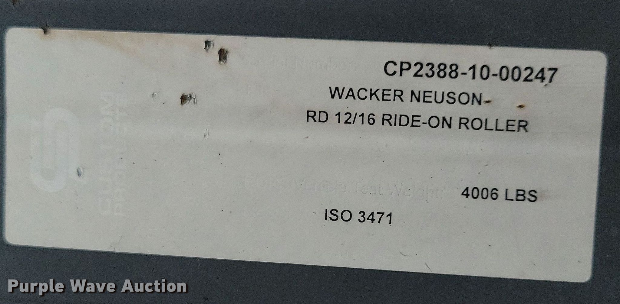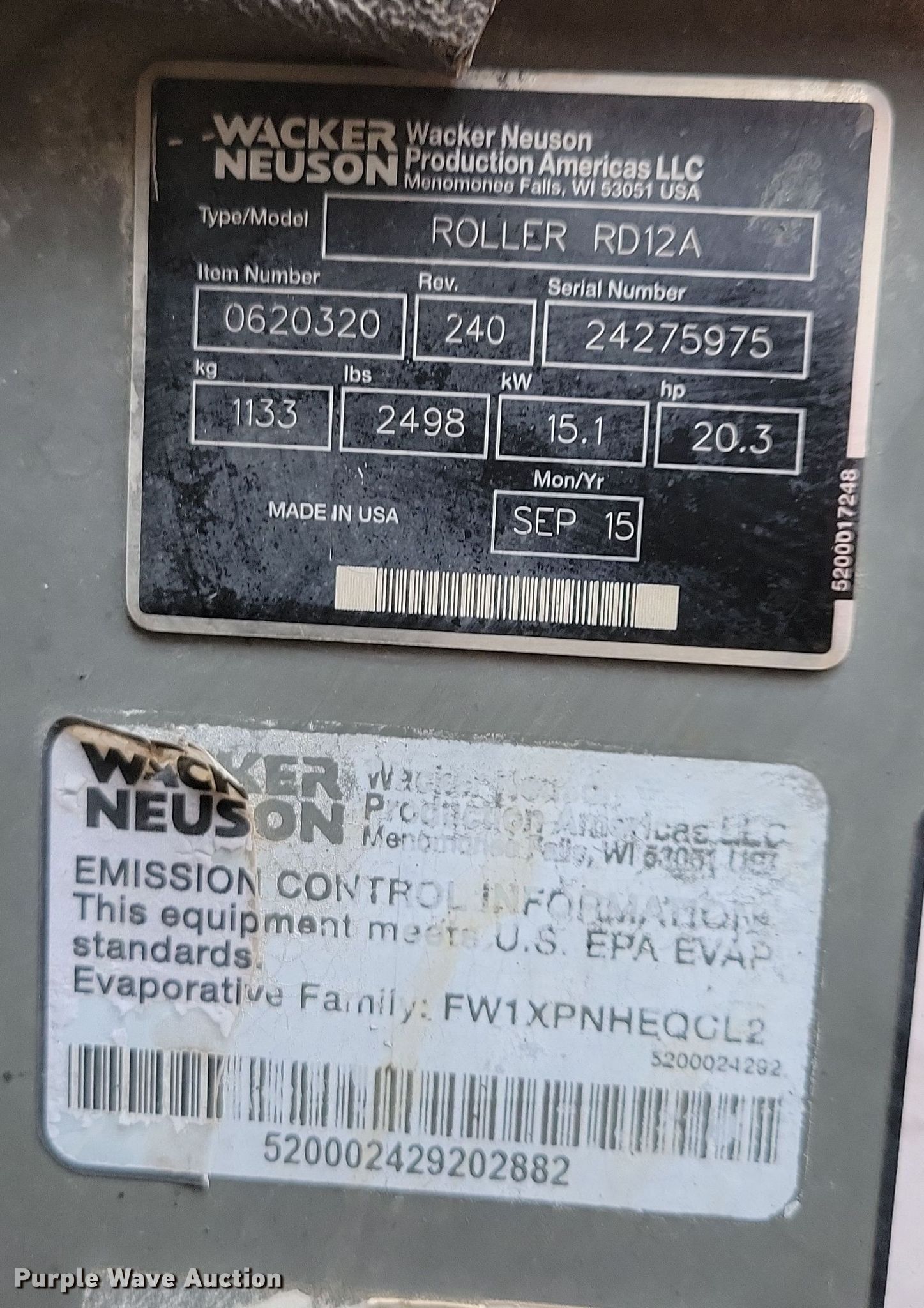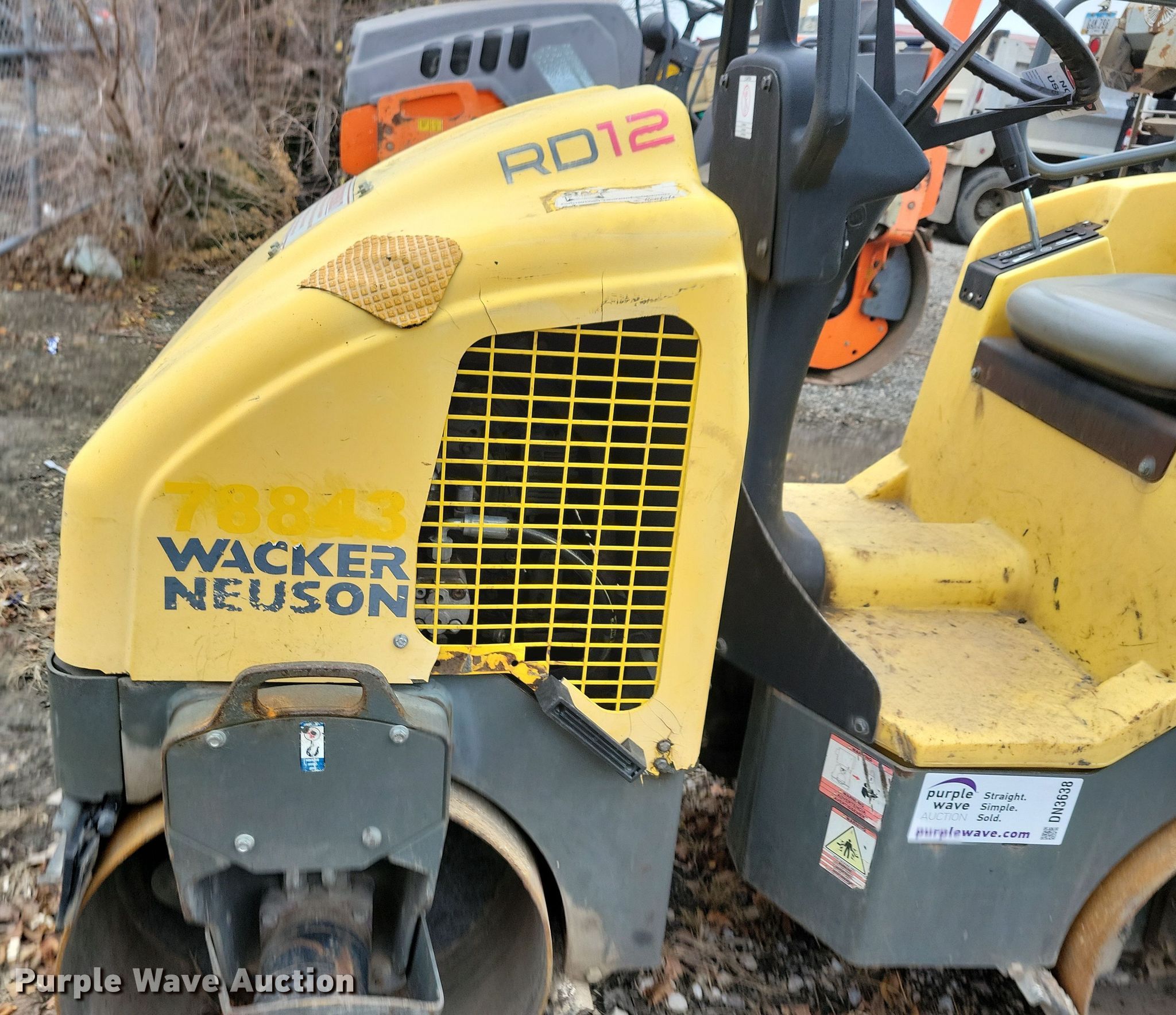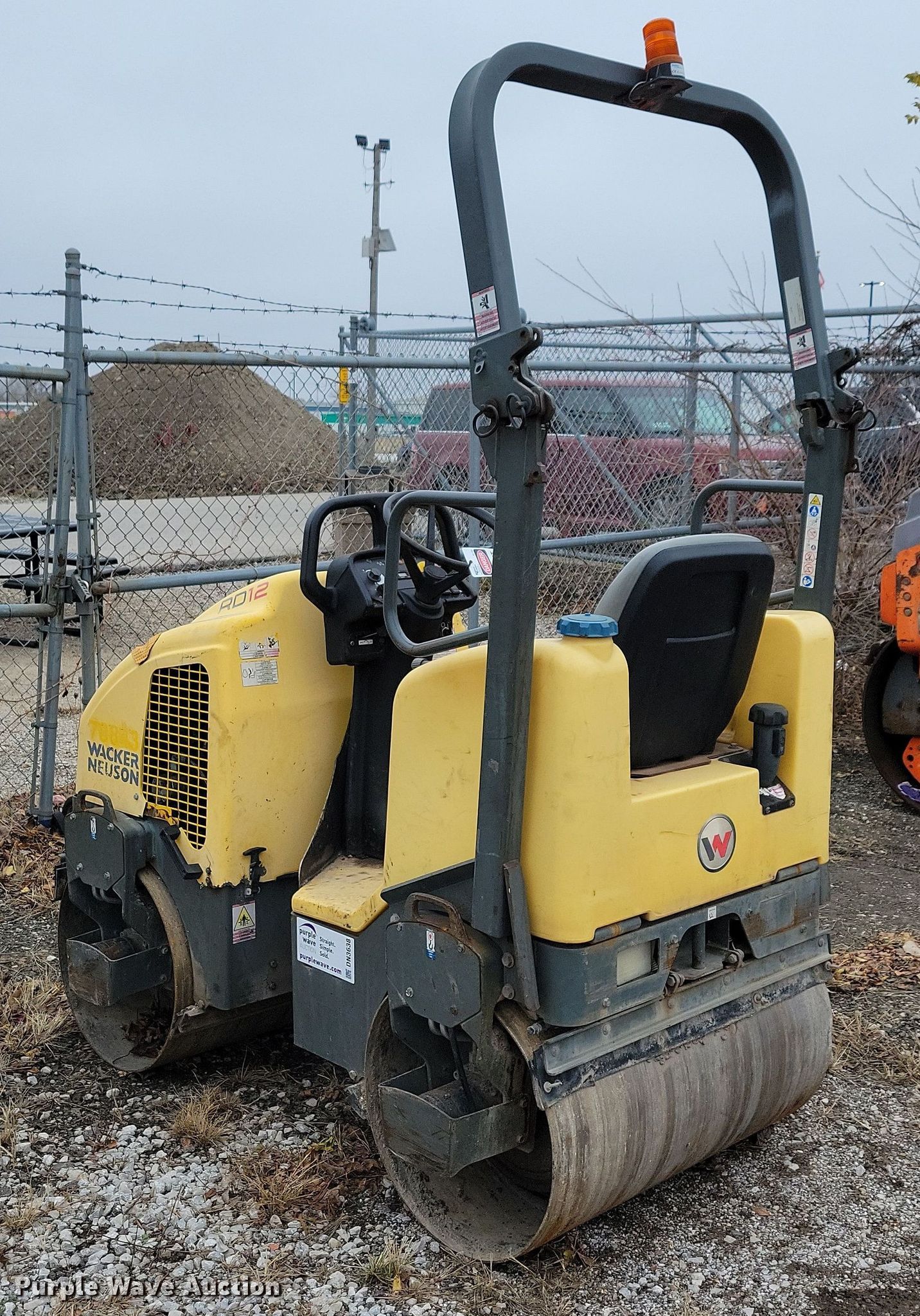 Purple Wave is selling a used Double Drum Roller Compactor in Iowa. This item is a 2015 Wacker Nueson RD12 double drum vibratory roller with the following: Hours: 2,605 on meter, Serial: 24275975, Unit #: 78843