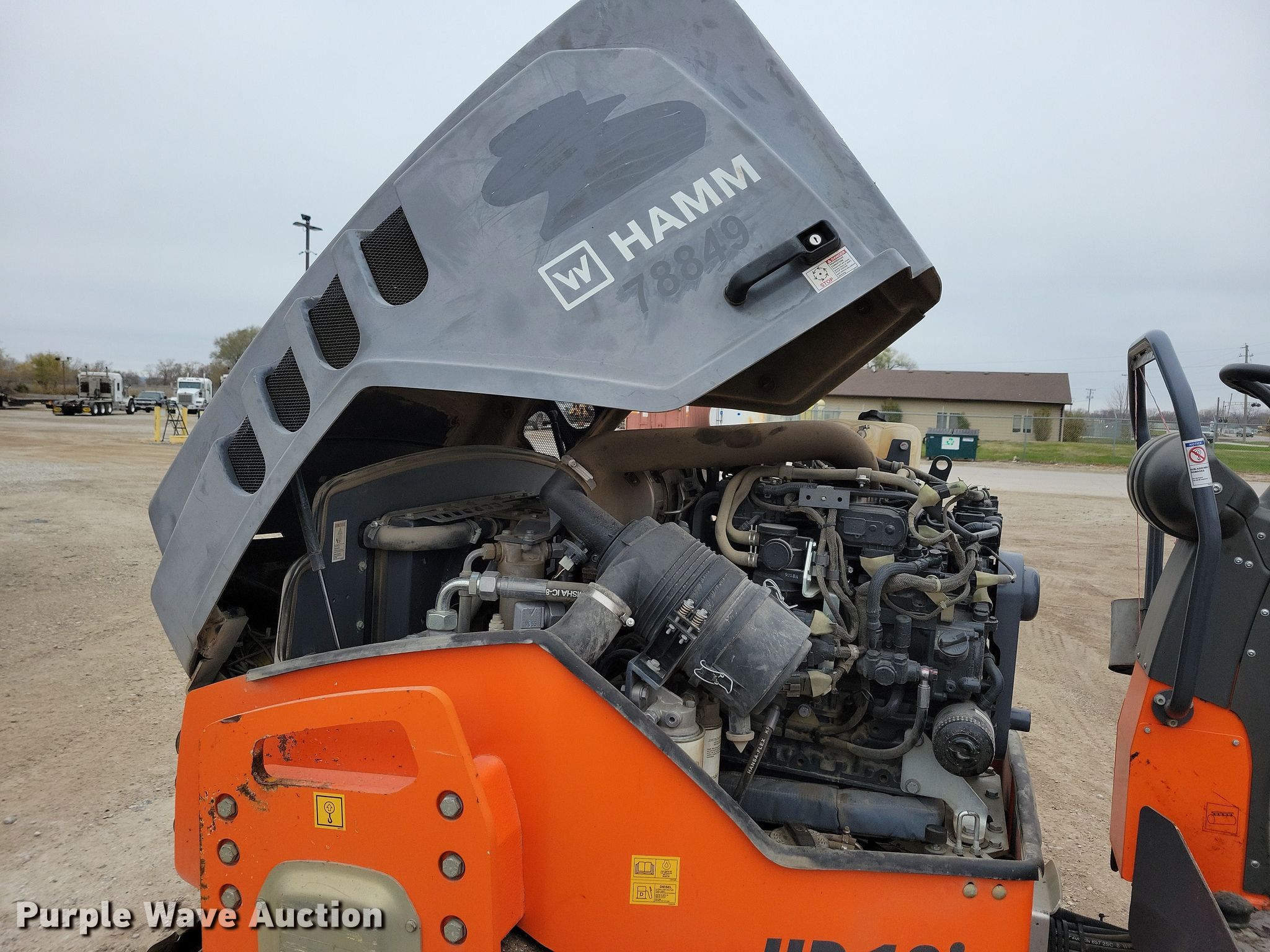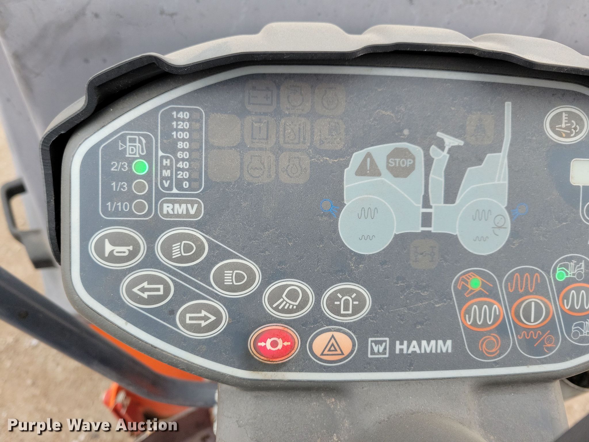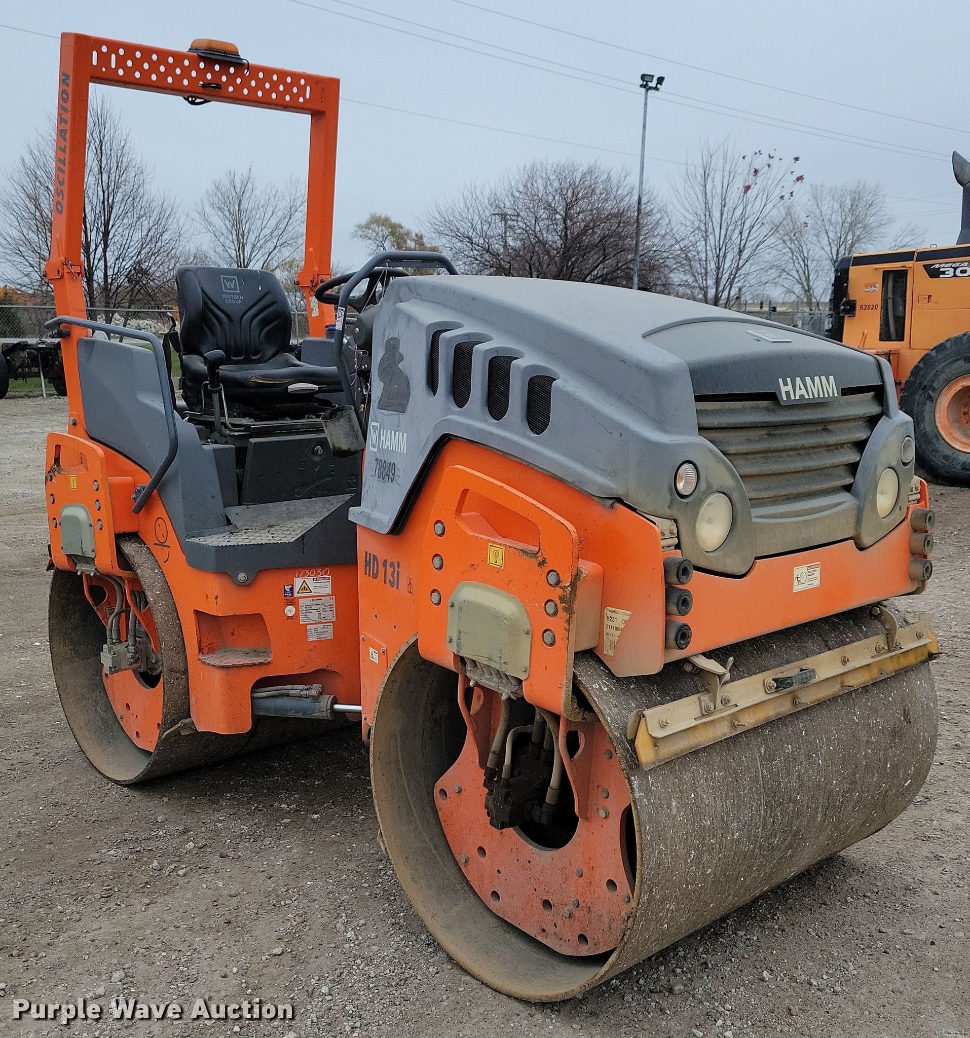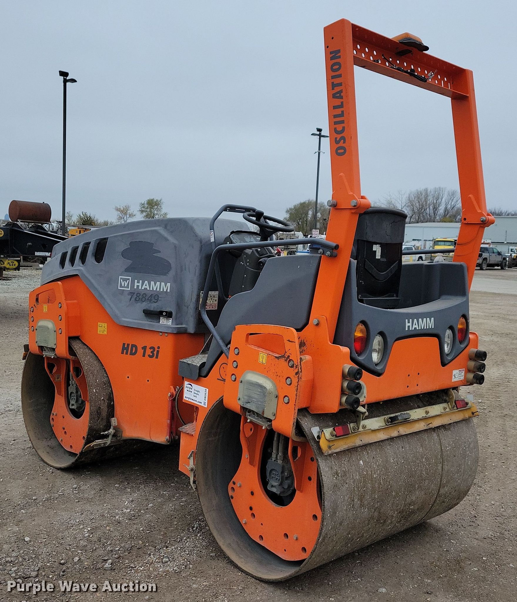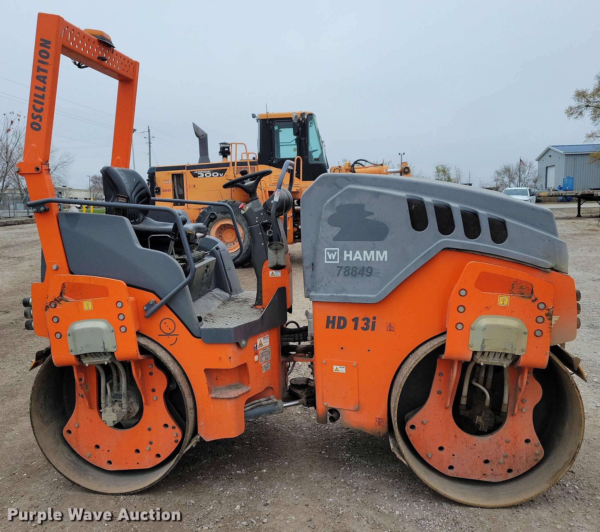 2019 Hamm HD13i double drum vibratory roller. Hours: 1,743 on meter, Serial: WGH0H231CHAA00613, Unit #: 78849. Engine Kubota V2403, Serial: 7JTA899, Displacement: 2.4L, Cylinders: 4, Fuel type: Diesel, kW: 36.8. Transmission Hydrostatic. Operators station OROPS, Vandal cover. Features Drum: Smooth, Vibratory system: Double, Independent drum controls, Two speed, Front drum Width: 51", Diameter: 35", Rear drum Width: 51", Diameter: 35", Drum scrapers: Front, Rear, Water spray applicator: Front, Rear, Dual propel system. Notes Dead battery. Rasmussen Group. Des Moines, IA 50313