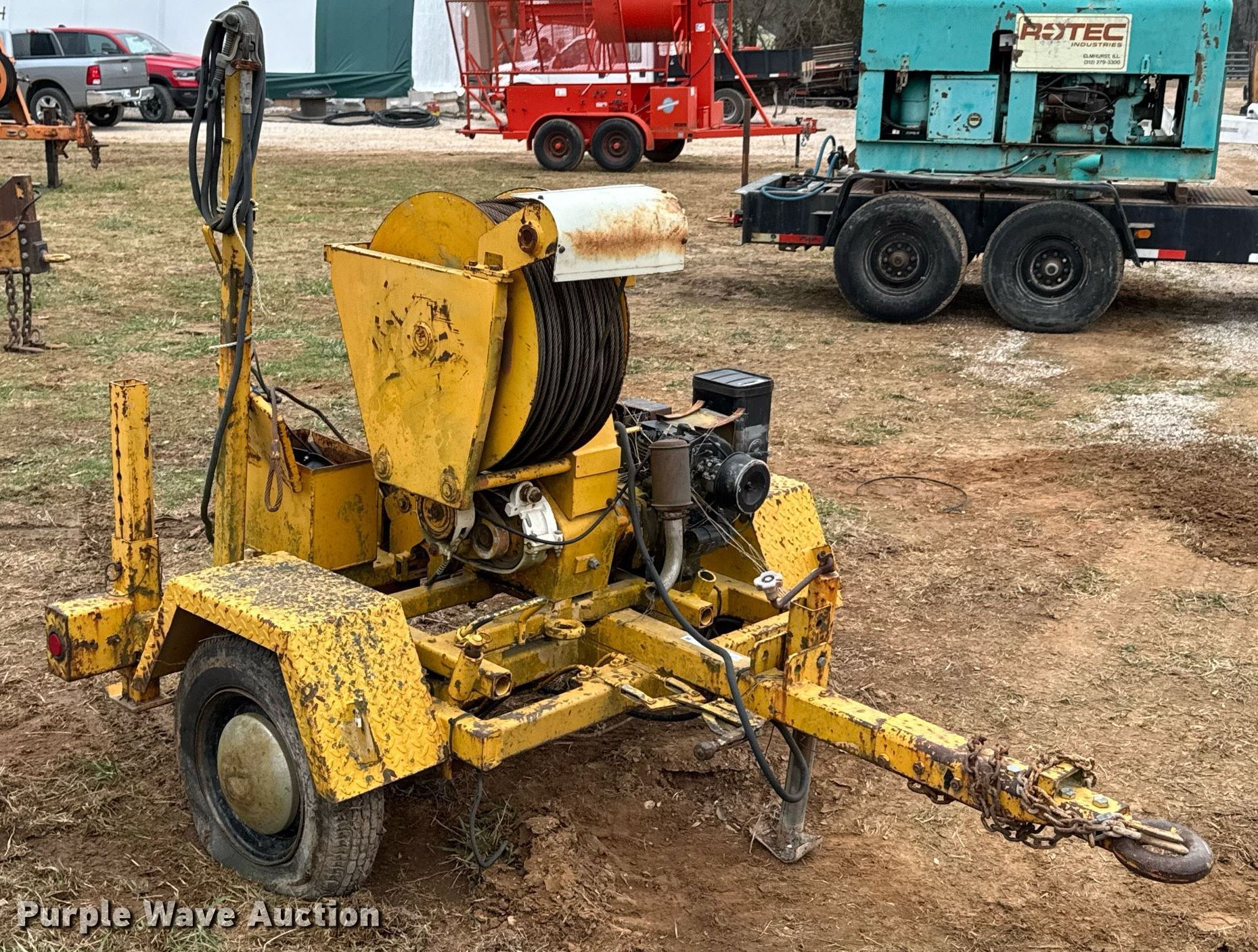 S&R Under Dawg SRP 50-T cable puller. Serial: 158519. Engine Kohler, Cylinders: 1, Fuel type: Gas. Features Max capacity: 5,000 lbs, Cable diameter: 3/8". Chassis Hitch: Pintle, Landing gear: Single, Suspension: Spring, Brakes: Electric. Tires Steel wheels, Size: P155/80R13. Notes Flat tires, Unknown operating condition. This is worksite support equipment and will not come with a title. Transfer of ownership documentation will be a bill of sale. Rogers, AR 72756