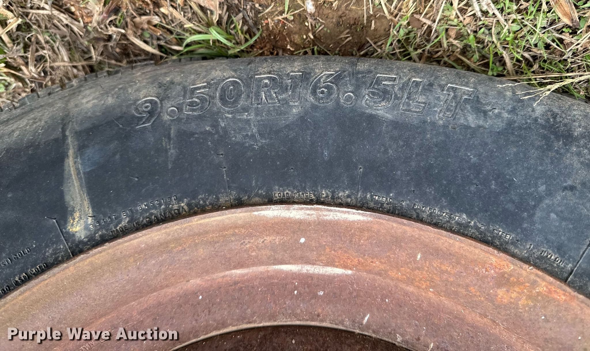 Reel trailer. Dimensions. Overall: 10' L x 96" W. Features Reel: Single. Chassis Hitch: Pintle, Landing gear: Single, Suspension: Spring, Brakes: Electric. Tires Size: 9.50R16.5. This is worksite support equipment and will not come with a title. Transfer of ownership documentation will be a bill of sale. Rogers, AR 72756