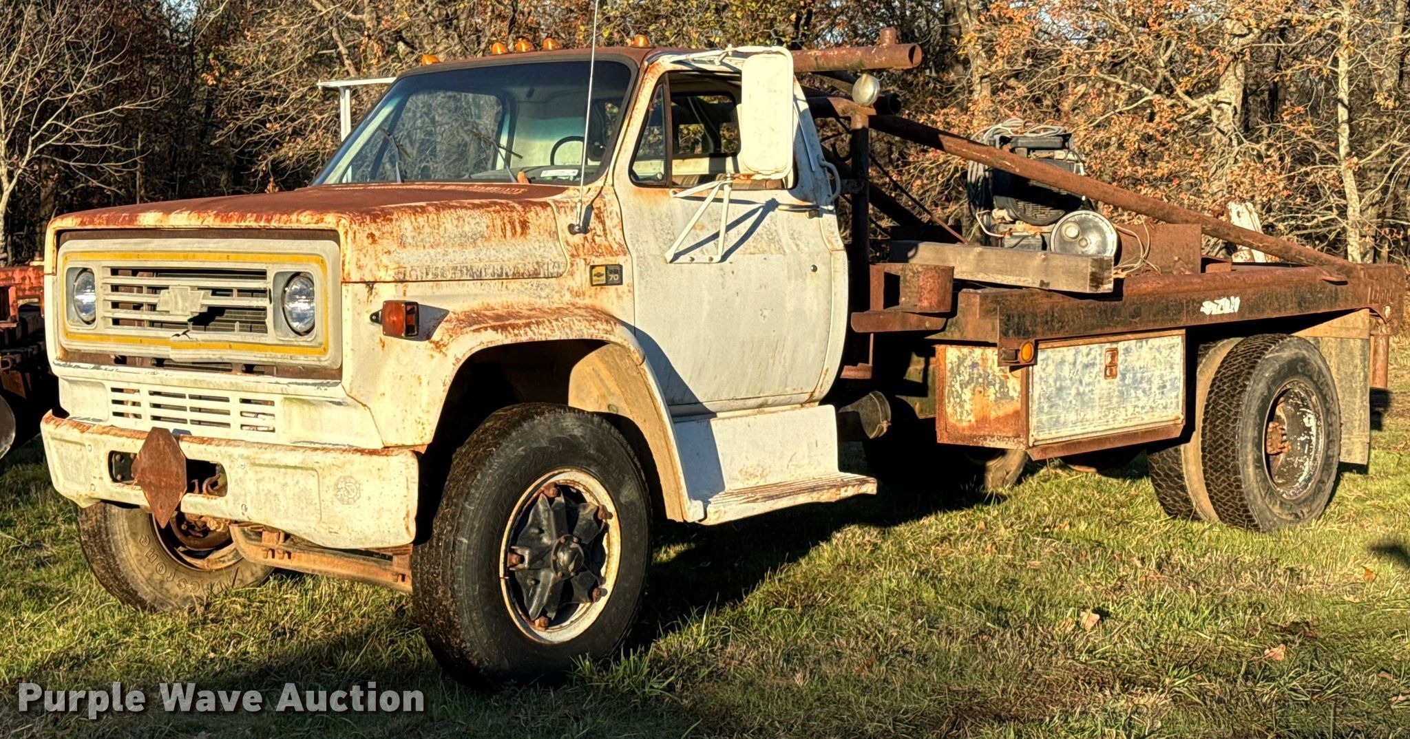 Purple Wave is selling a used Oilfield Truck in Oklahoma. This item is a 1981 Chevrolet C70 winch truck with the following: Miles: 76,307 on odometer, Actual mileage unknown, VIN: 1GBL7D1B7BV138225