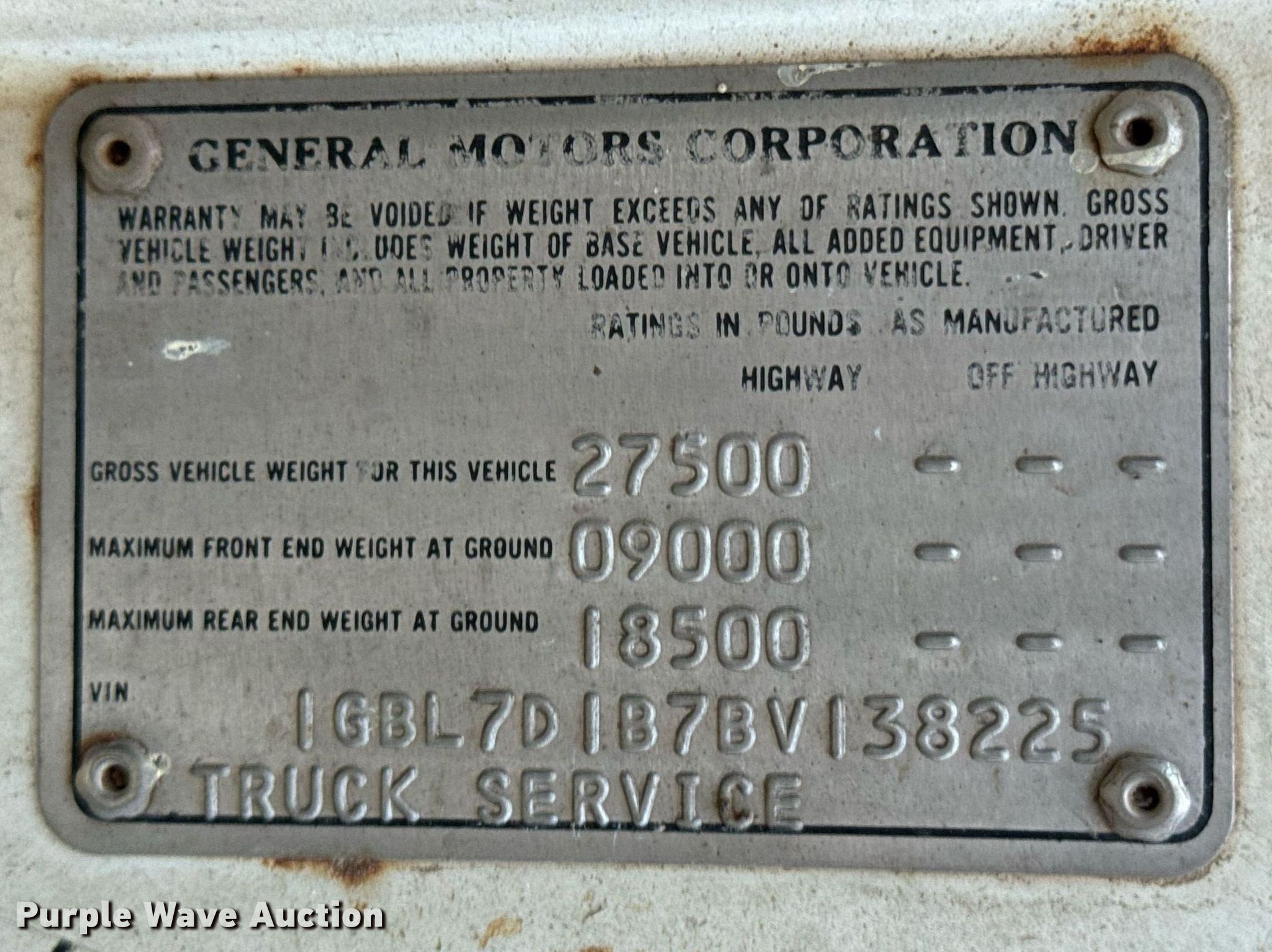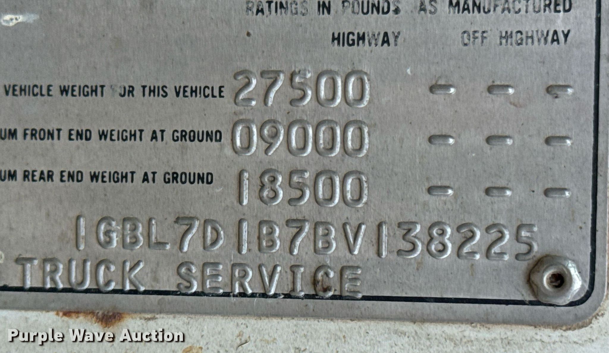 - VIN: 1GBL7D1B7BV138225